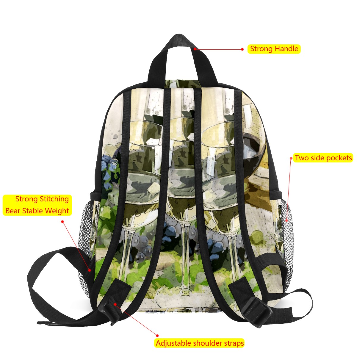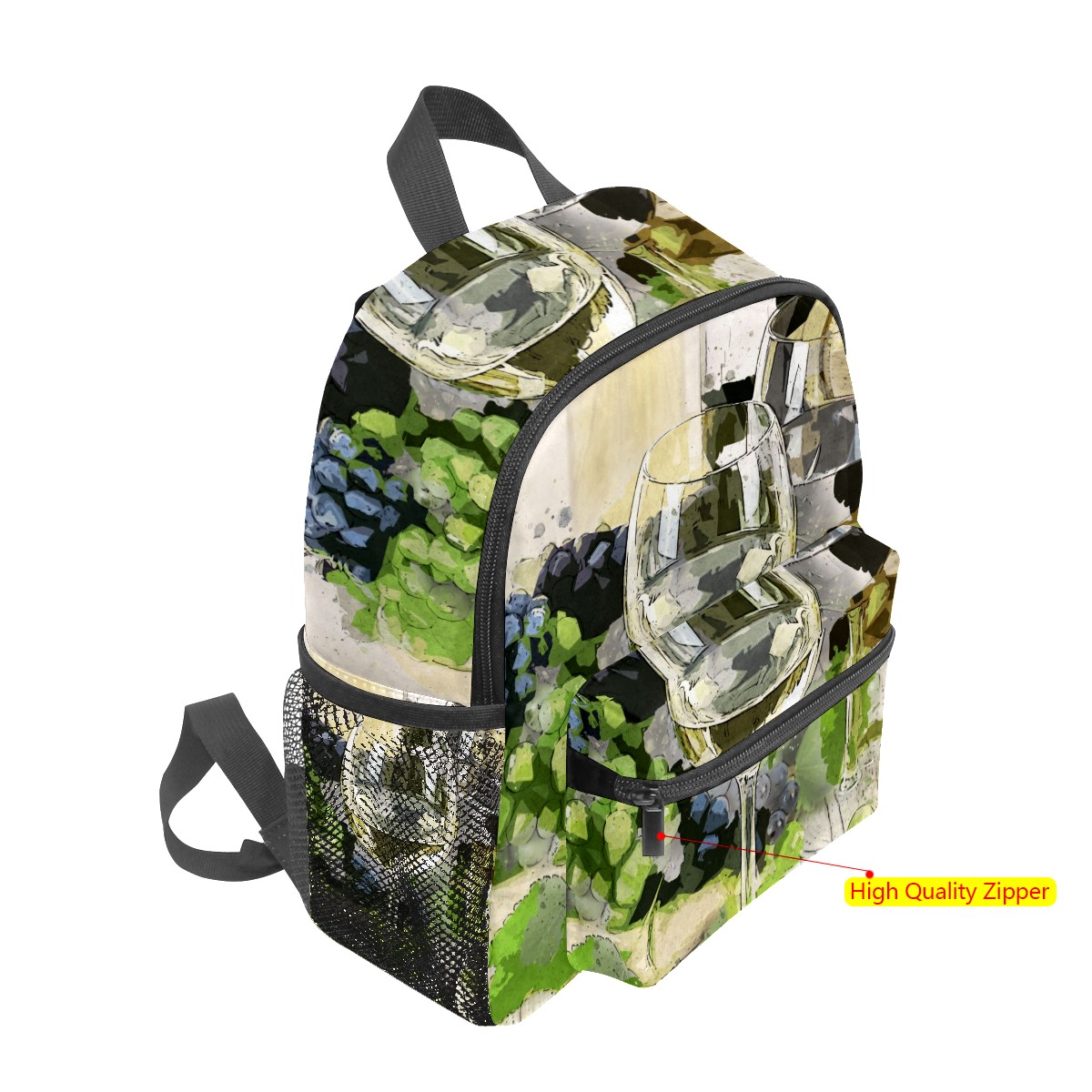 Mini Backpack Grapes And Goblet Cute Lightweight School Bags Small Daypack Purse Travel Backpacks Woman Shoulder Bag for Kids Girls Boys(3-8 Years Old)