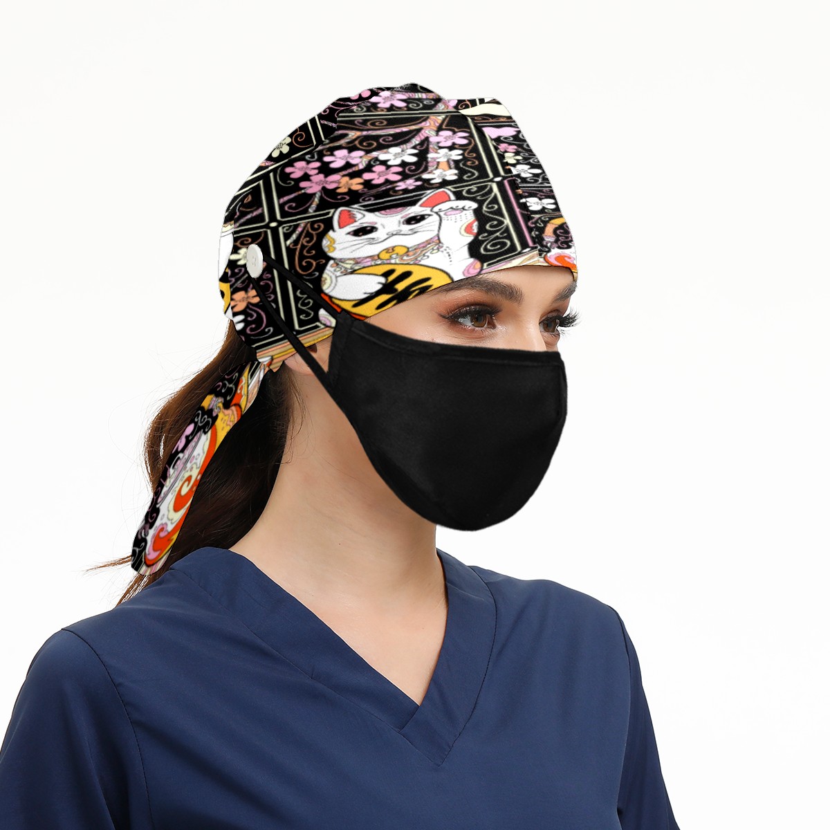 <p>Working cap with Sweatband and Button for Women Men</p><p>Material&nbsp;: 50% cotton+50% polyester</p><p>Size:&nbsp;One size fits most,&nbsp;suitable for both men and women.</p><p>Working Cap with Buttons Design:special&nbsp;design with buttons to protect ears for those who are wearing ma-sk. These new styles hats will allow you to put the straps around the buttons instead of your ears, make you feel more comfortable.</p><p>Sweat-absorbent towel cloth inside: Built-in&nbsp;100% cotton sweatband, keep the forehead clean after long time working.</p><p>Widely occasion: Widely used in beauty spa, house cleaning, cooking, sleeping, or for cos-play&nbsp;party.</p><p>Lovely pattern: lovely&nbsp;3D printed&nbsp;pattern,&nbsp;it's perfect for gift to you family&nbsp;and friends.</p>