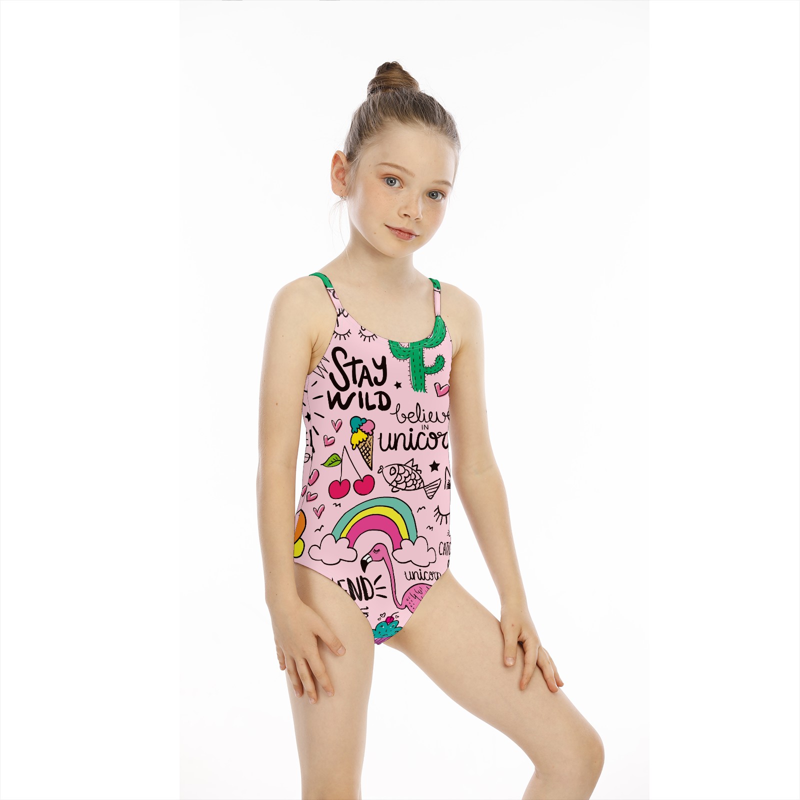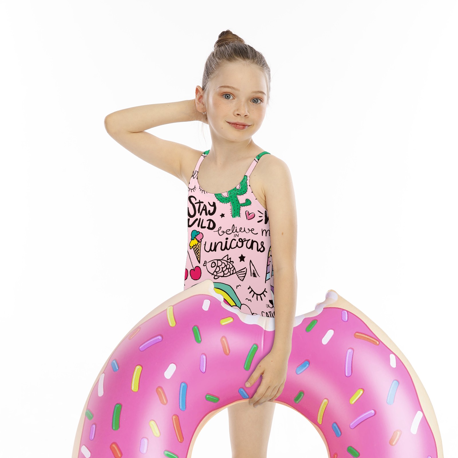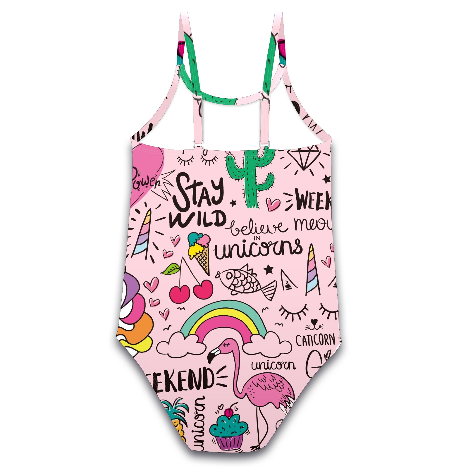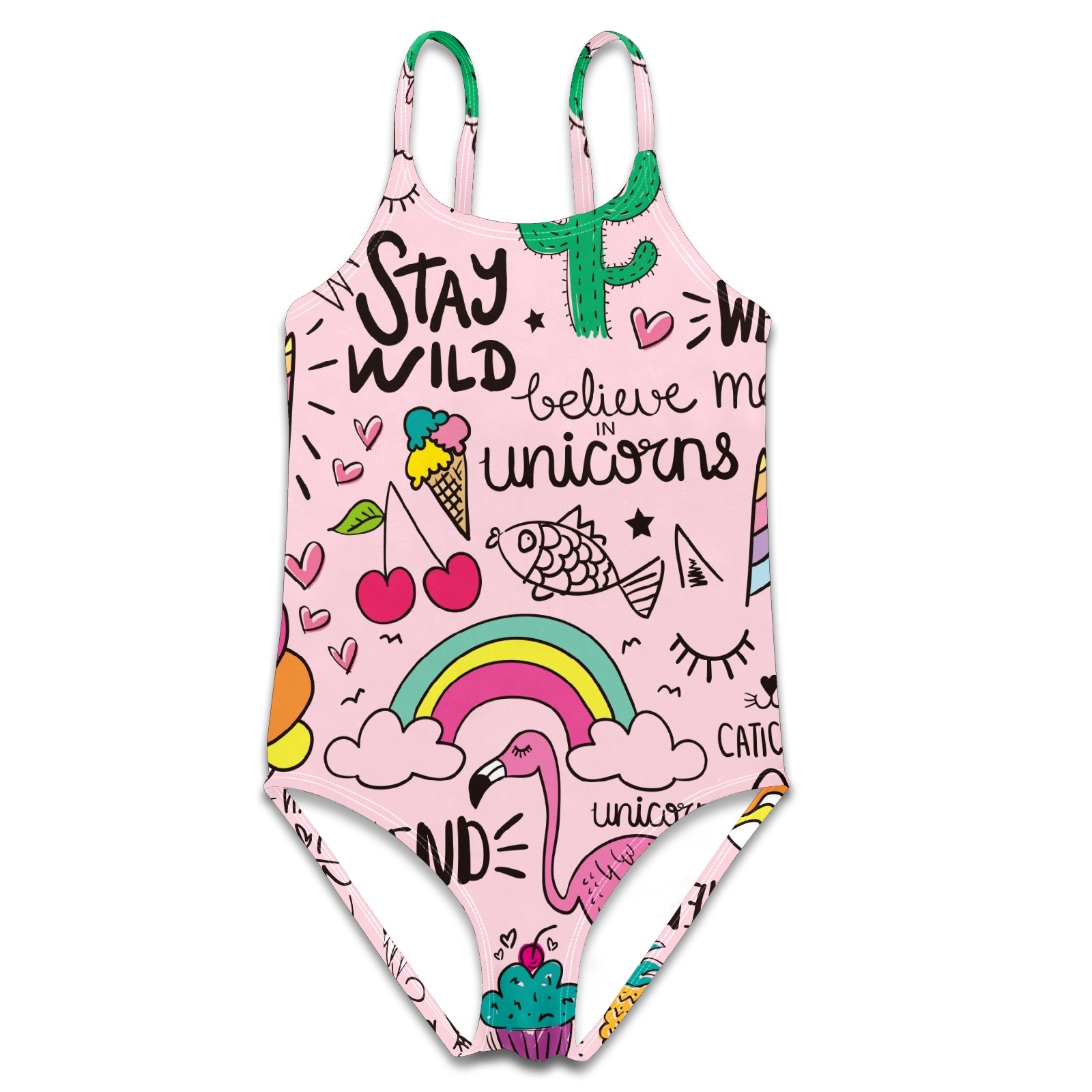 Girls Swimsuits One-Piece Unicorn Flamingos Pink Beach Swimwear Summer Bathing Suit