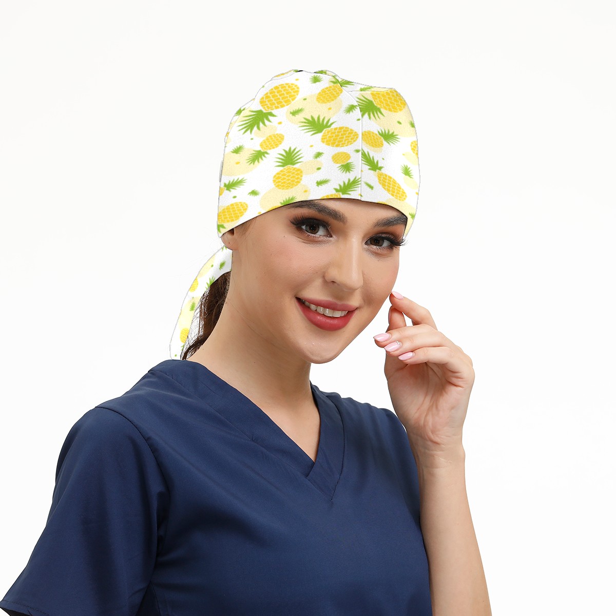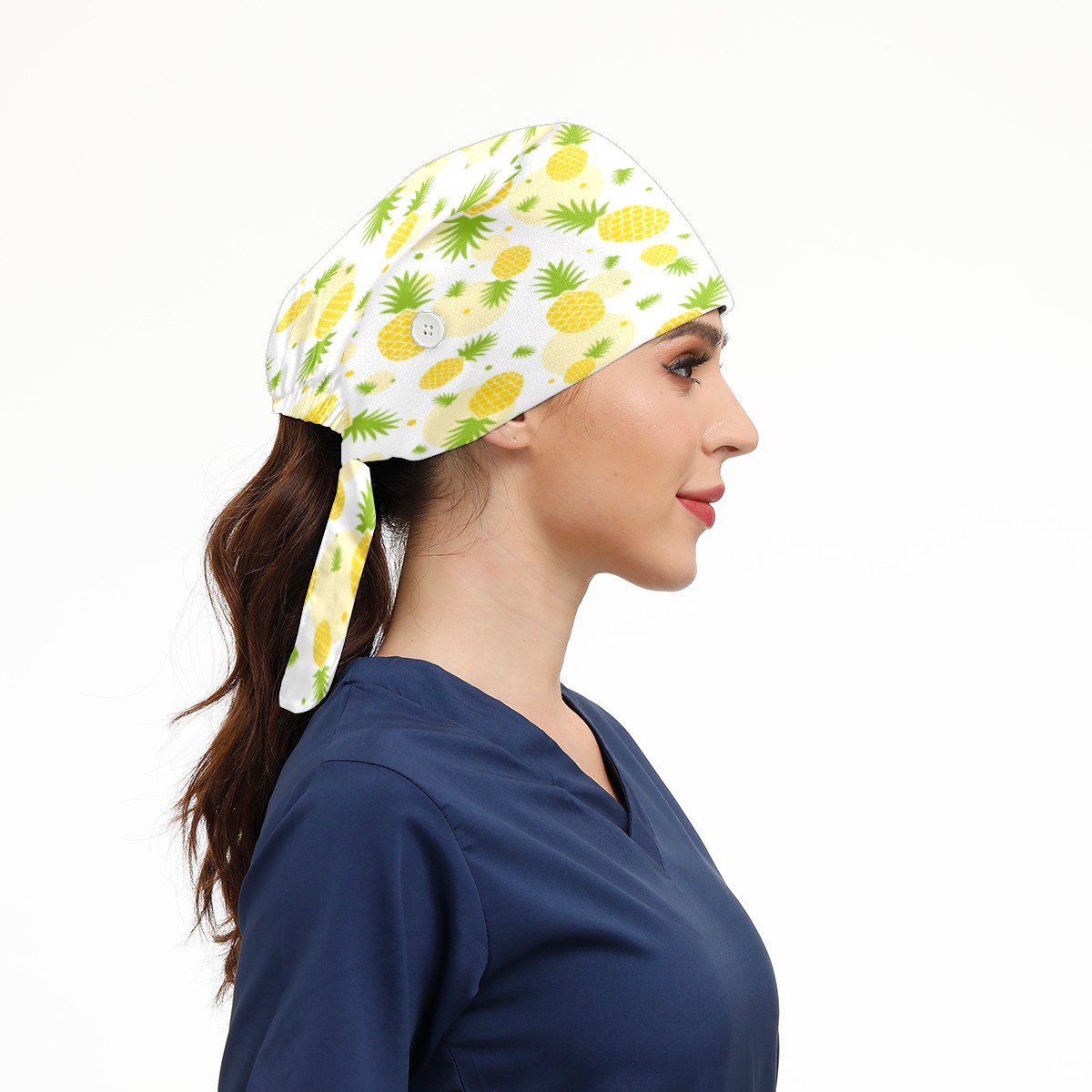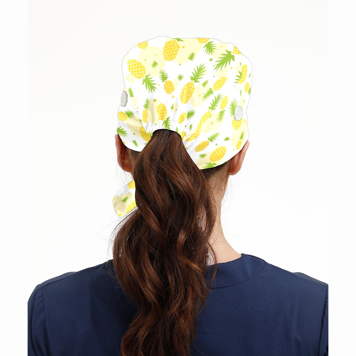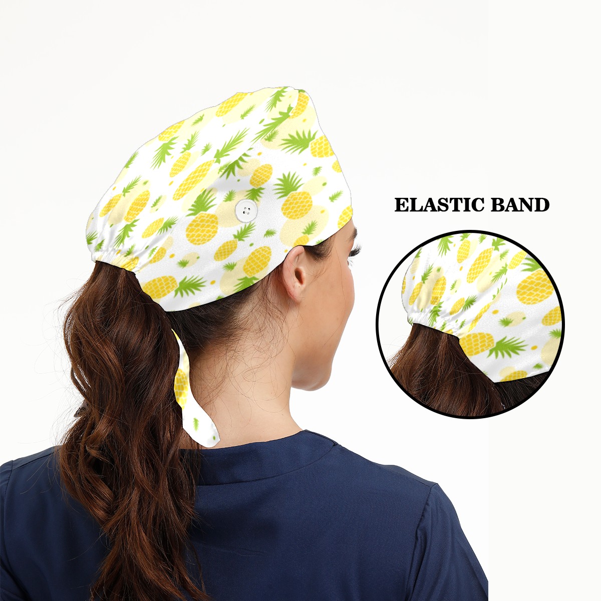 Yellow Pineapple Fruit Working Cap Button and Sweatband Adjustable Elastic Head Cover Hair Tie Back Work Hats for Women Men