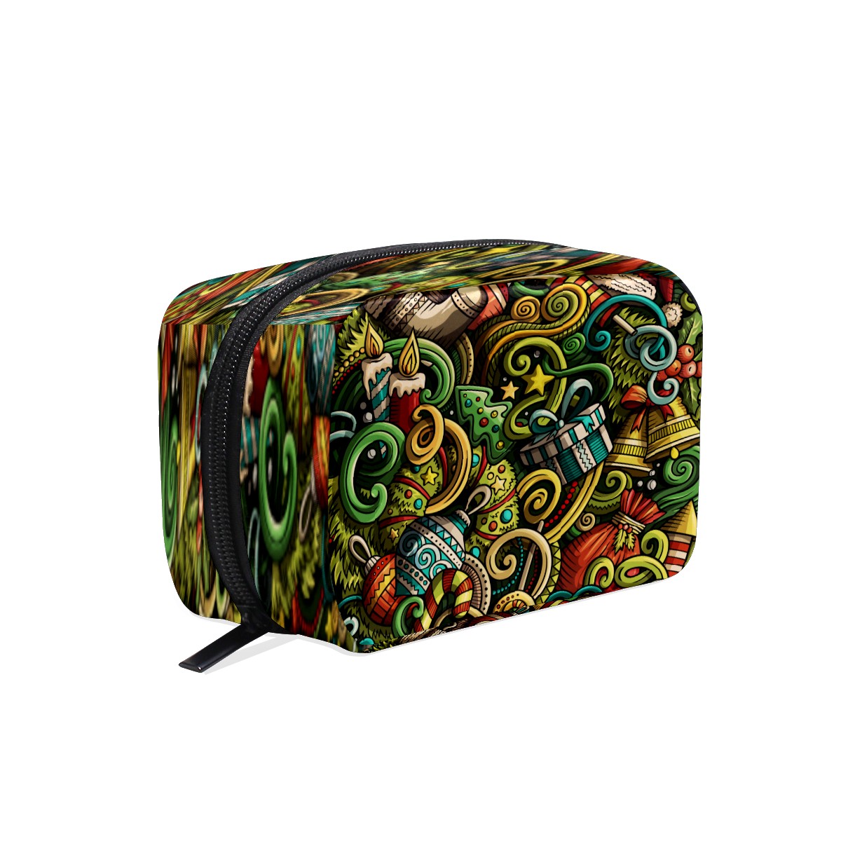 Cosmetic Bag for Women Girls Trave Makeup Bag Toiletry Case Pouch Accessories Organizer Christmas Candy Sock Happy New Year Pattern