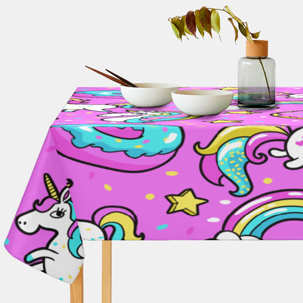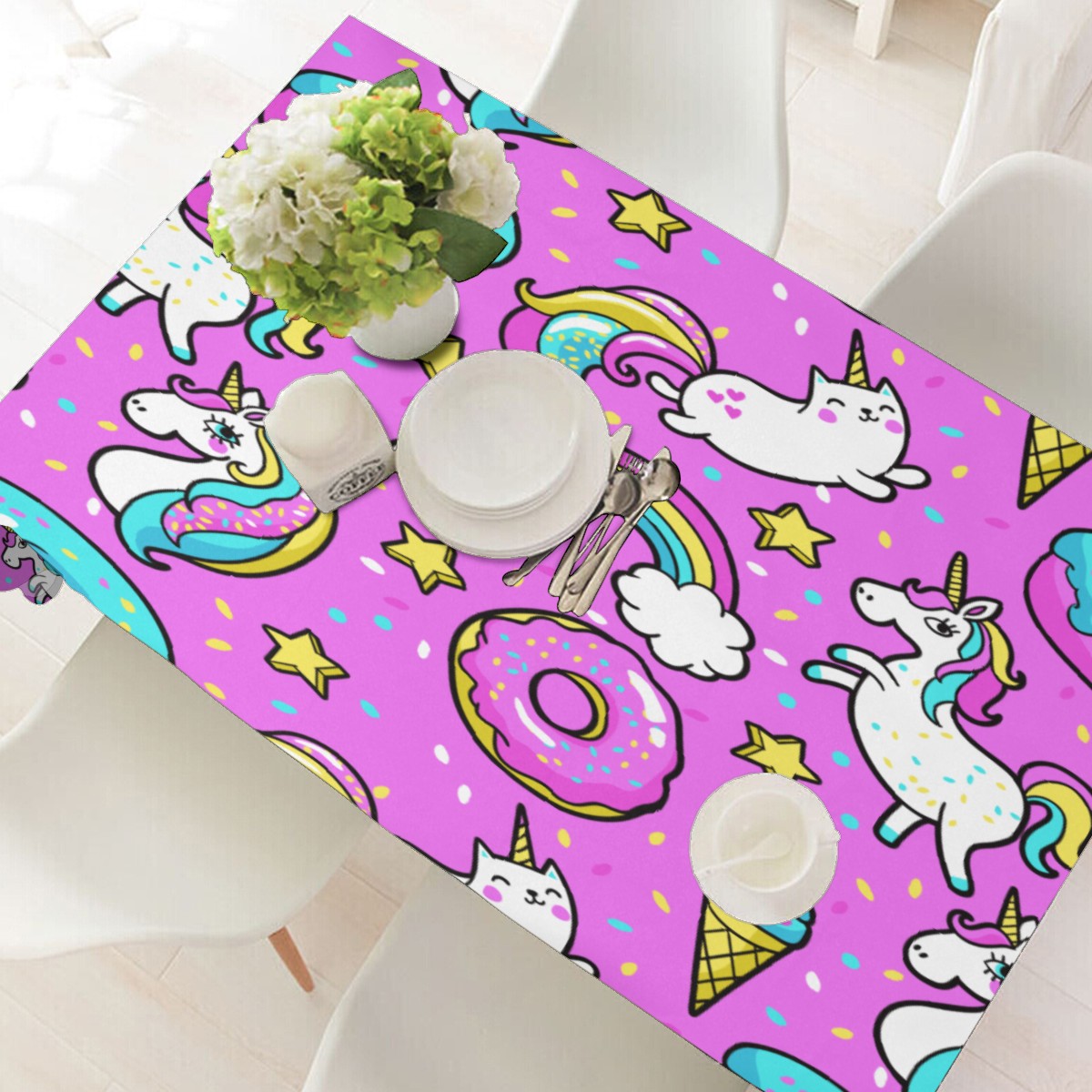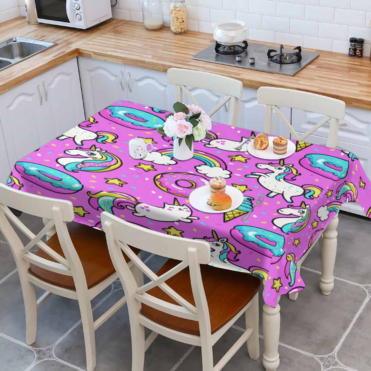 Rectangle Tablecloth Donuts Unicorn Rainbow Cat Pink Table Cloth 54x54in Table Cover for Kitchen Dining Table Party Home Decoration Washable Table Runner
