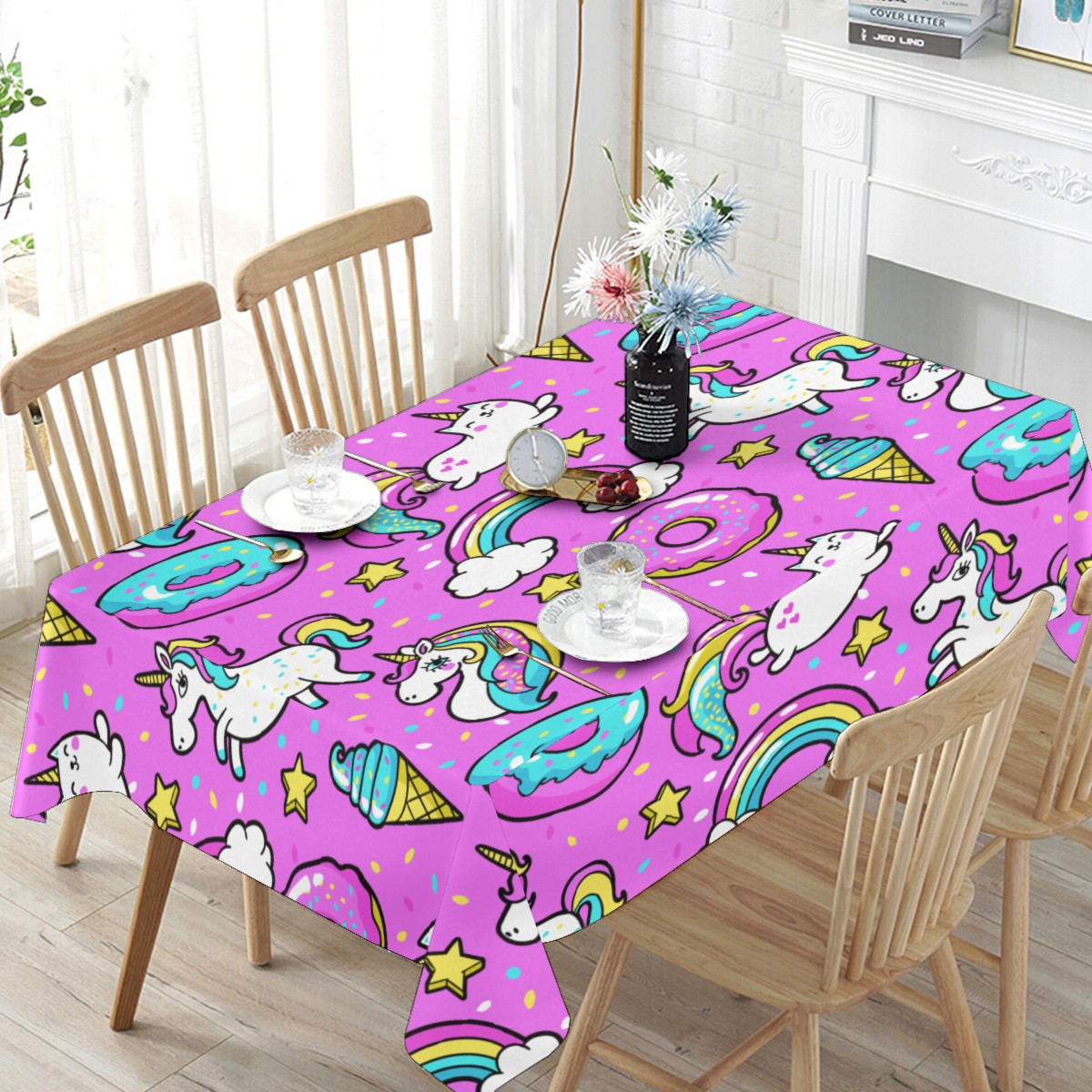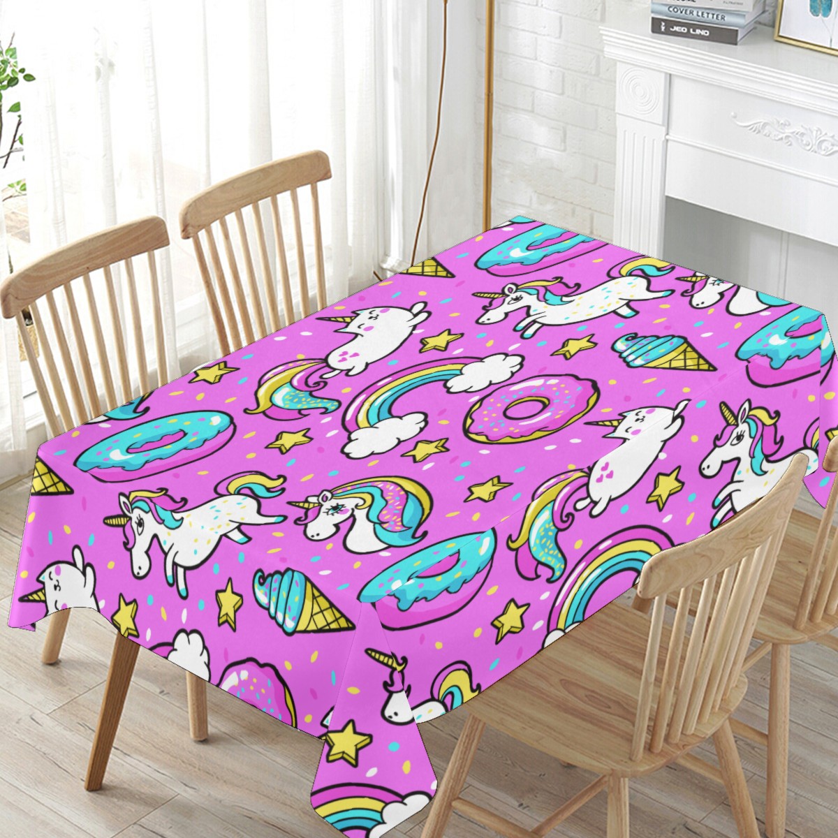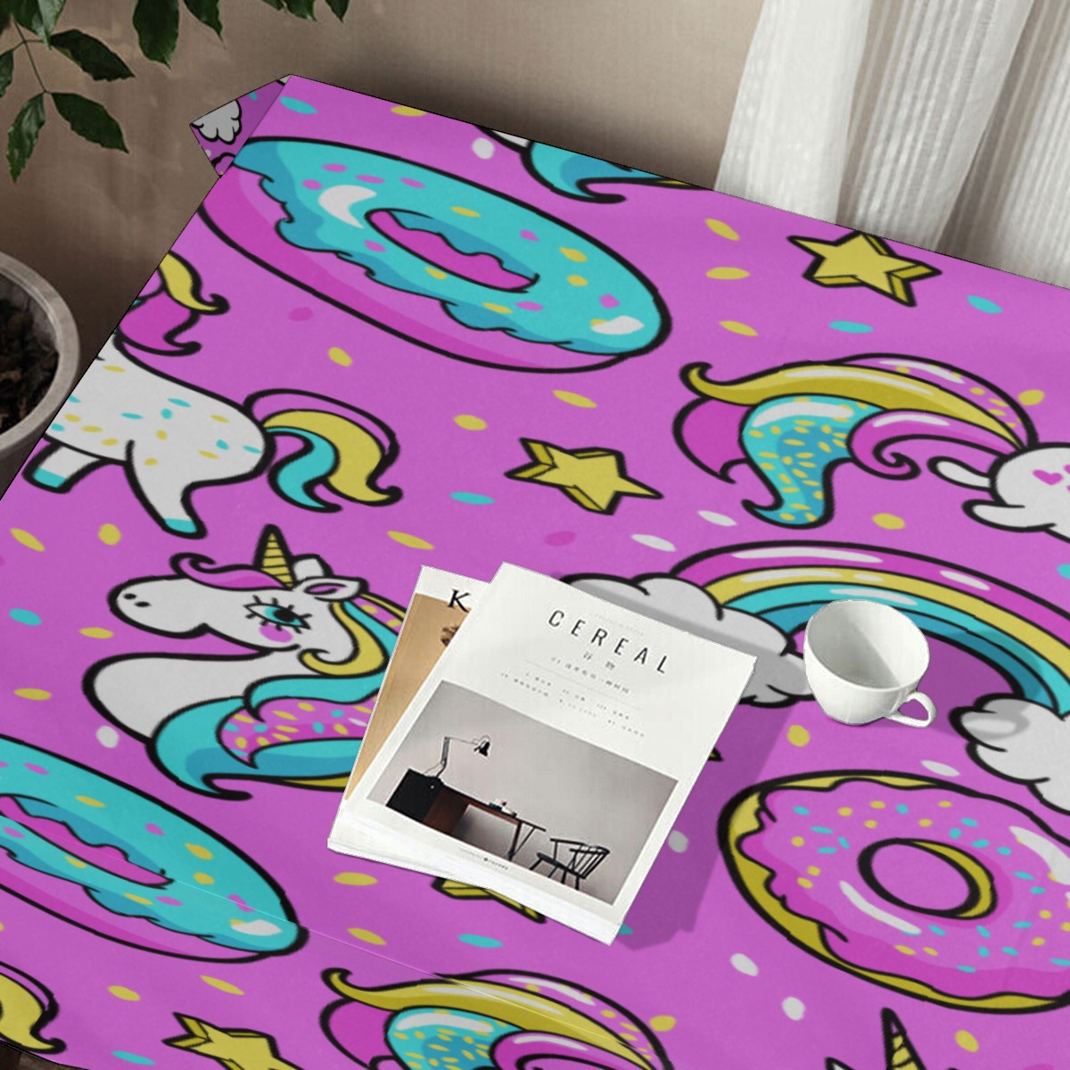 Rectangle Tablecloth Donuts Unicorn Rainbow Cat Pink Table Cloth 54x54in Table Cover for Kitchen Dining Table Party Home Decoration Washable Table Runner