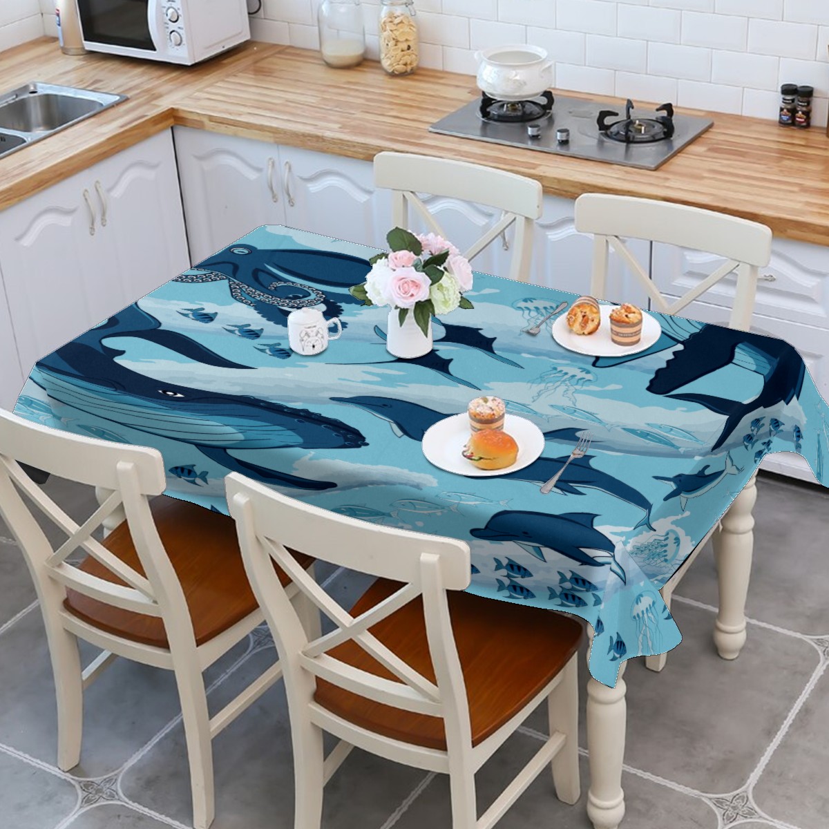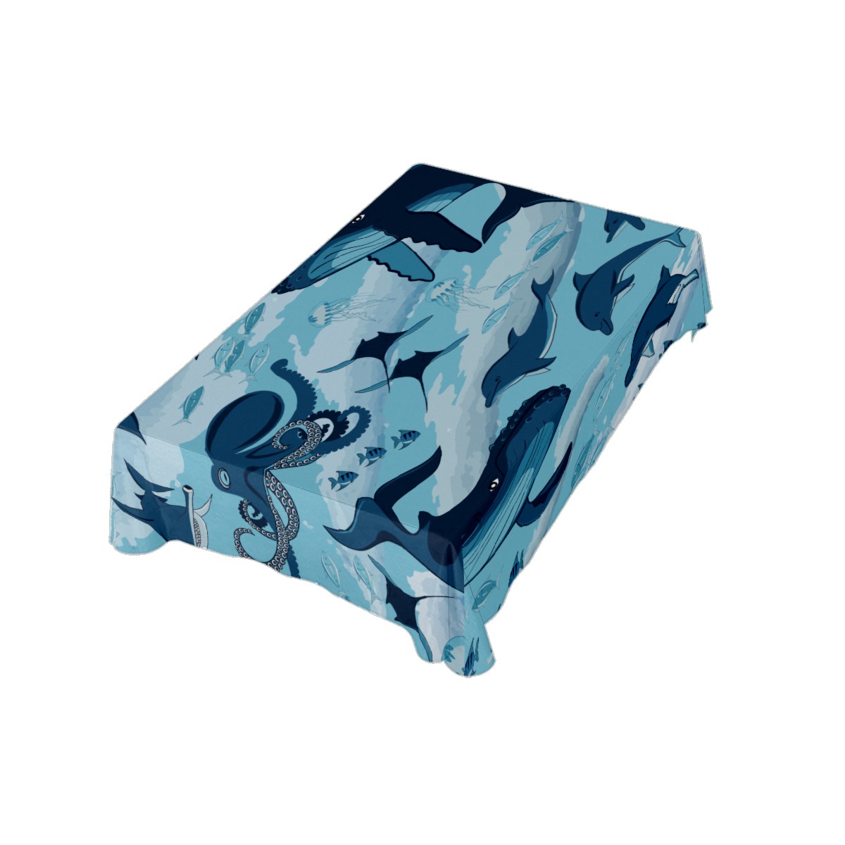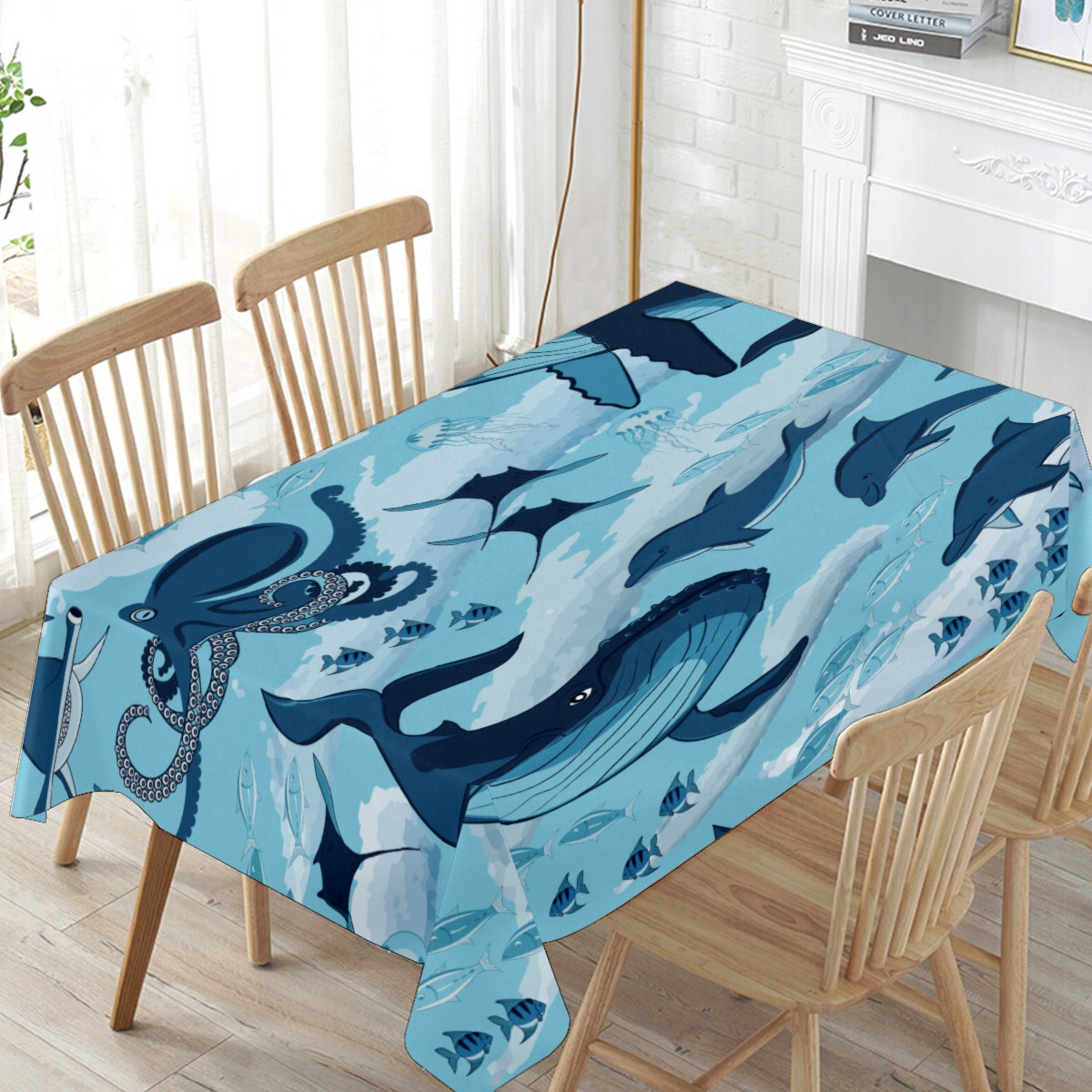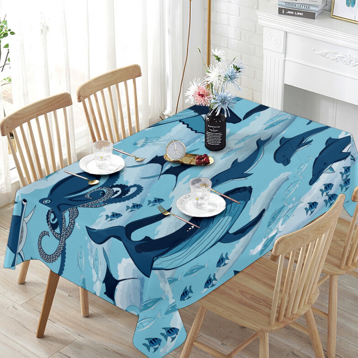 Rectangle Tablecloth Ocean Underwater Whale Octopus Aquatic Table Cloth 54x54in Table Cover for Kitchen Dining Table Party Home Decoration Washable Table Runner