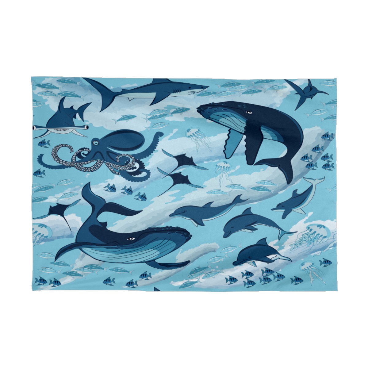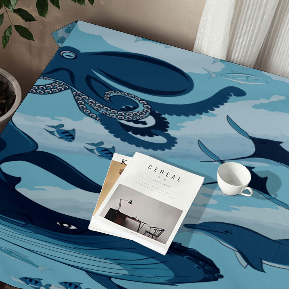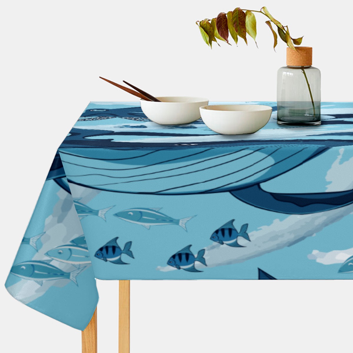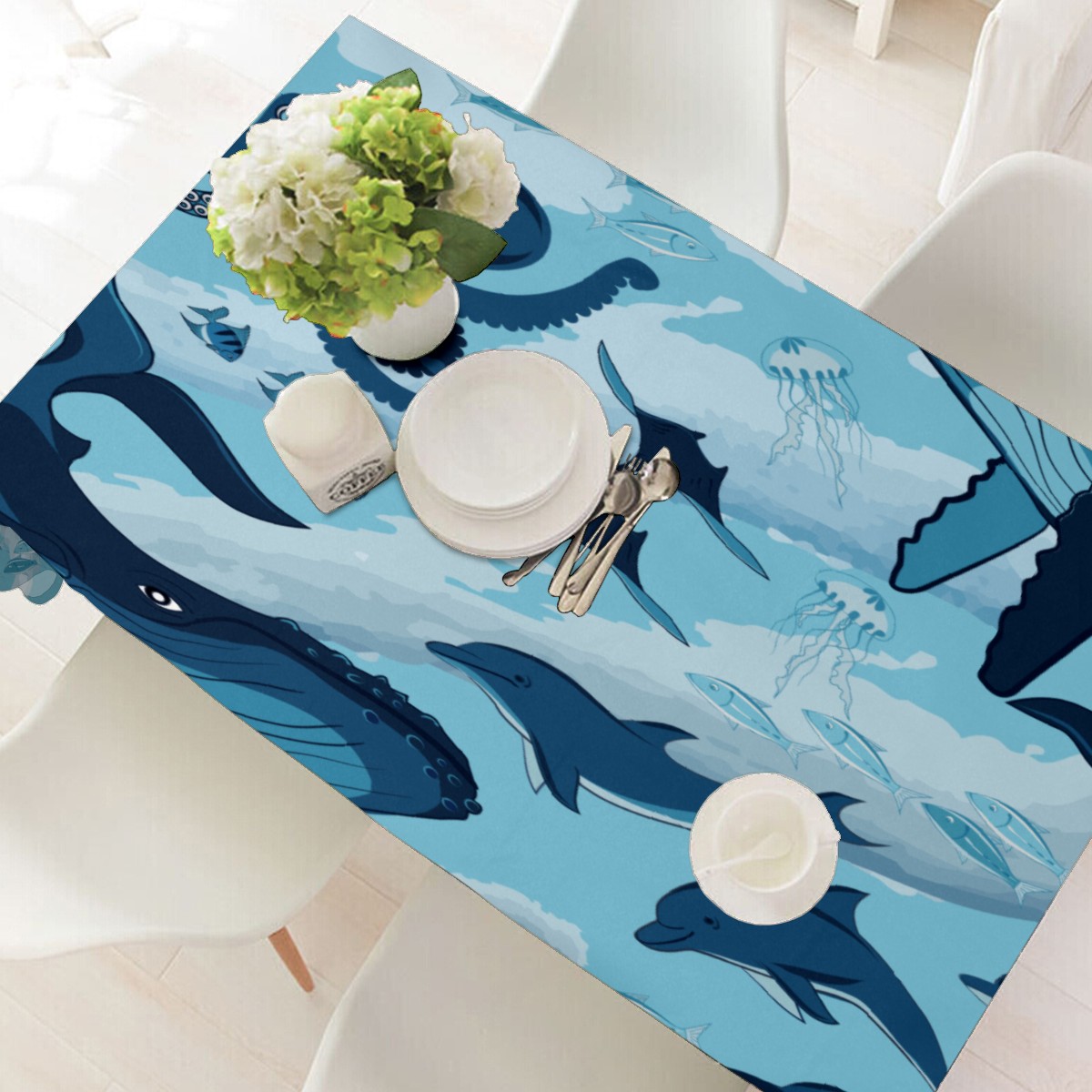 Rectangle Tablecloth Ocean Underwater Whale Octopus Aquatic Table Cloth 54x54in Table Cover for Kitchen Dining Table Party Home Decoration Washable Table Runner