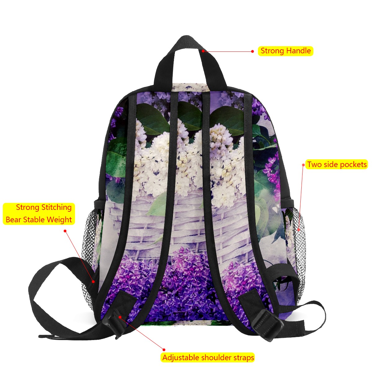 Mini Backpack Lavender Flower Basket Cute Lightweight School Bags Small Daypack Purse Travel Backpacks Woman Shoulder Bag for Kids Girls Boys(3-8 Years Old)