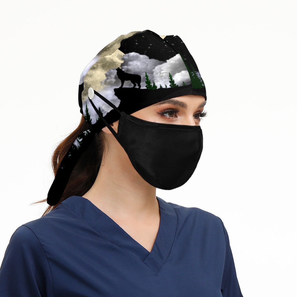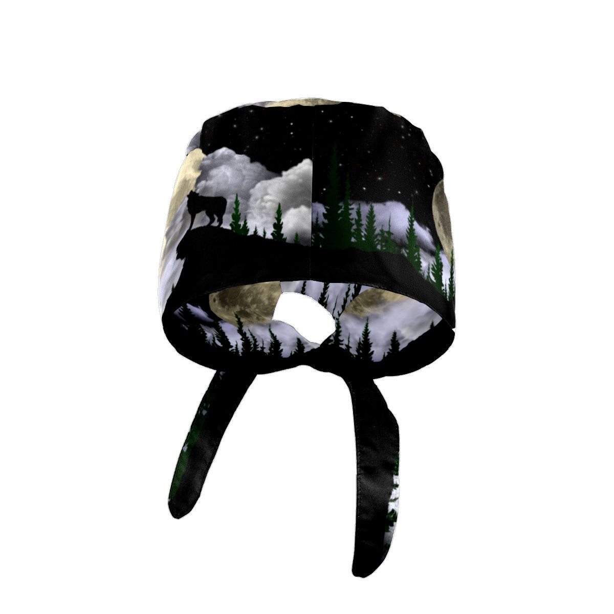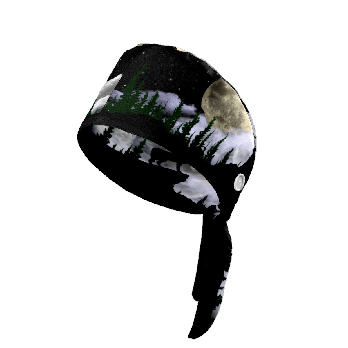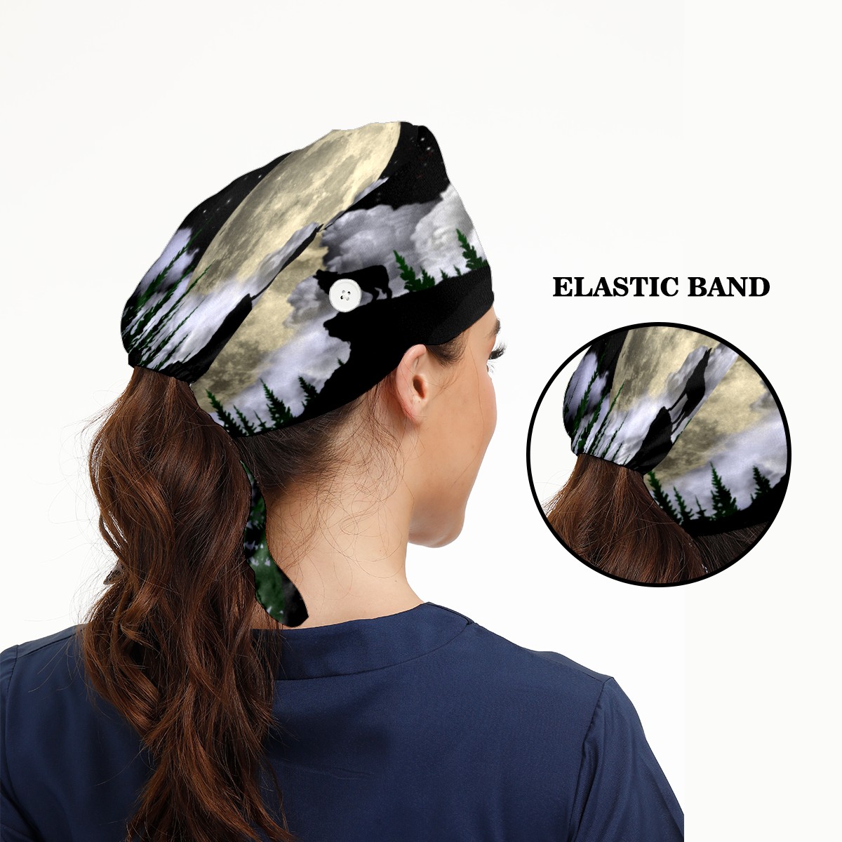 Wolf Howling Full Moon Forest Night Working Cap Button and Sweatband Adjustable Elastic Head Cover Hair Tie Back Work Hats for Women Men