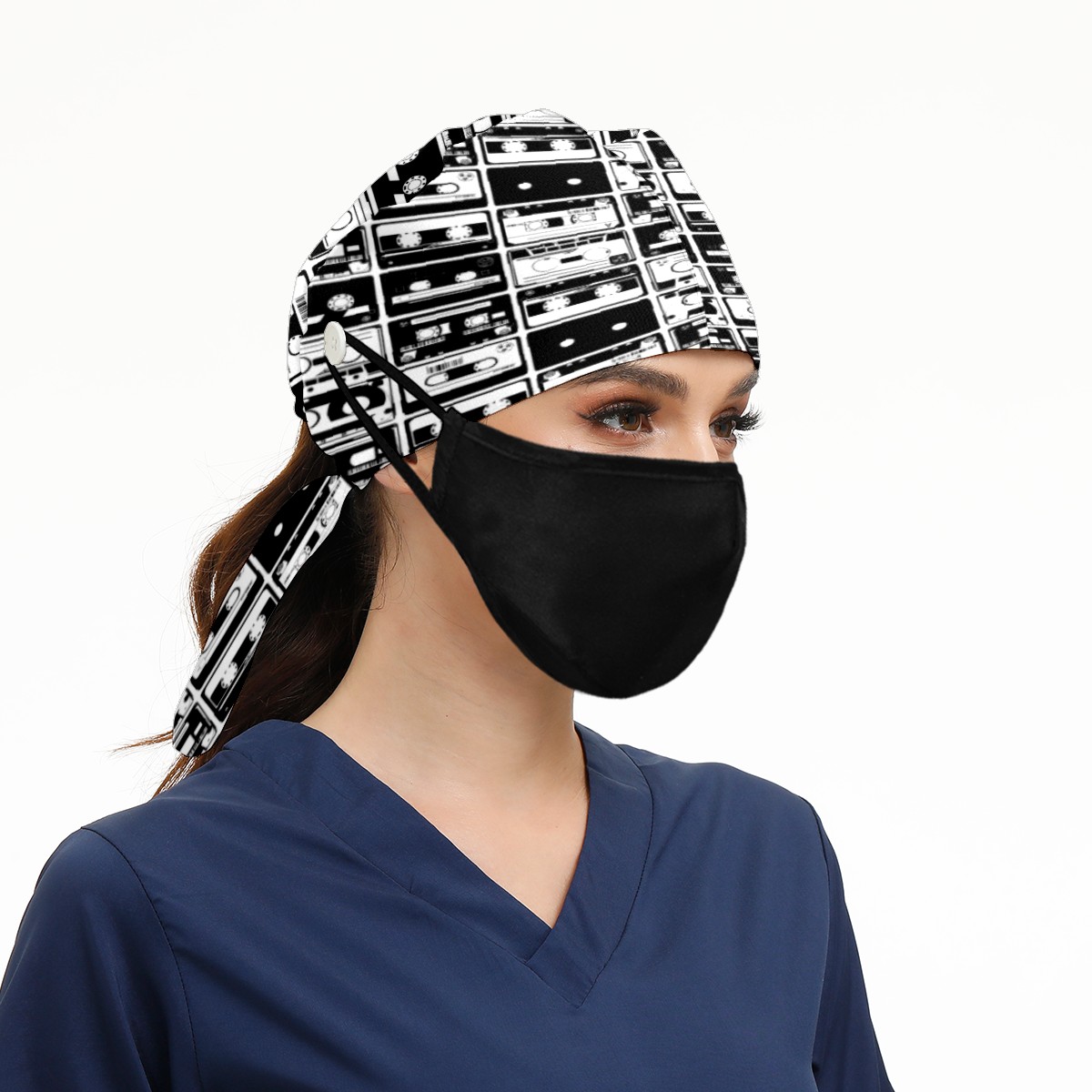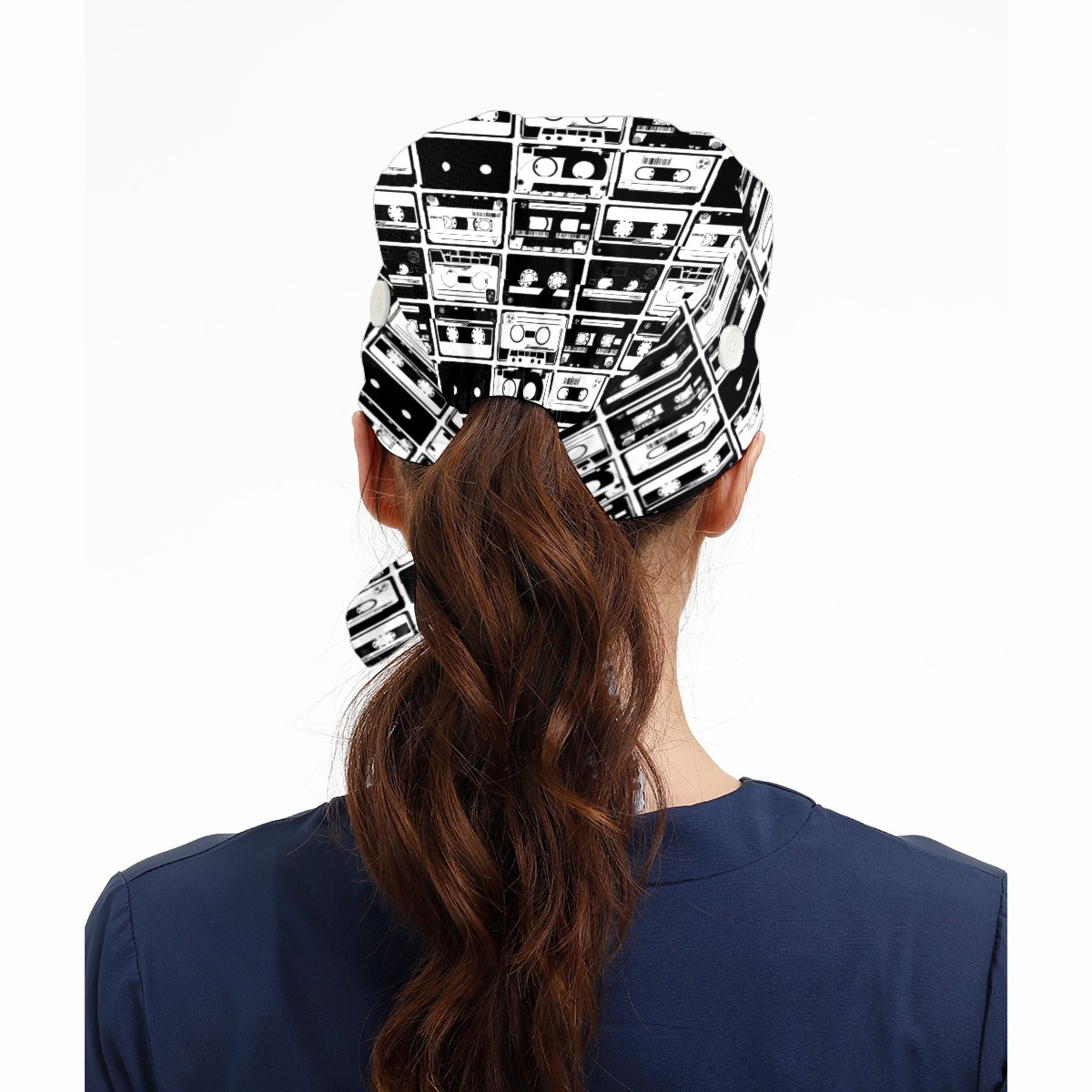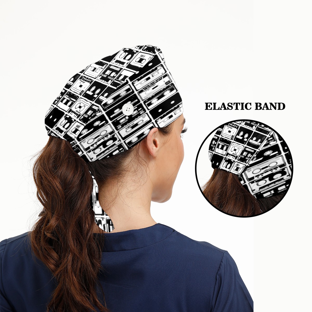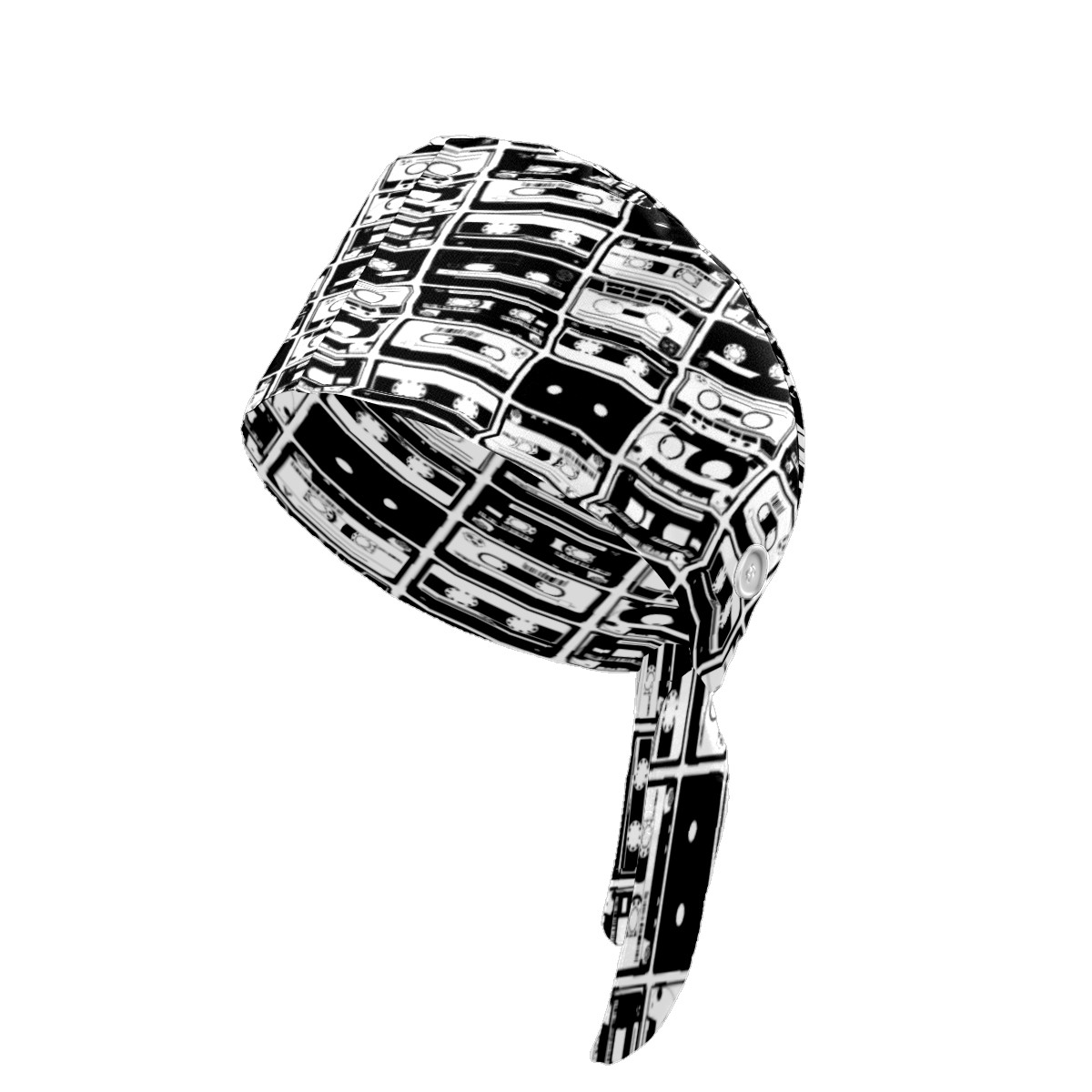 Black And White Cassette Tape Working Cap Button and Sweatband Adjustable Elastic Head Cover Hair Tie Back Work Hats for Women Men
