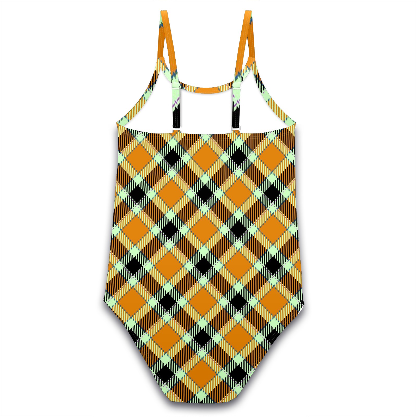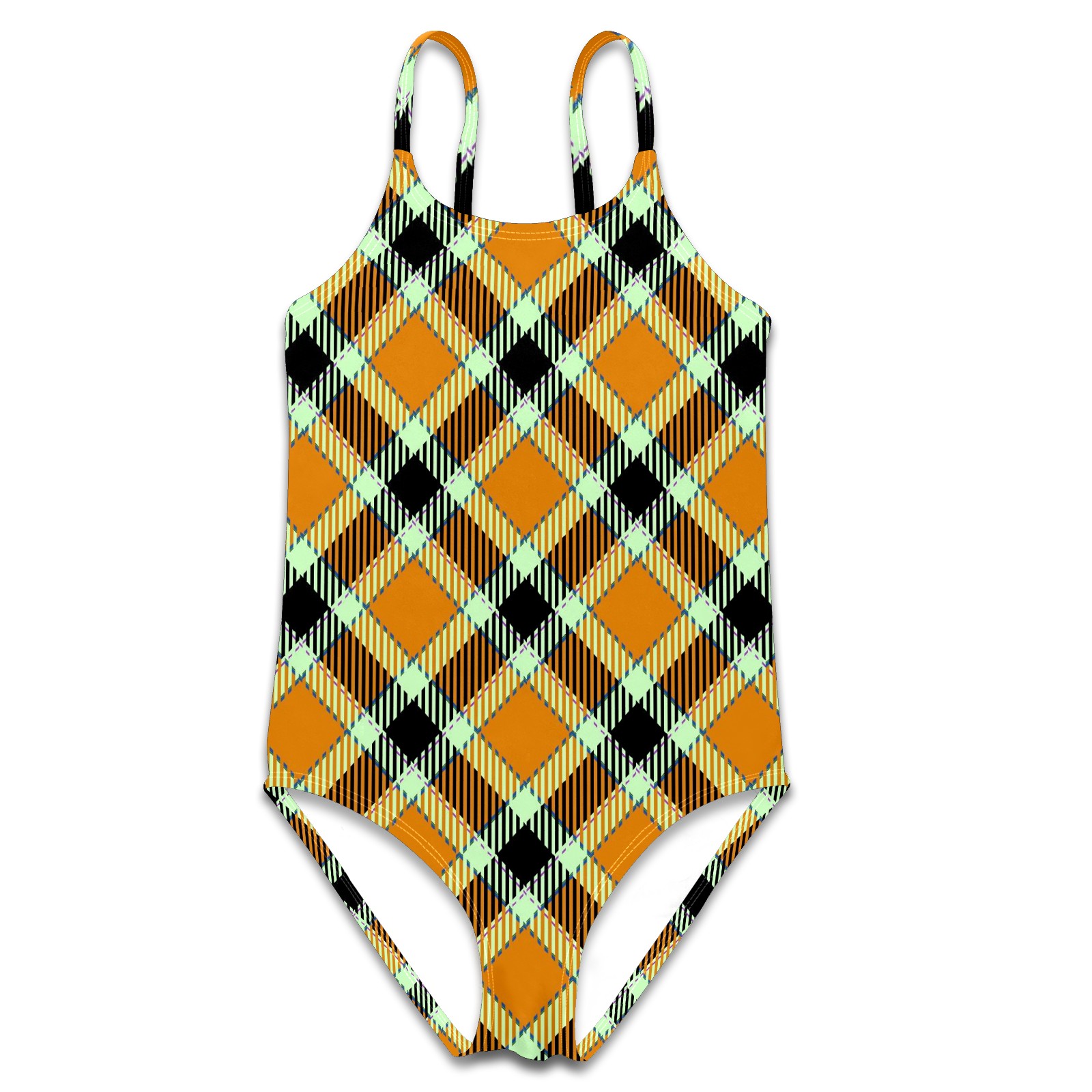 Girls Swimsuits One-Piece Vintage Orange Black Plaid Beach Swimwear Summer Bathing Suit