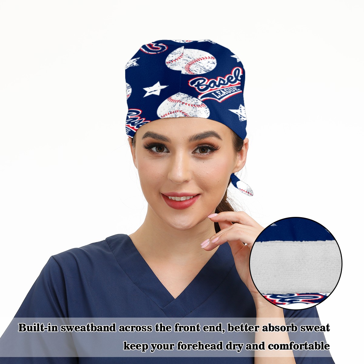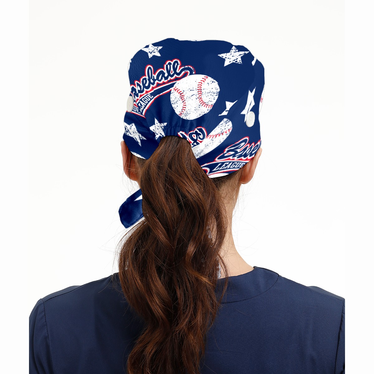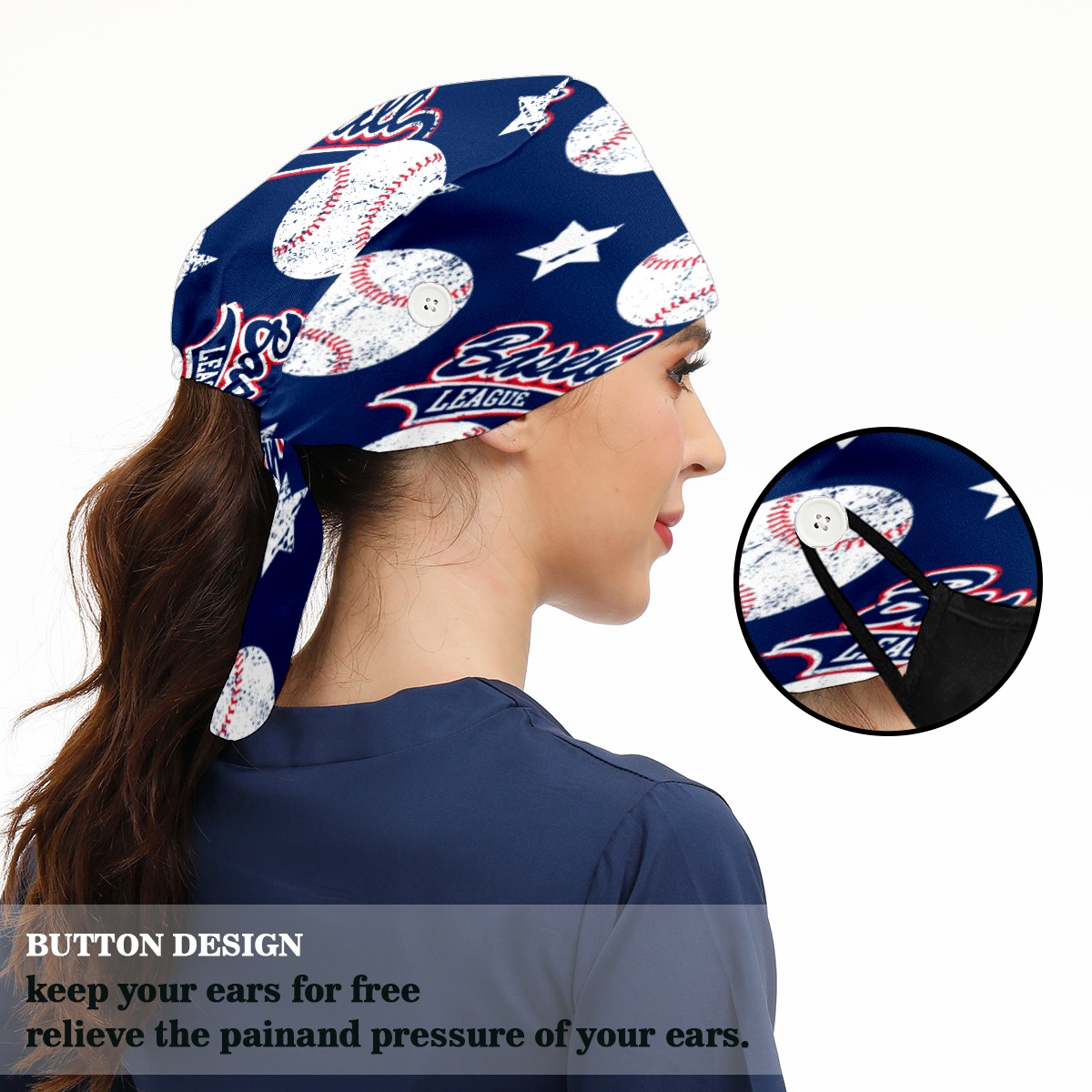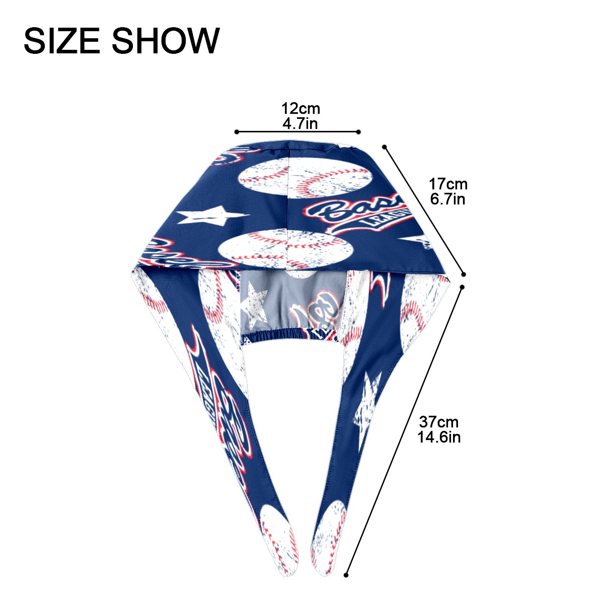 Baseball League Stars Sports Ball Blue Working Cap Button and Sweatband Adjustable Elastic Head Cover Hair Tie Back Work Hats for Women Men
