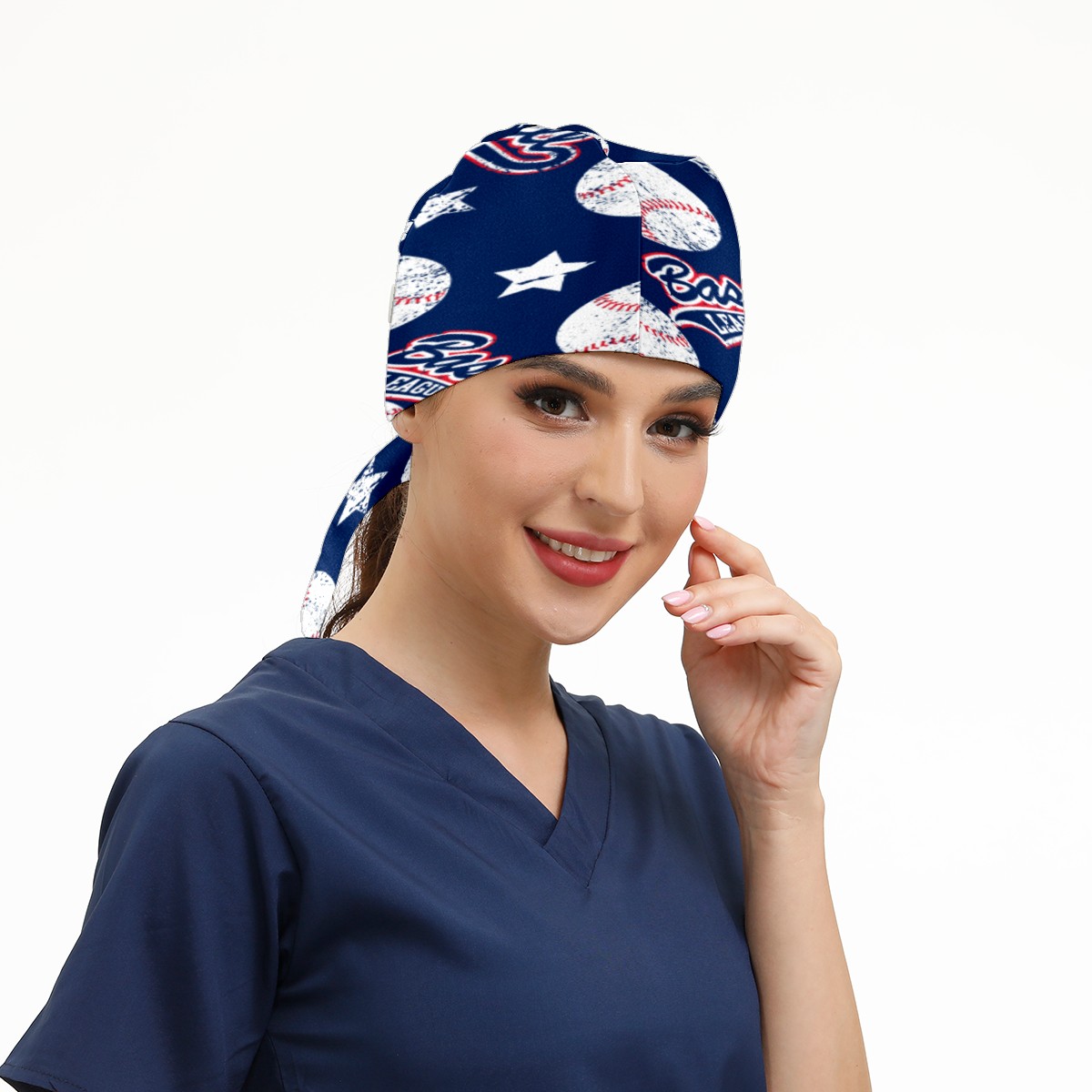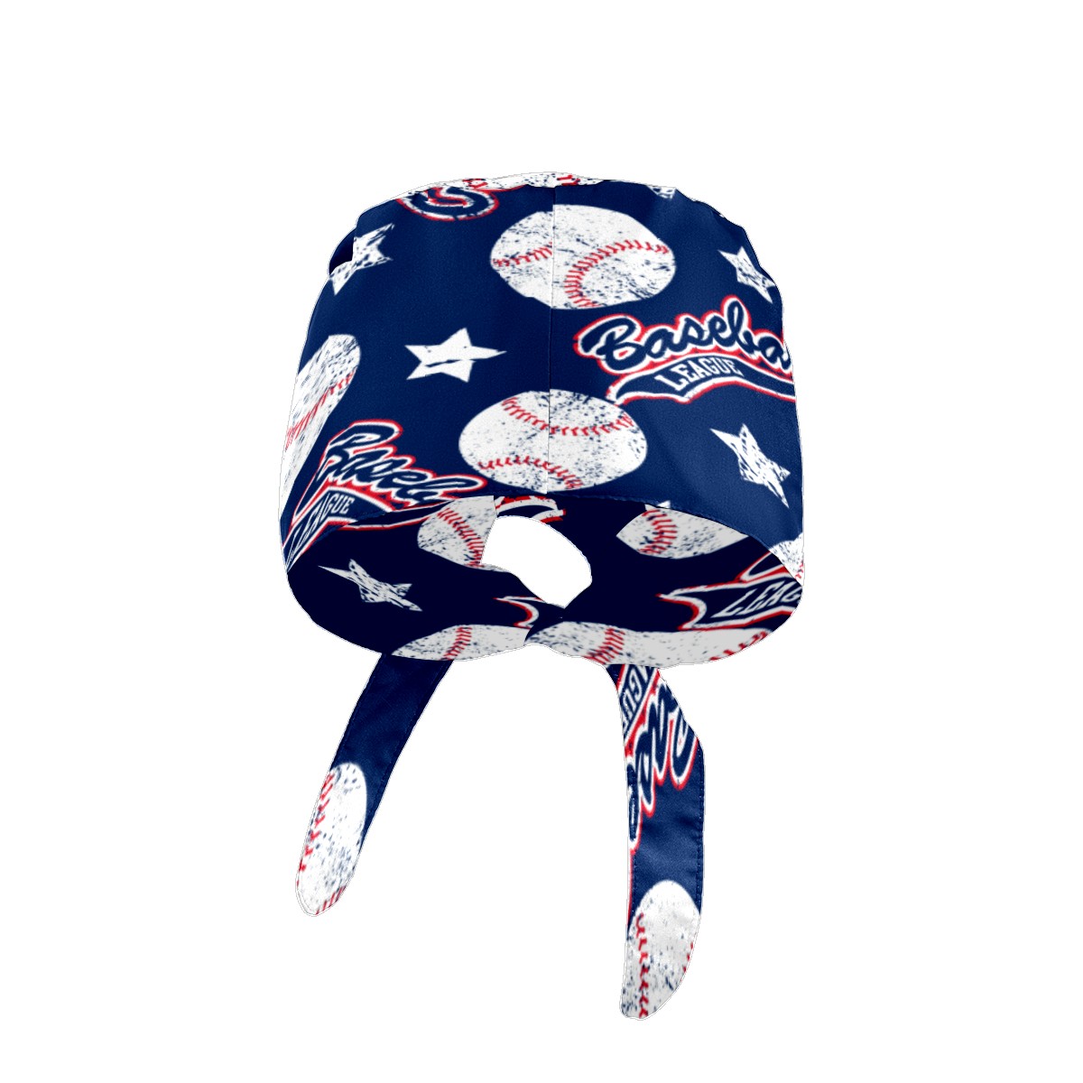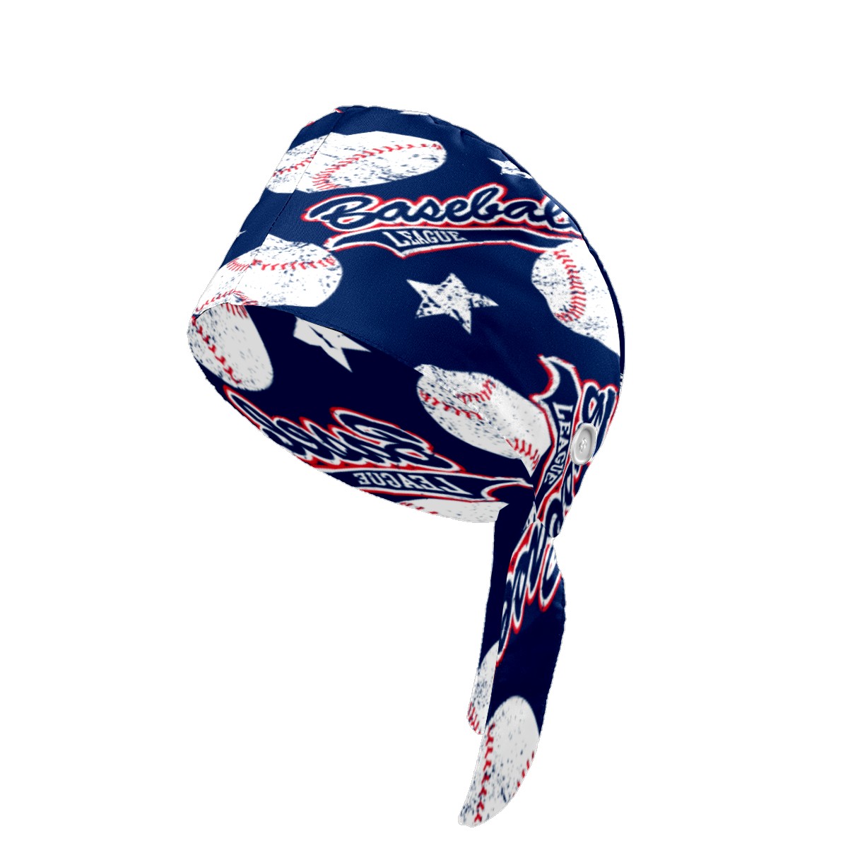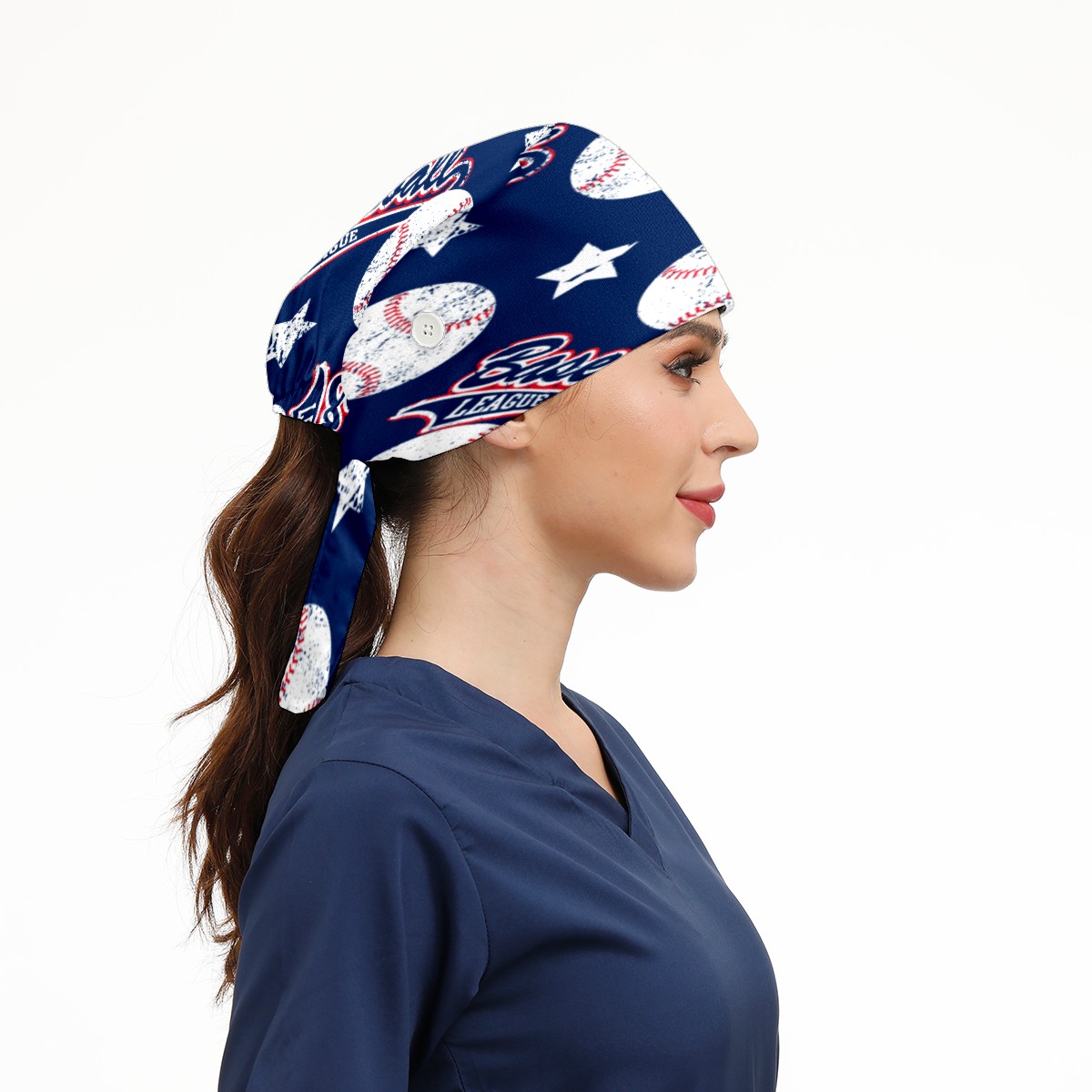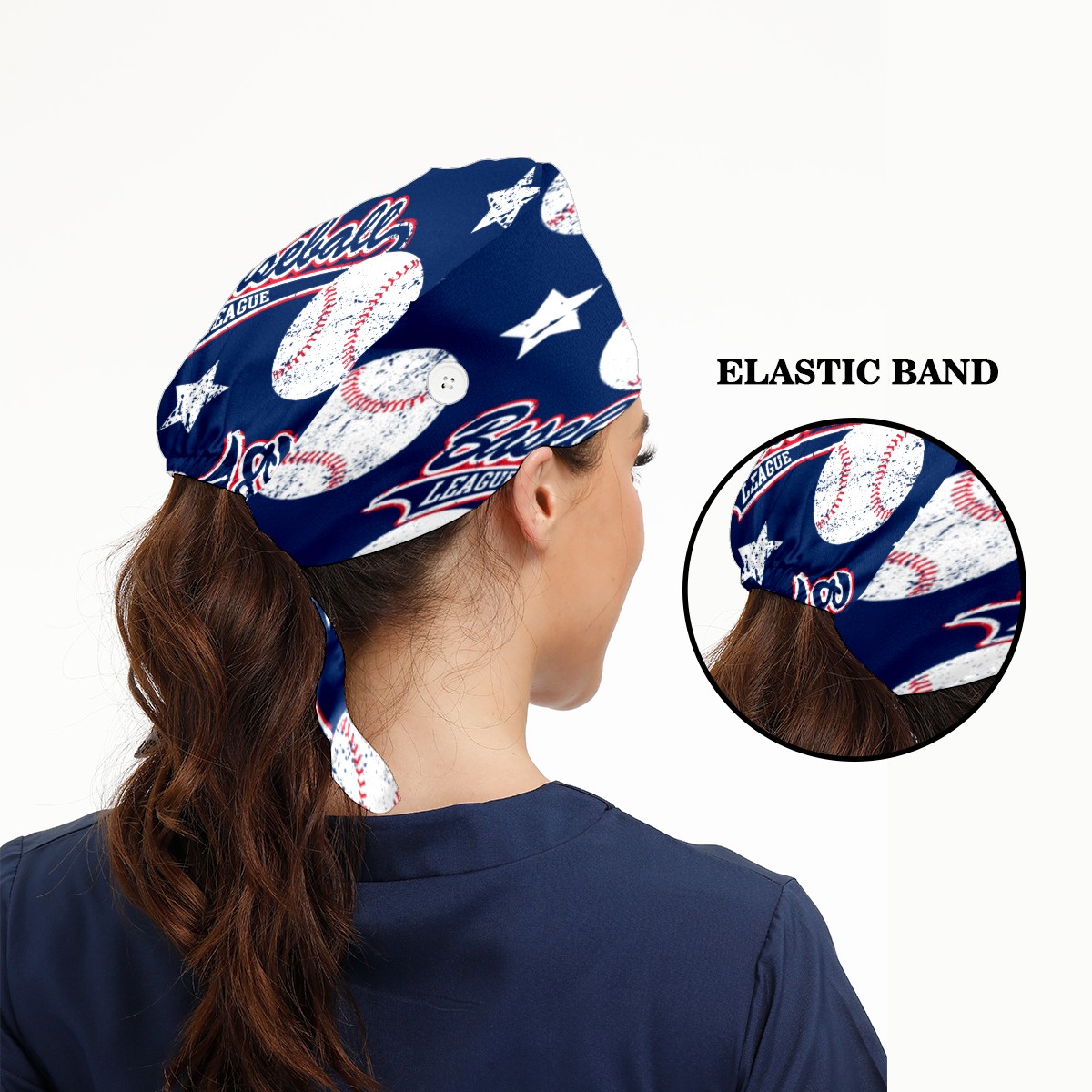 Baseball League Stars Sports Ball Blue Working Cap Button and Sweatband Adjustable Elastic Head Cover Hair Tie Back Work Hats for Women Men
