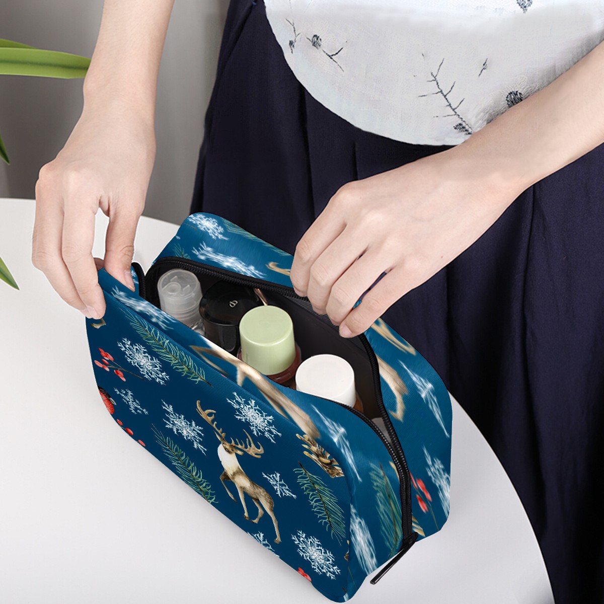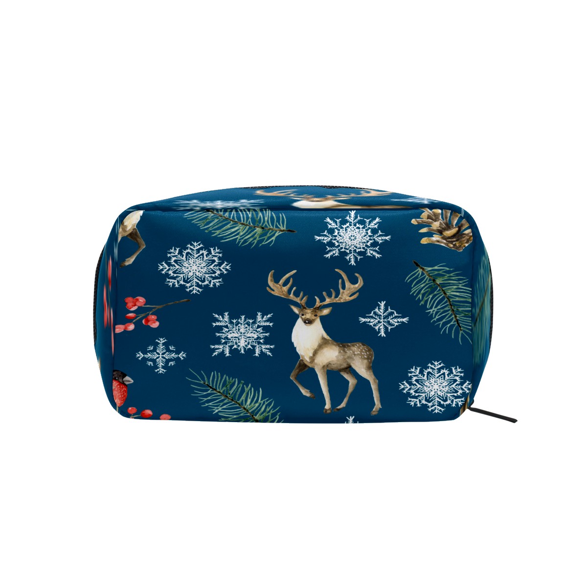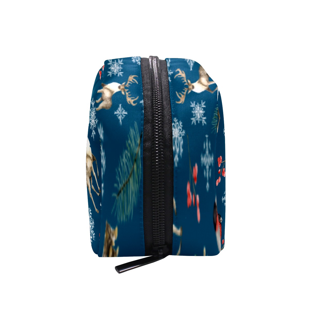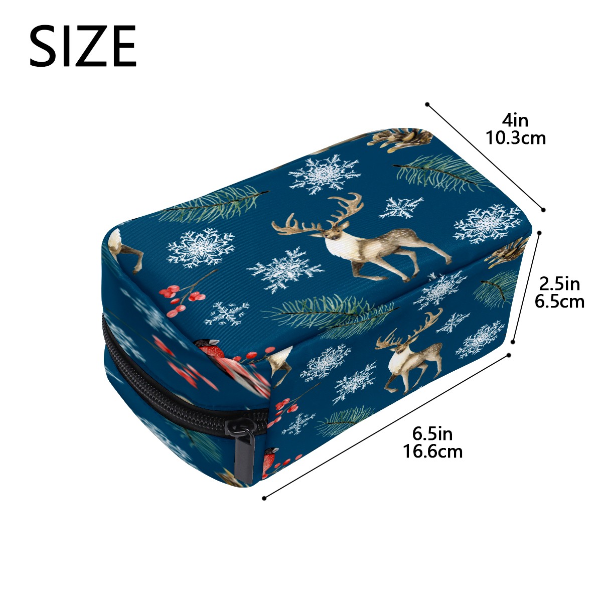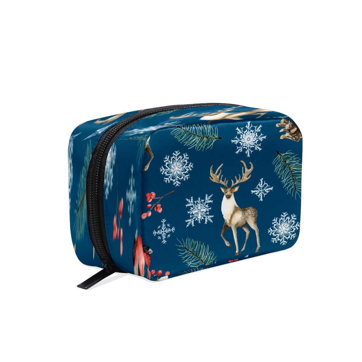 Cosmetic Bag for Women Girls Trave Makeup Bag Toiletry Case Pouch Accessories Organizer Christmas Pattern Deer With Bullfinches