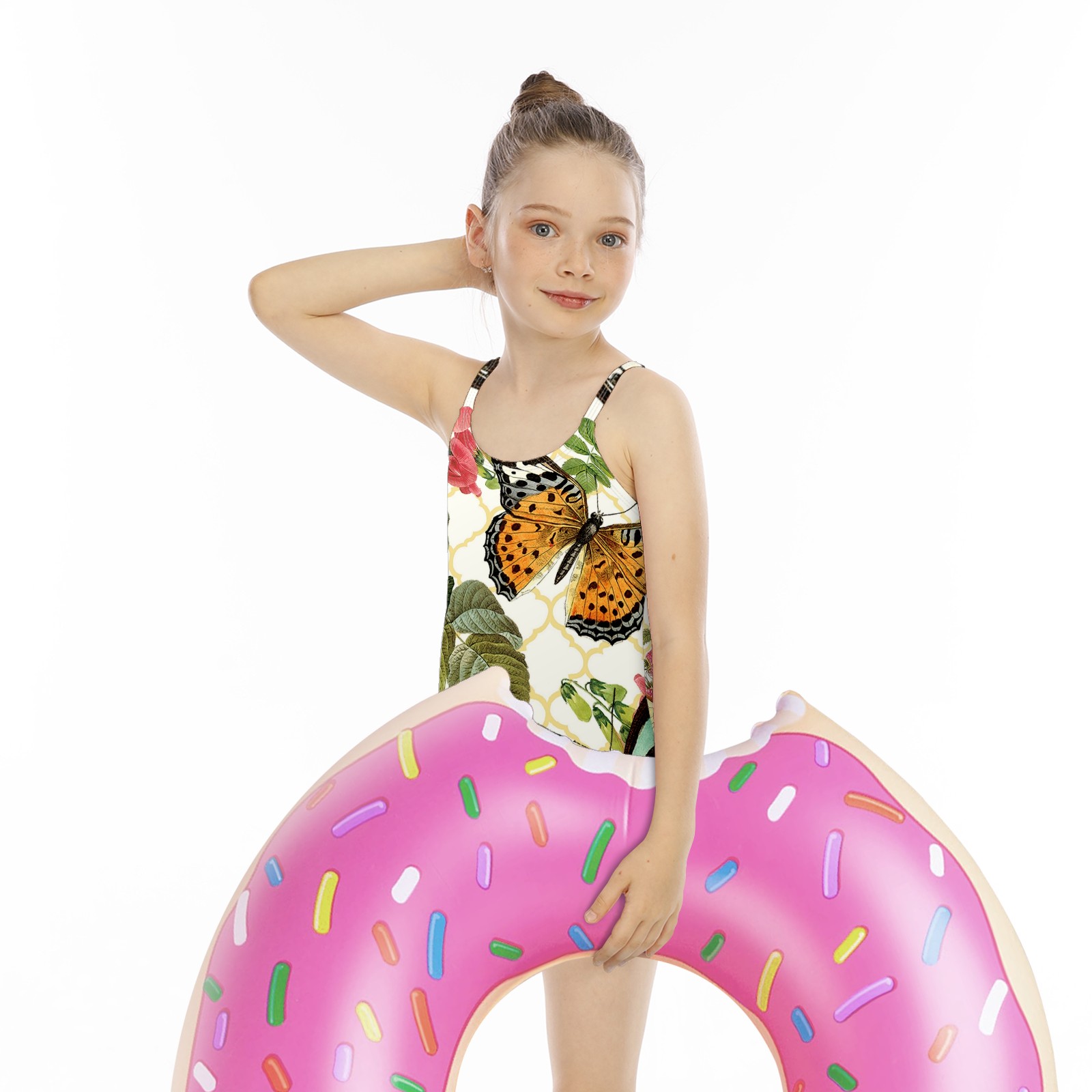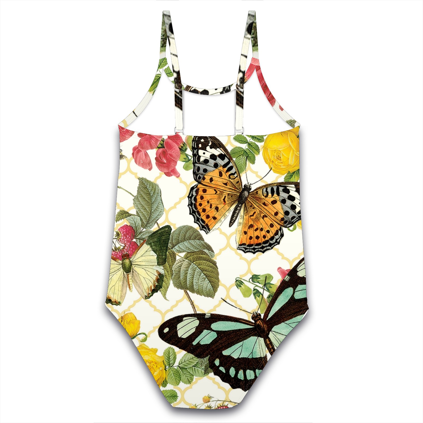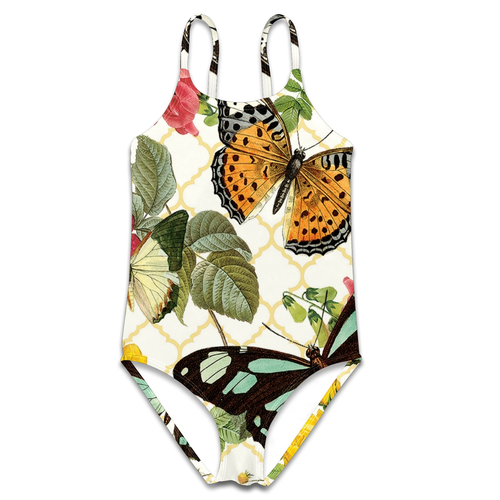 Girls Swimsuits One-Piece Vintage Butterfly Bee Flower Beach Swimwear Summer Bathing Suit
