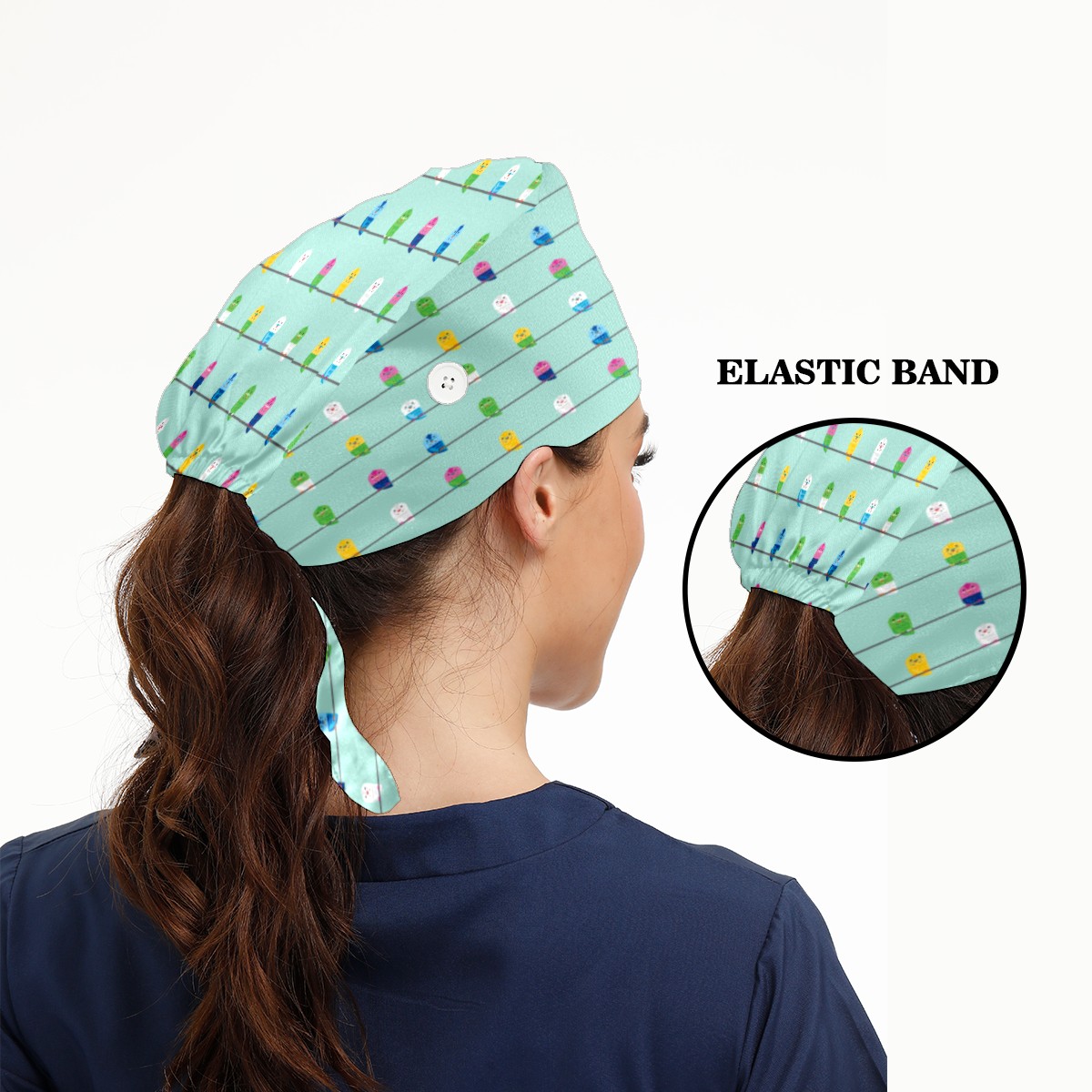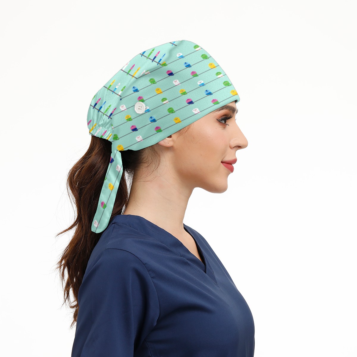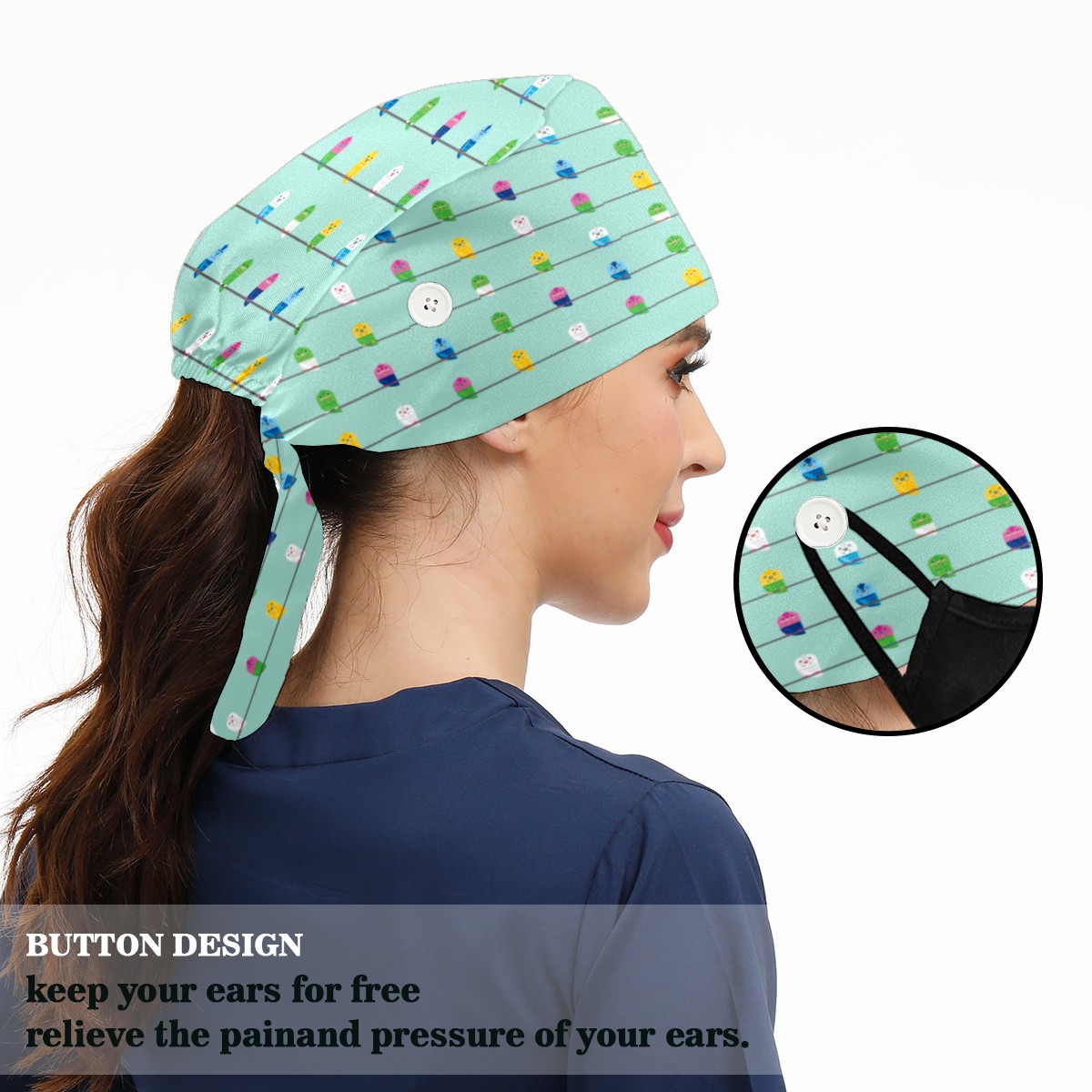 <p>Working cap with Sweatband and Button for Women Men</p><p>Material&nbsp;: 50% cotton+50% polyester</p><p>Size:&nbsp;One size fits most,&nbsp;suitable for both men and women.</p><p>Working Cap with Buttons Design:special&nbsp;design with buttons to protect ears for those who are wearing ma-sk. These new styles hats will allow you to put the straps around the buttons instead of your ears, make you feel more comfortable.</p><p>Sweat-absorbent towel cloth inside: Built-in&nbsp;100% cotton sweatband, keep the forehead clean after long time working.</p><p>Widely occasion: Widely used in beauty spa, house cleaning, cooking, sleeping, or for cos-play&nbsp;party.</p><p>Lovely pattern: lovely&nbsp;3D printed&nbsp;pattern,&nbsp;it's perfect for gift to you family&nbsp;and friends.</p>
