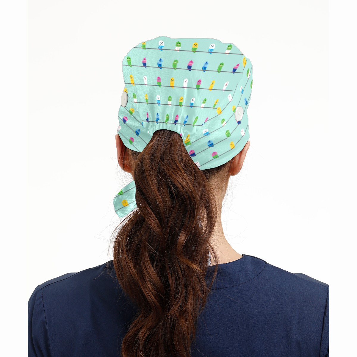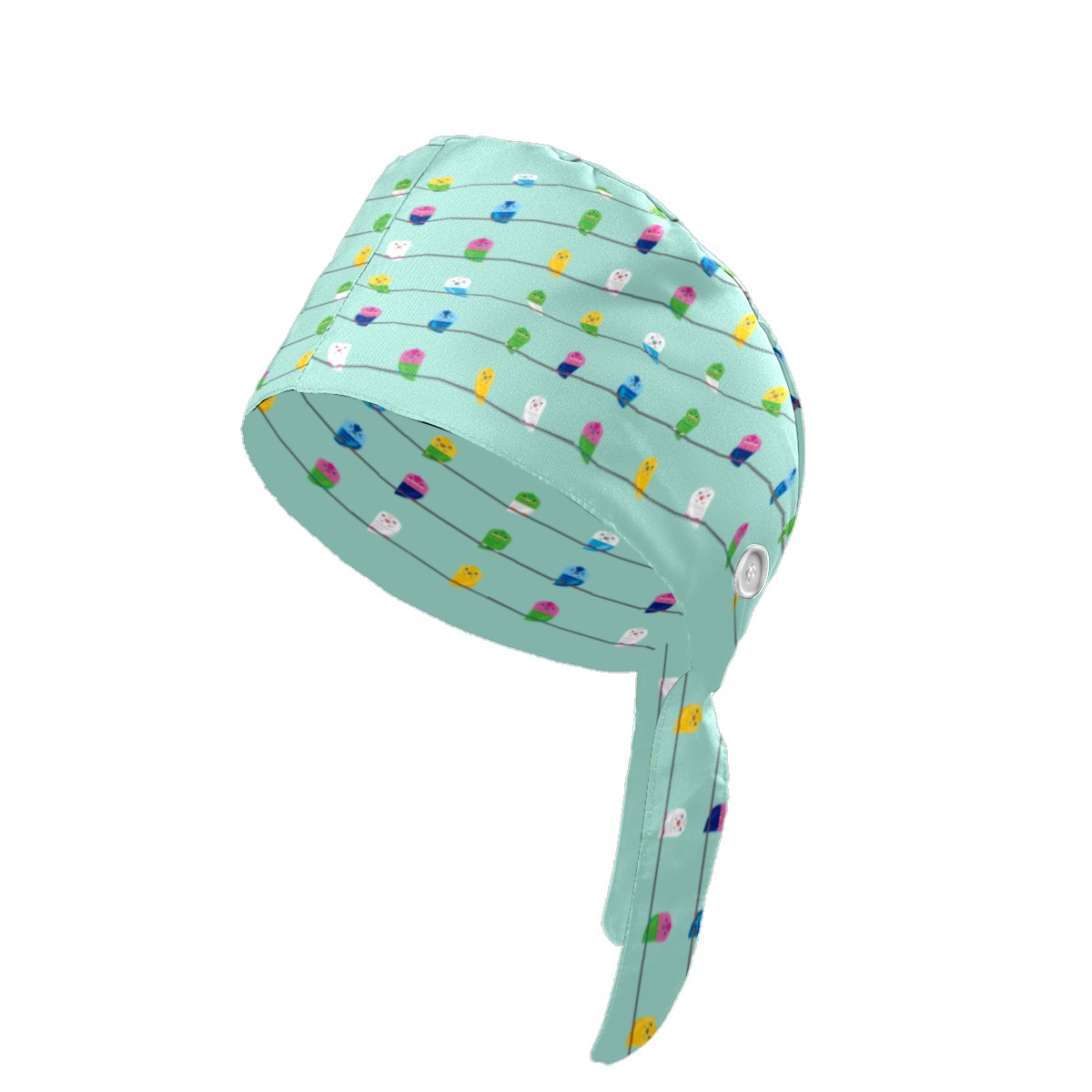 Budgies Pattern Working Cap Button and Sweatband Adjustable Elastic Head Cover Hair Tie Back Work Hats for Women Men