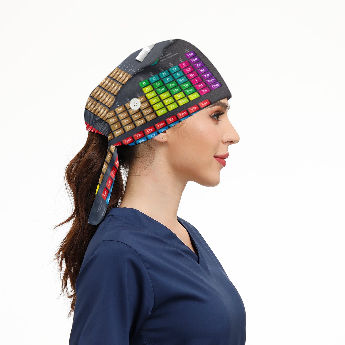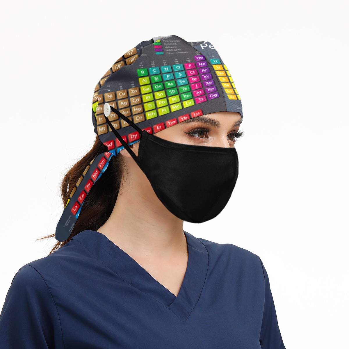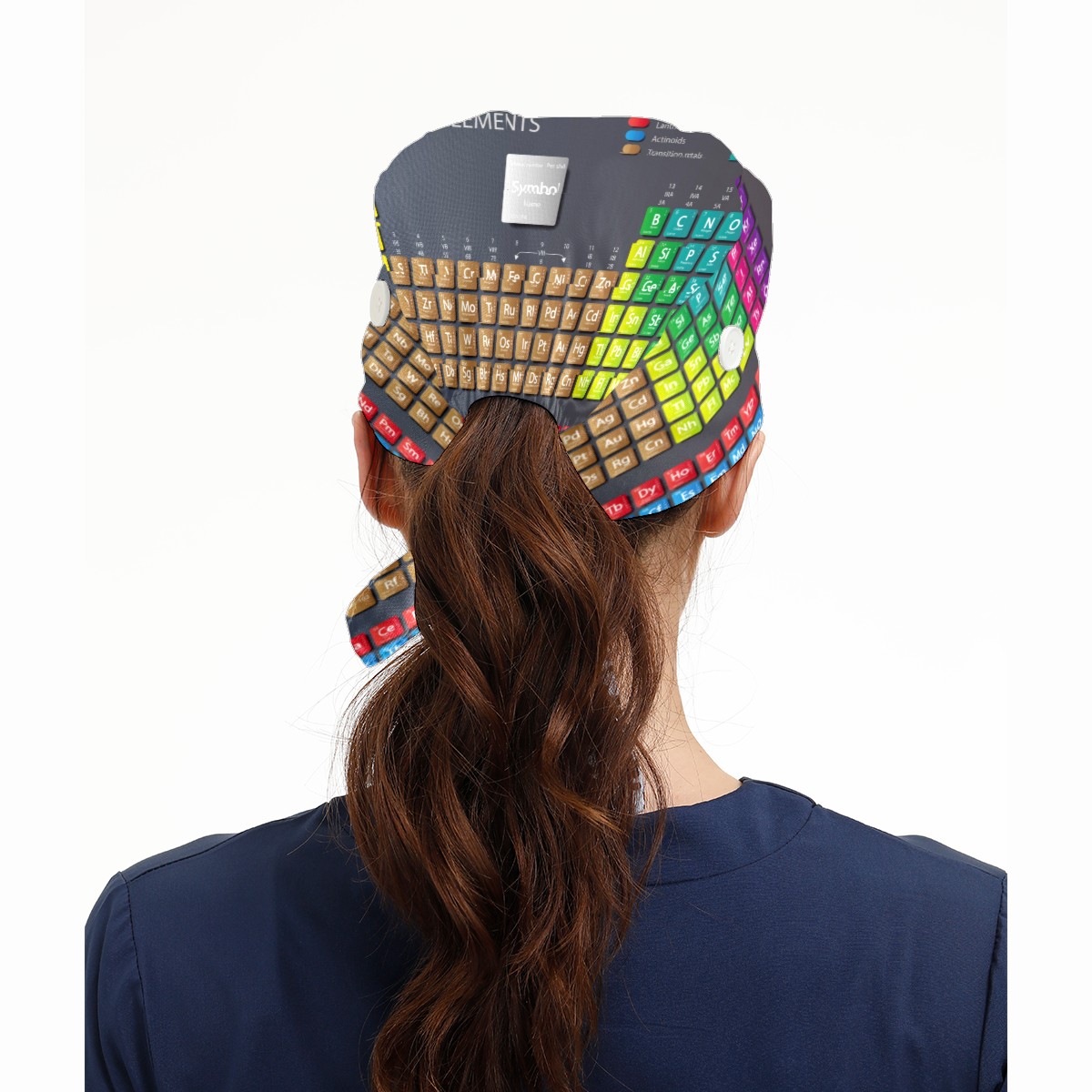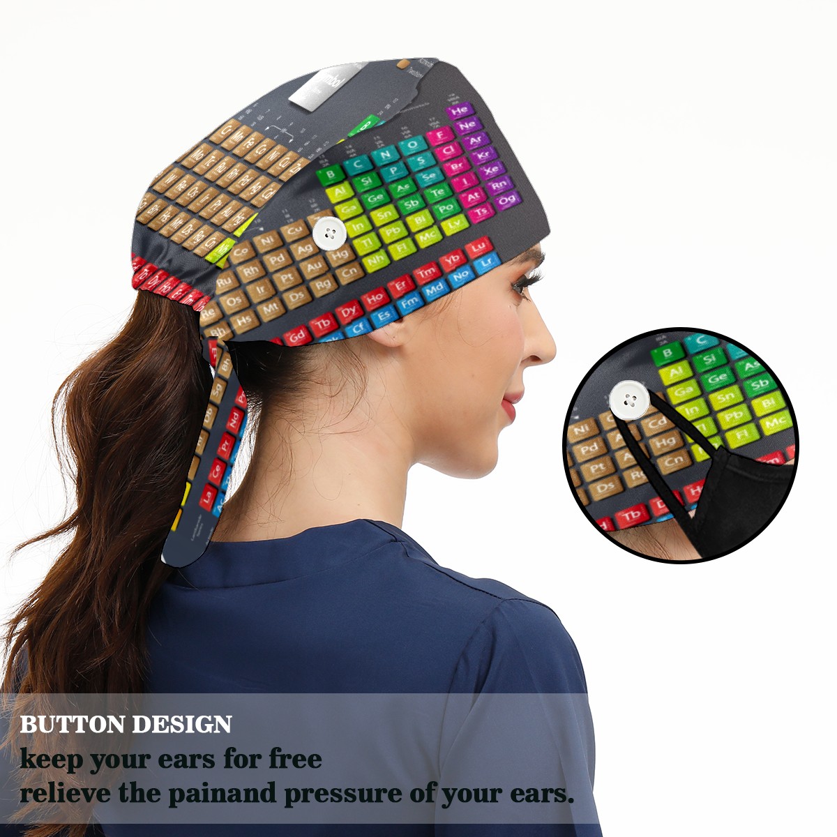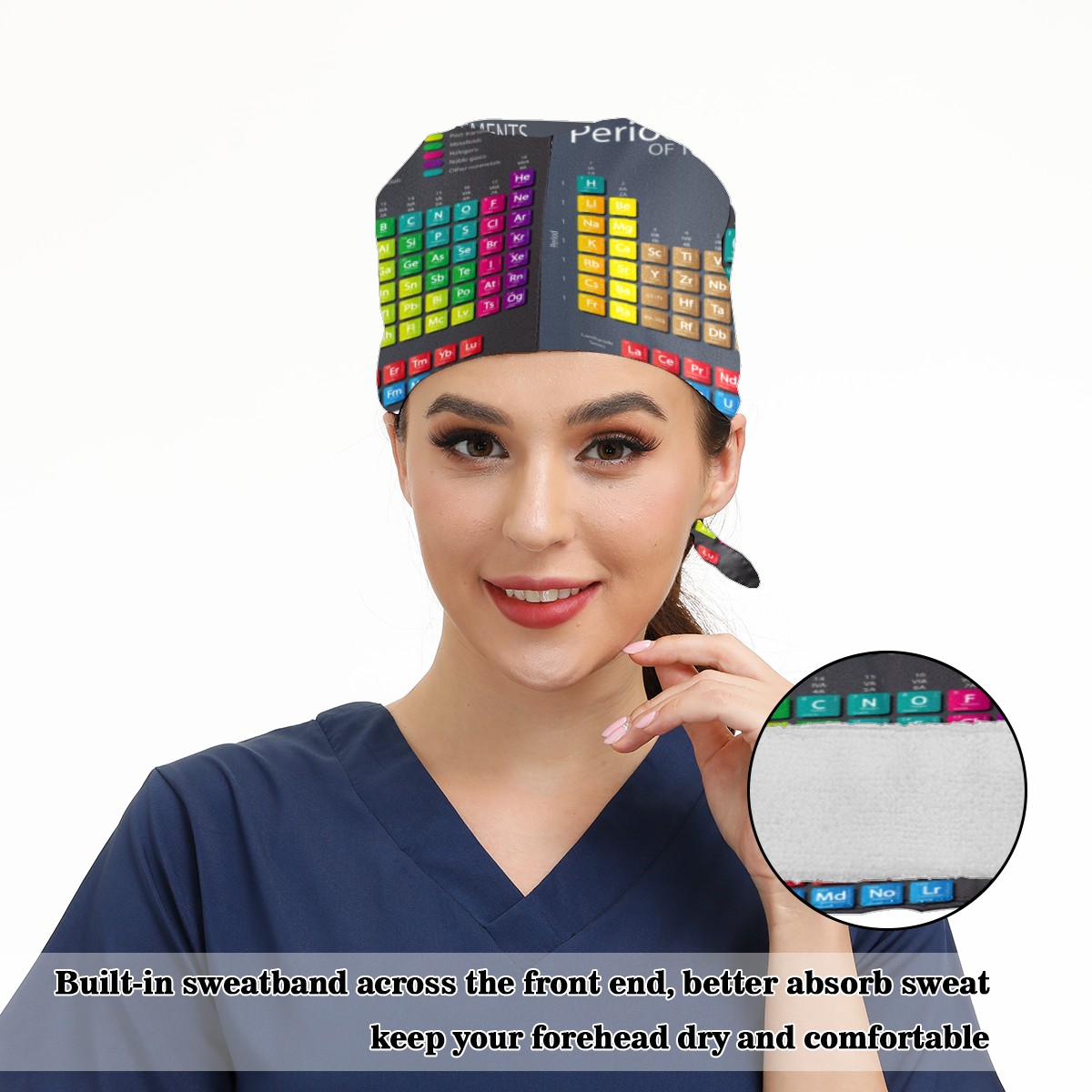 Grey Colorful Periodic Table Chemistry Working Cap Button and Sweatband Adjustable Elastic Head Cover Hair Tie Back Work Hats for Women Men