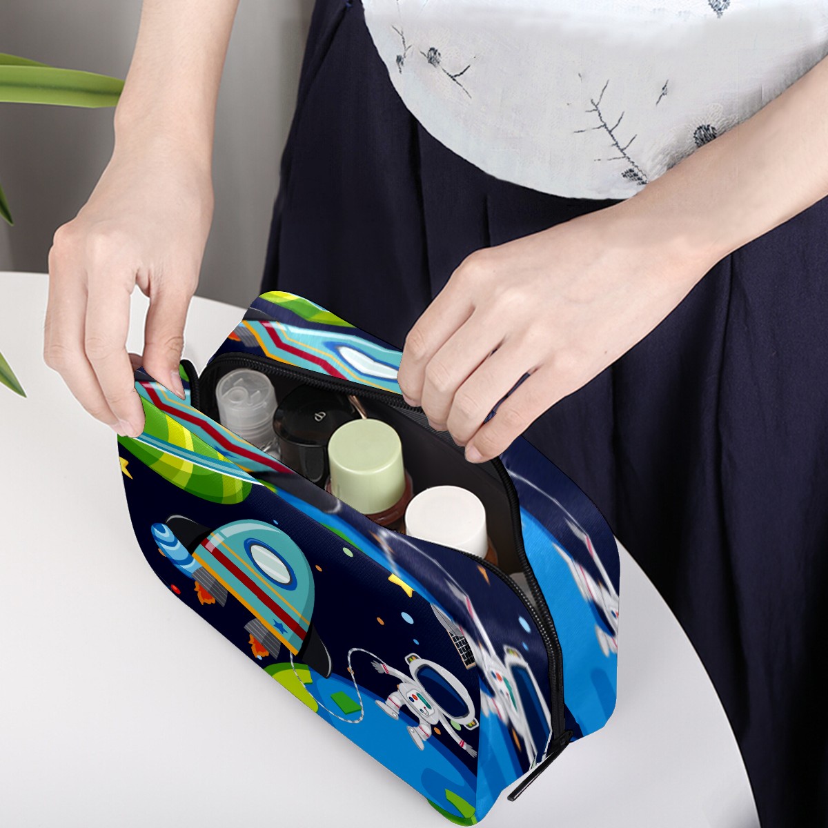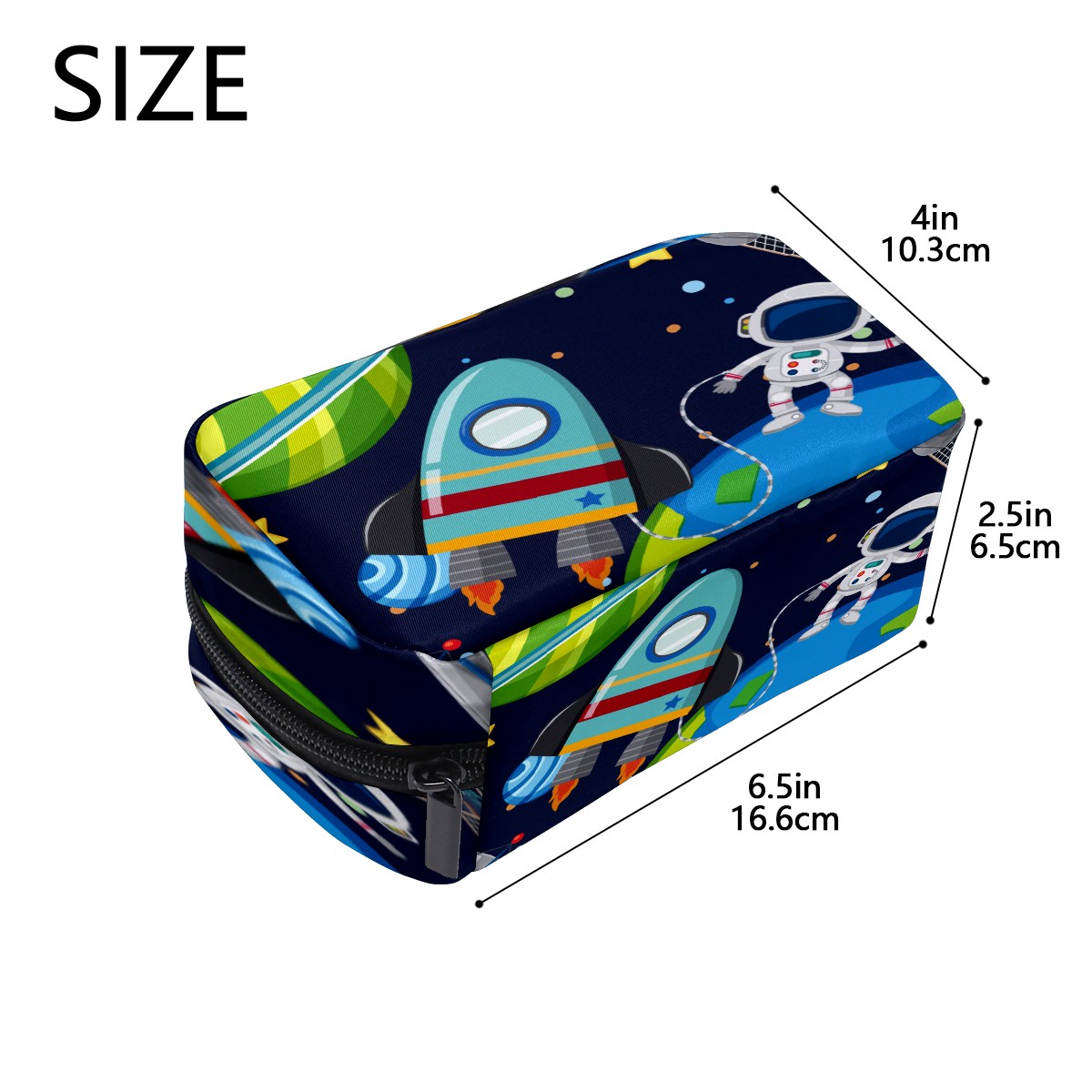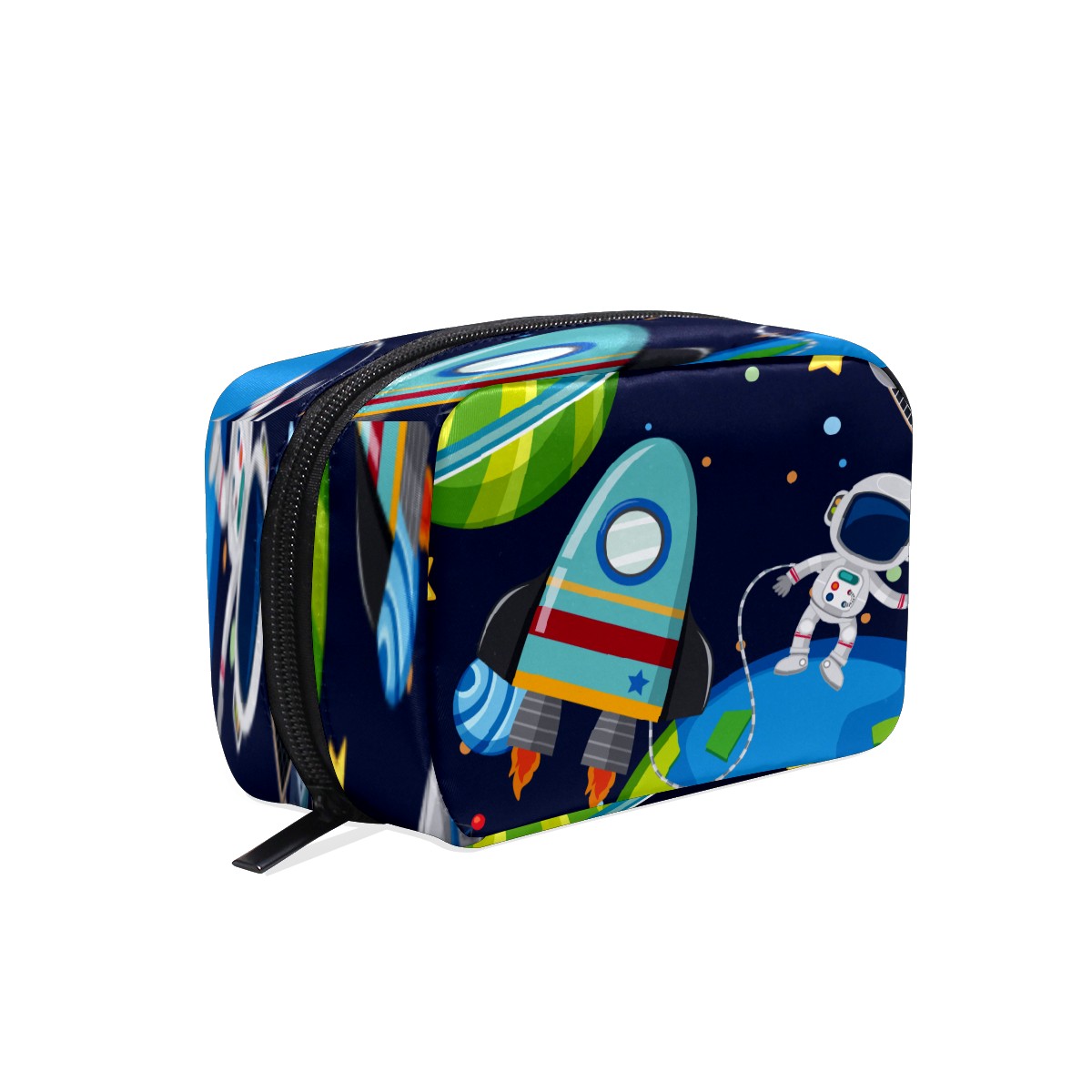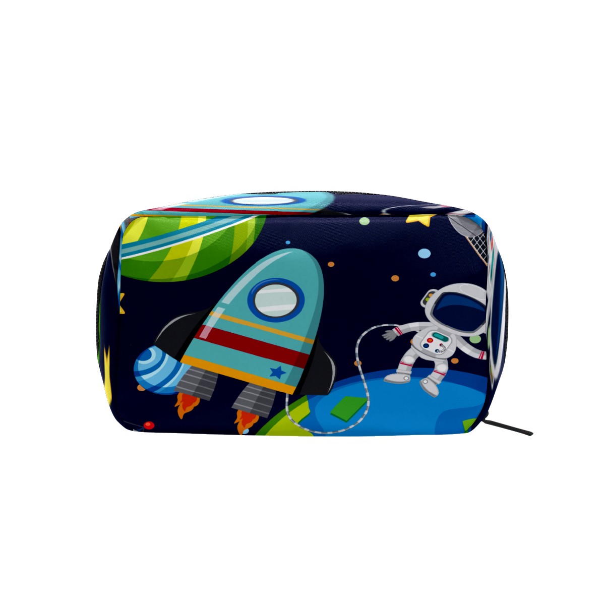 Cosmetic Bag for Women Girls Trave Makeup Bag Toiletry Case Pouch Accessories Organizer Cartoon Spaceship Astronaut Planet Earth Stars