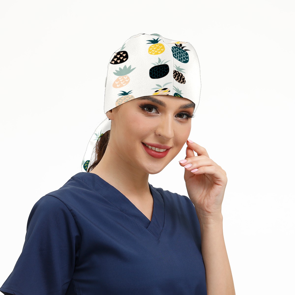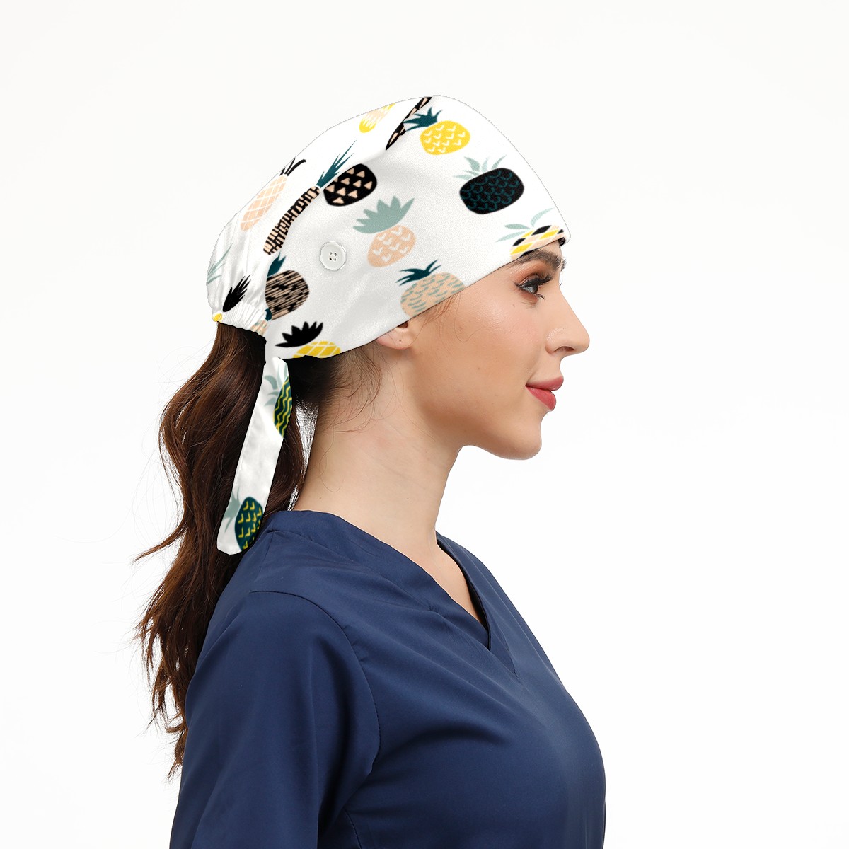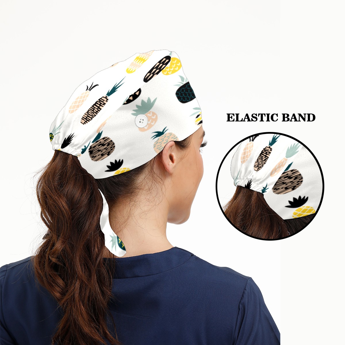 Pineapple Working Cap Button and Sweatband Adjustable Elastic Head Cover Hair Tie Back Work Hats for Women Men