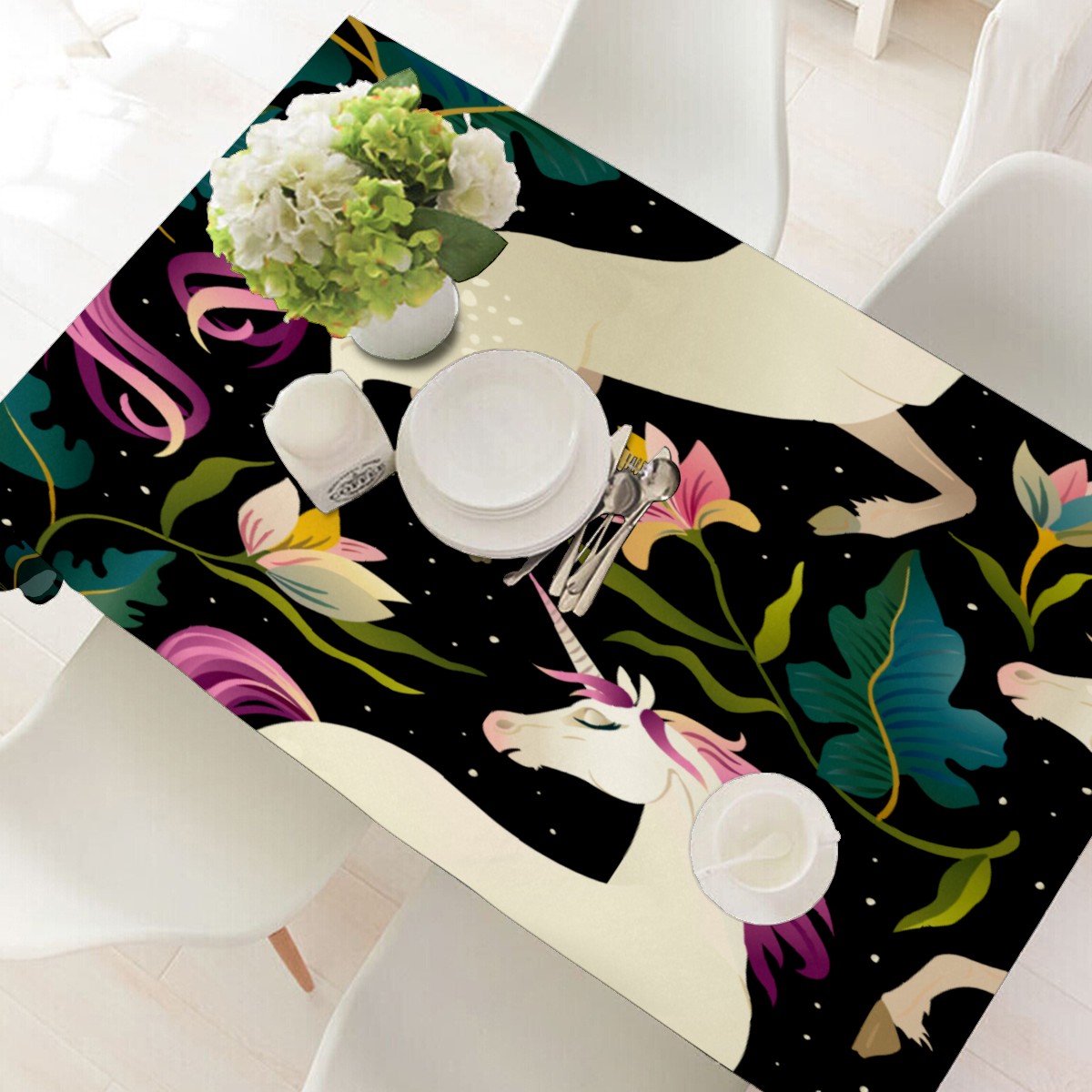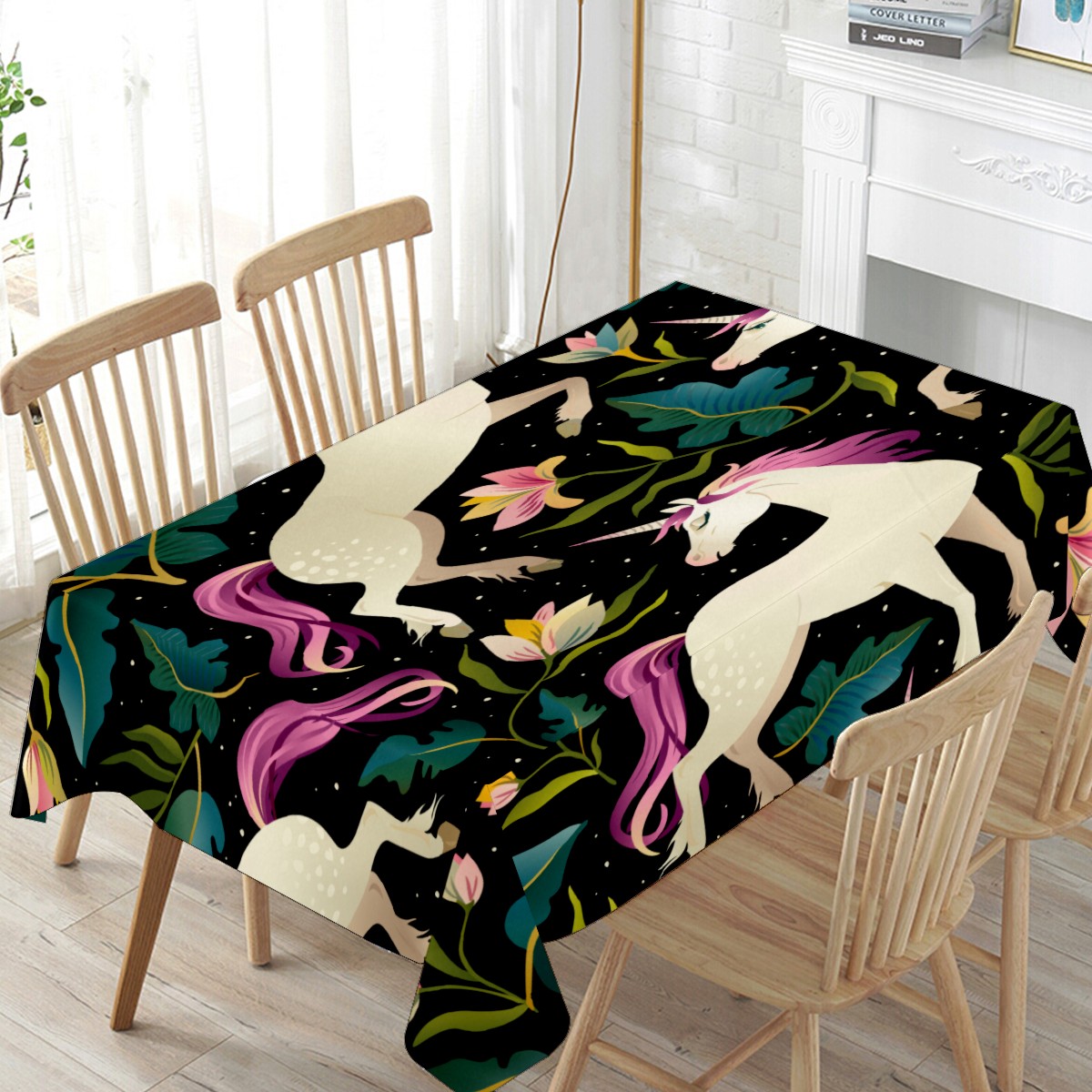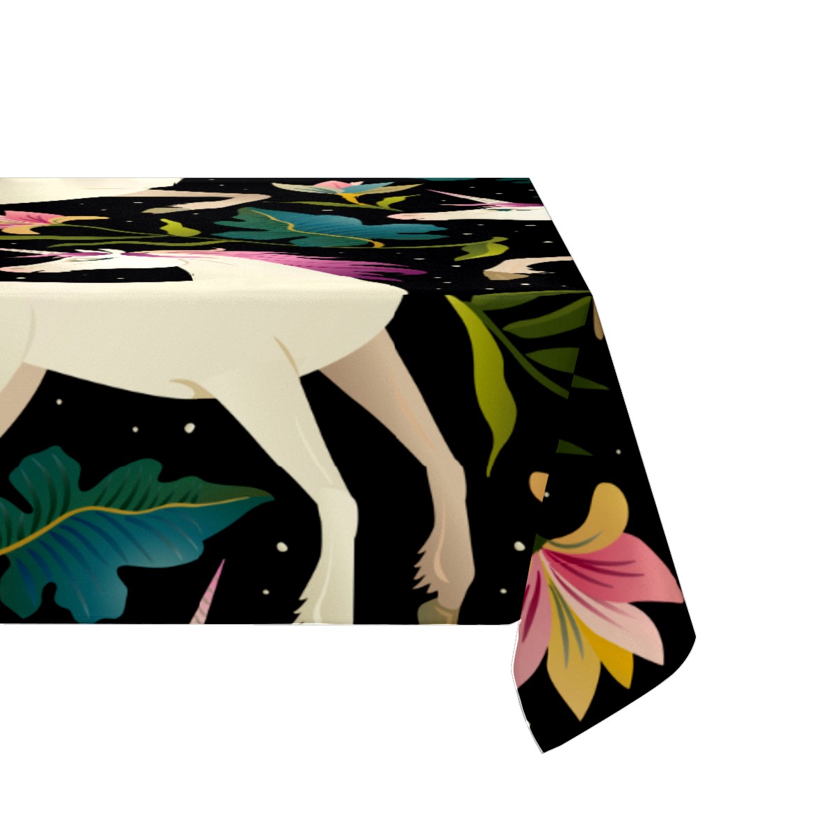 Rectangle Tablecloth Fancy Unicorn Jungle Leaves Floral Table Cloth 54x54in Table Cover for Kitchen Dining Table Party Home Decoration Washable Table Runner