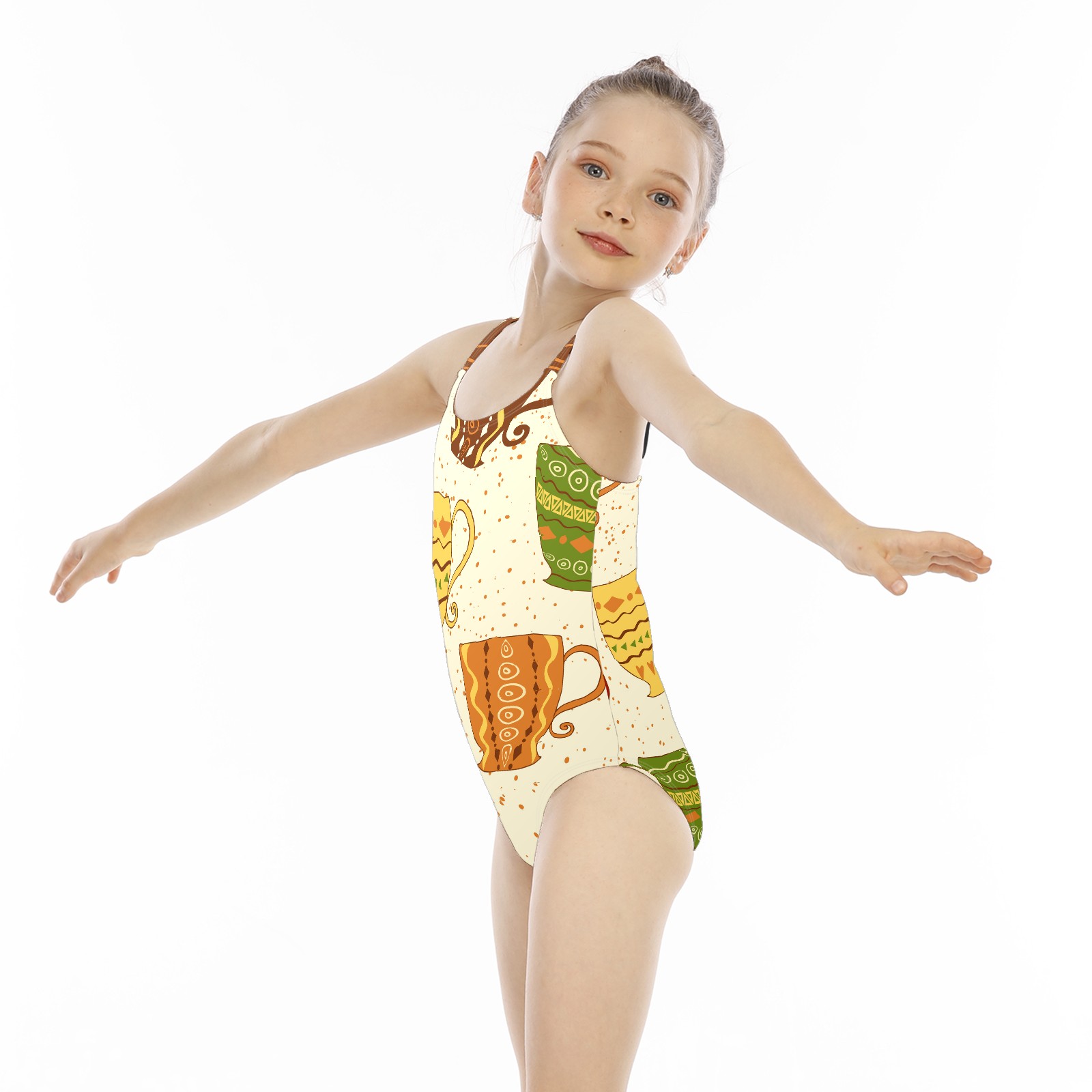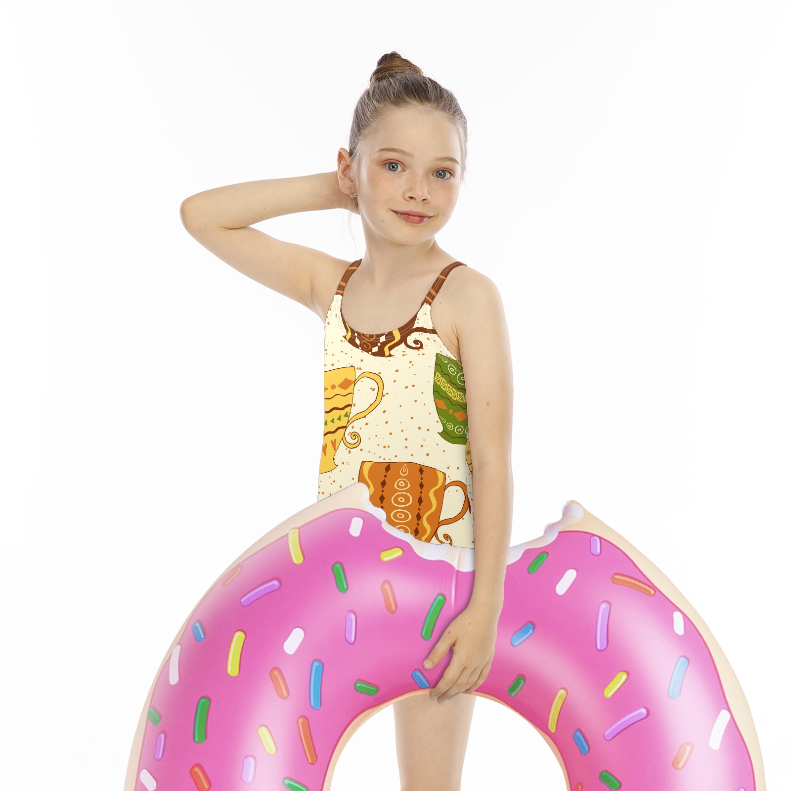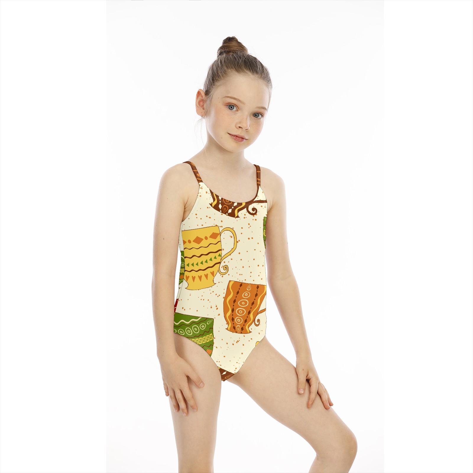 Girls Swimsuits One-Piece Vintage Boho Tea Cup Pattern Beach Swimwear Summer Bathing Suit