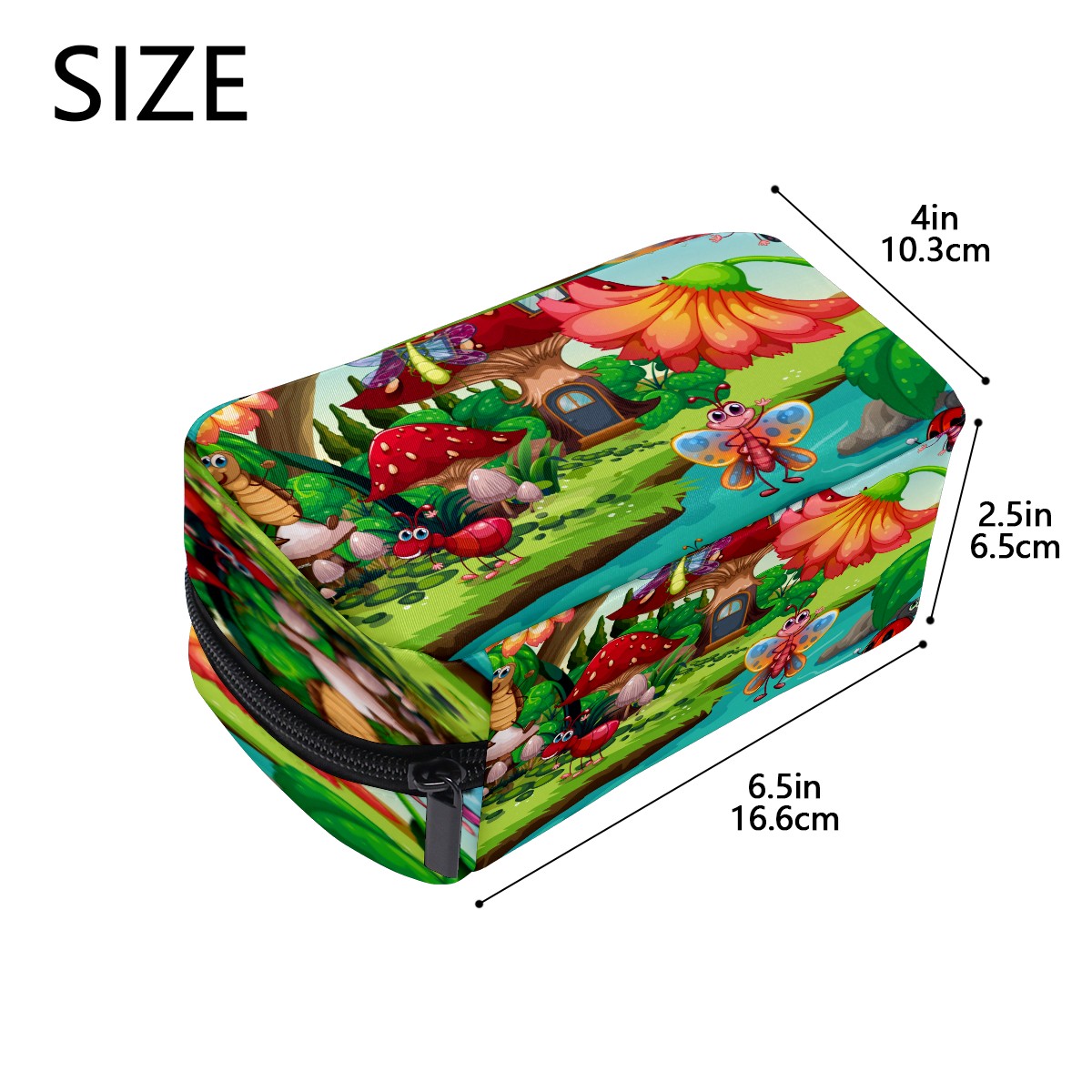 Cosmetic Bag for Women Girls Trave Makeup Bag Toiletry Case Pouch Accessories Organizer Cartoon Insecat Ladybird Bee Butterfly Floral Mushroom