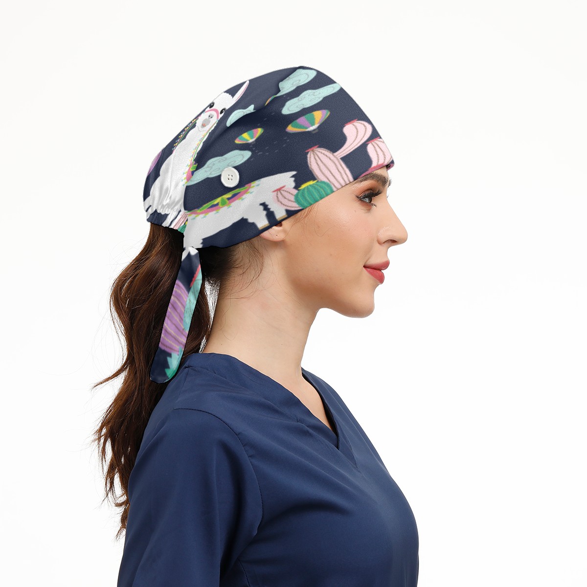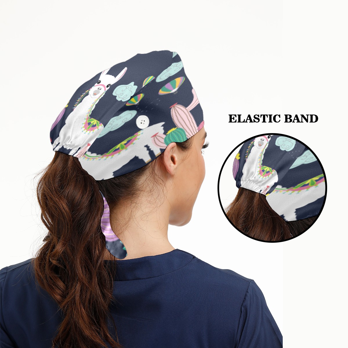 Alpaca Llama Working Cap Button and Sweatband Adjustable Elastic Head Cover Hair Tie Back Work Hats for Women Men