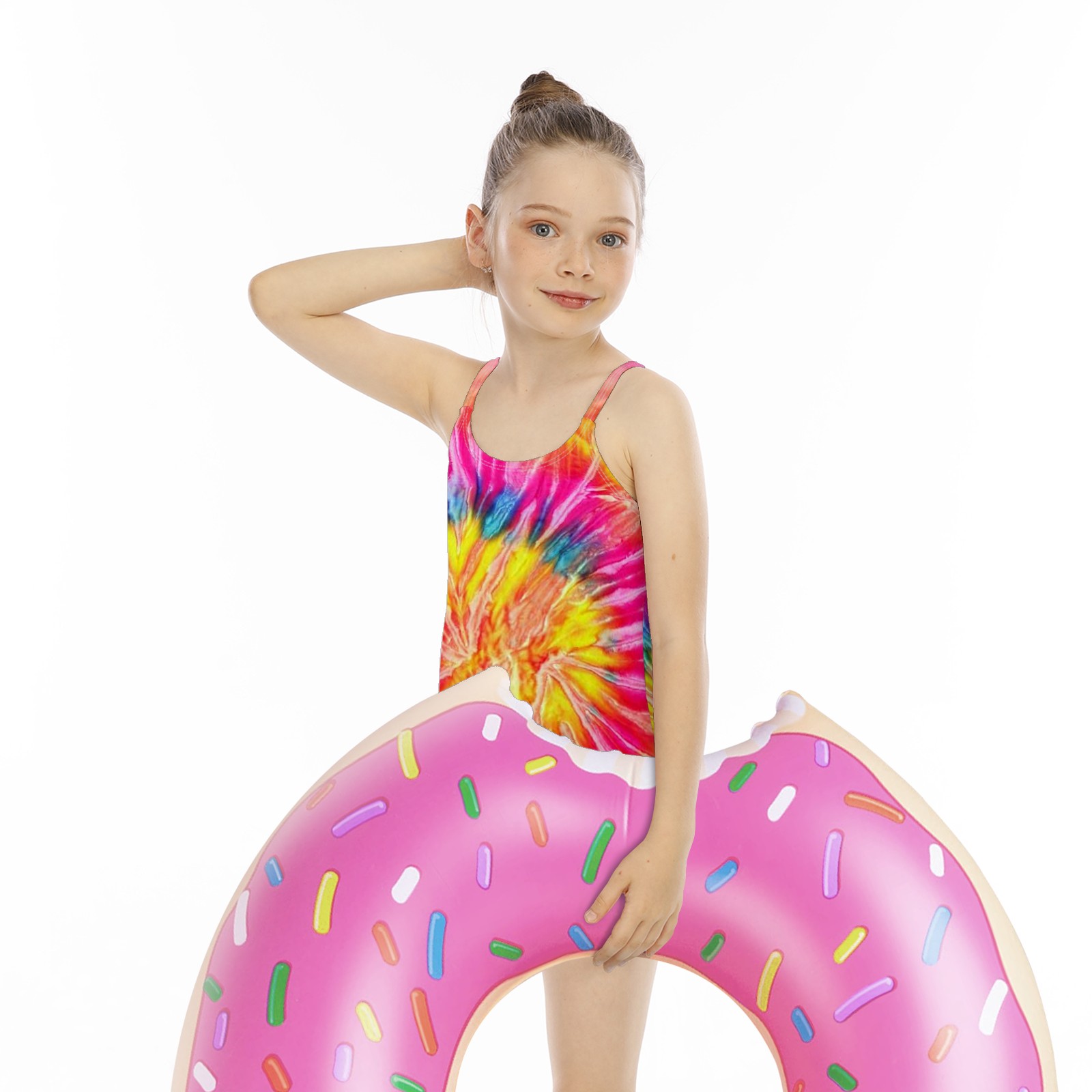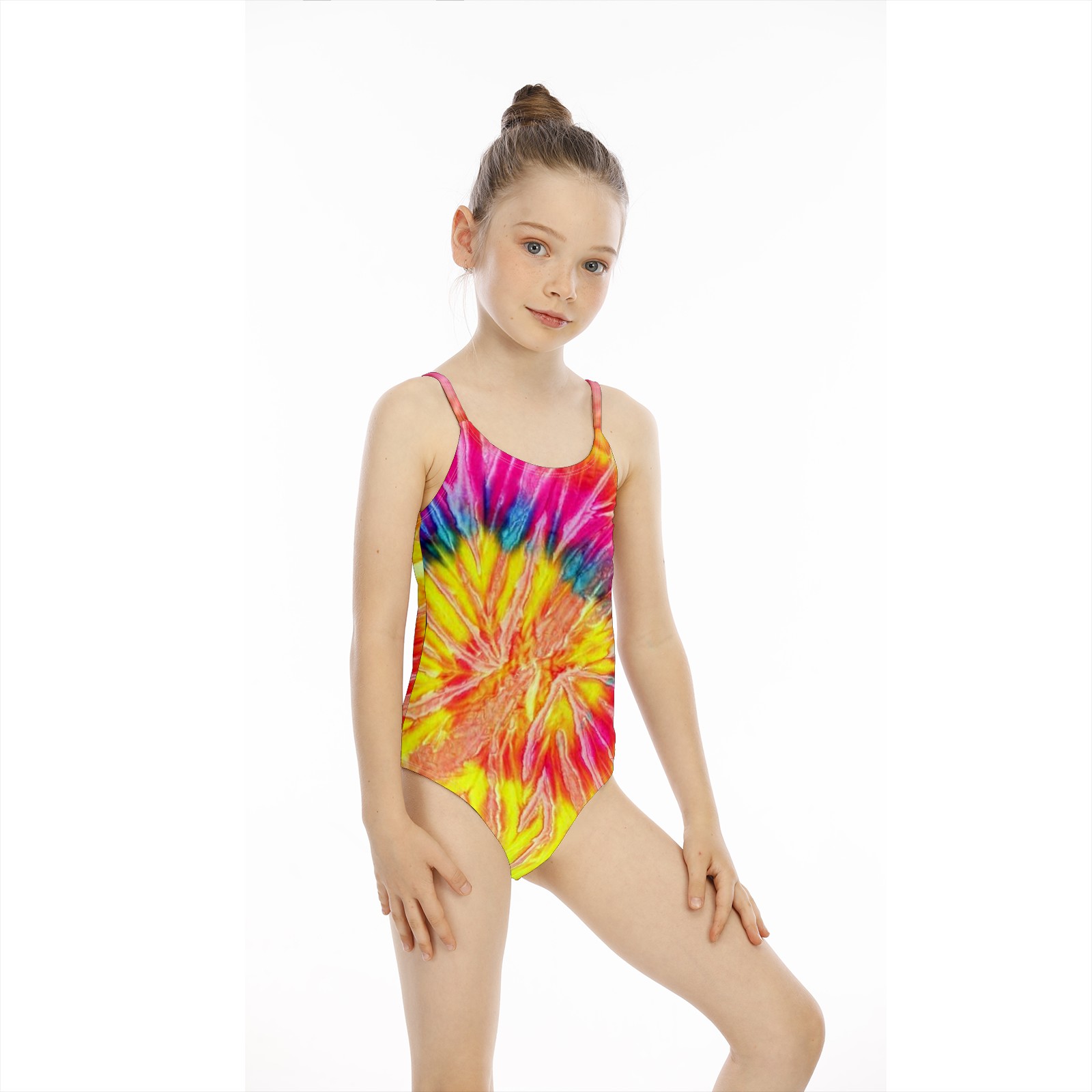 Girls Swimsuits One-Piece Tie Dye Colorful Beach Swimwear Summer Bathing Suit