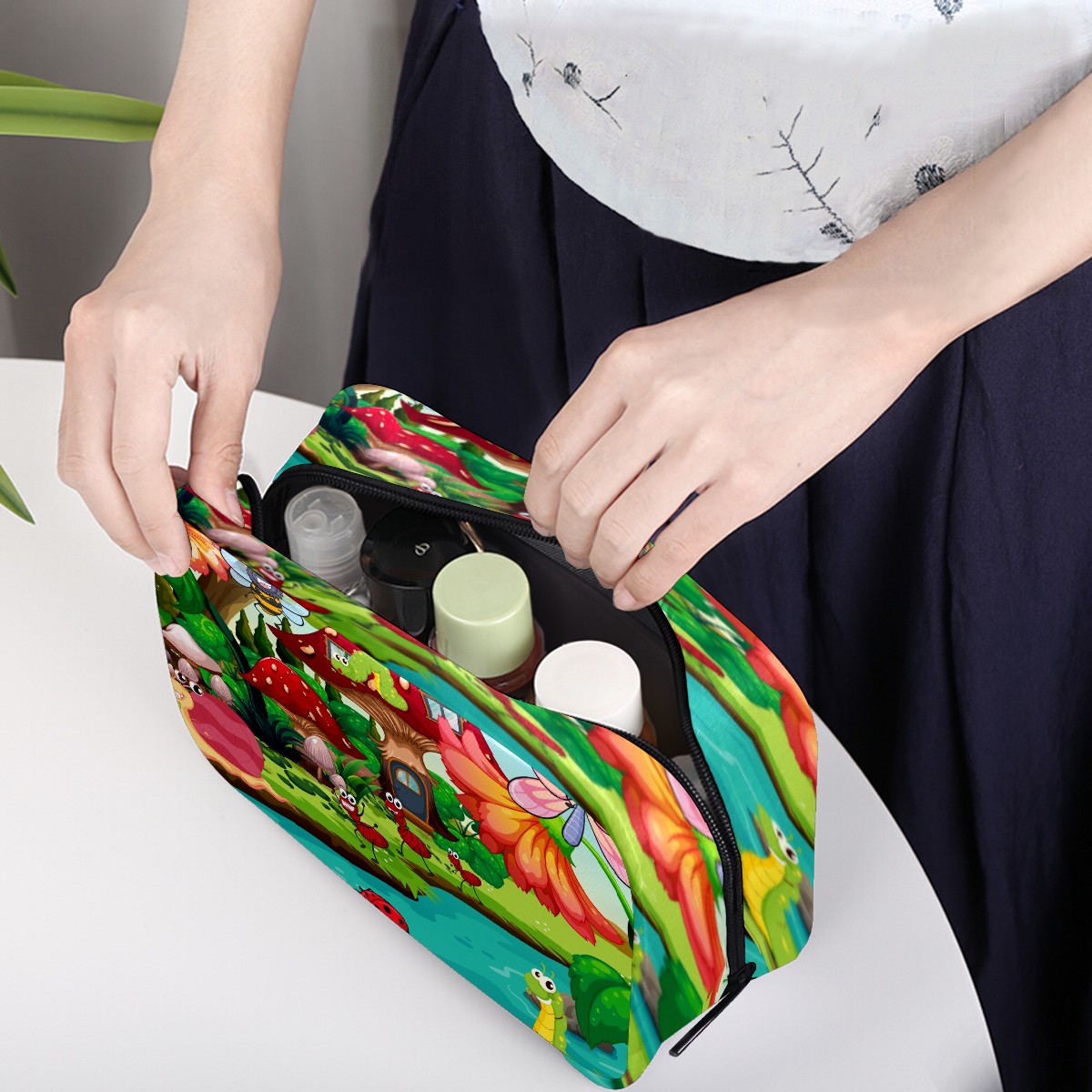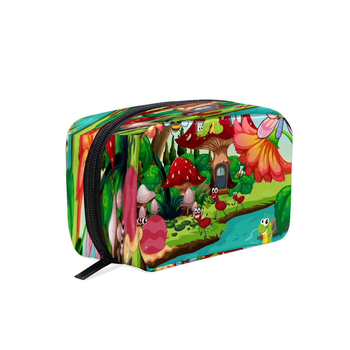 Cosmetic Bag for Women Girls Trave Makeup Bag Toiletry Case Pouch Accessories Organizer Cartoon Forest Mushrrom Insect Ladybird Bee Butterfly