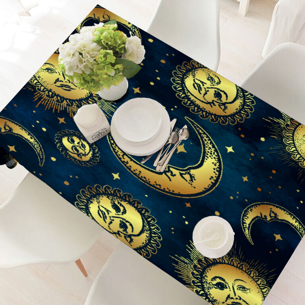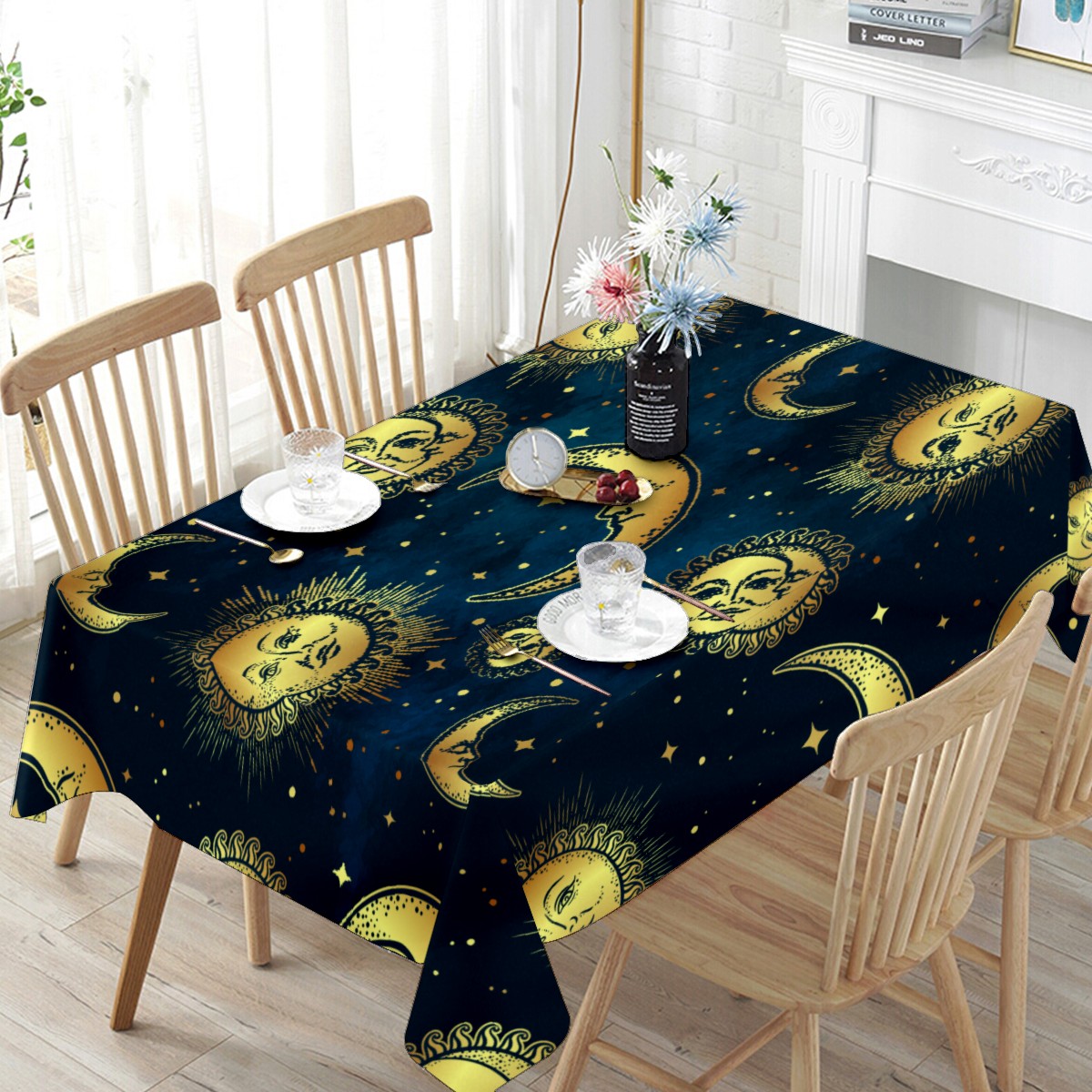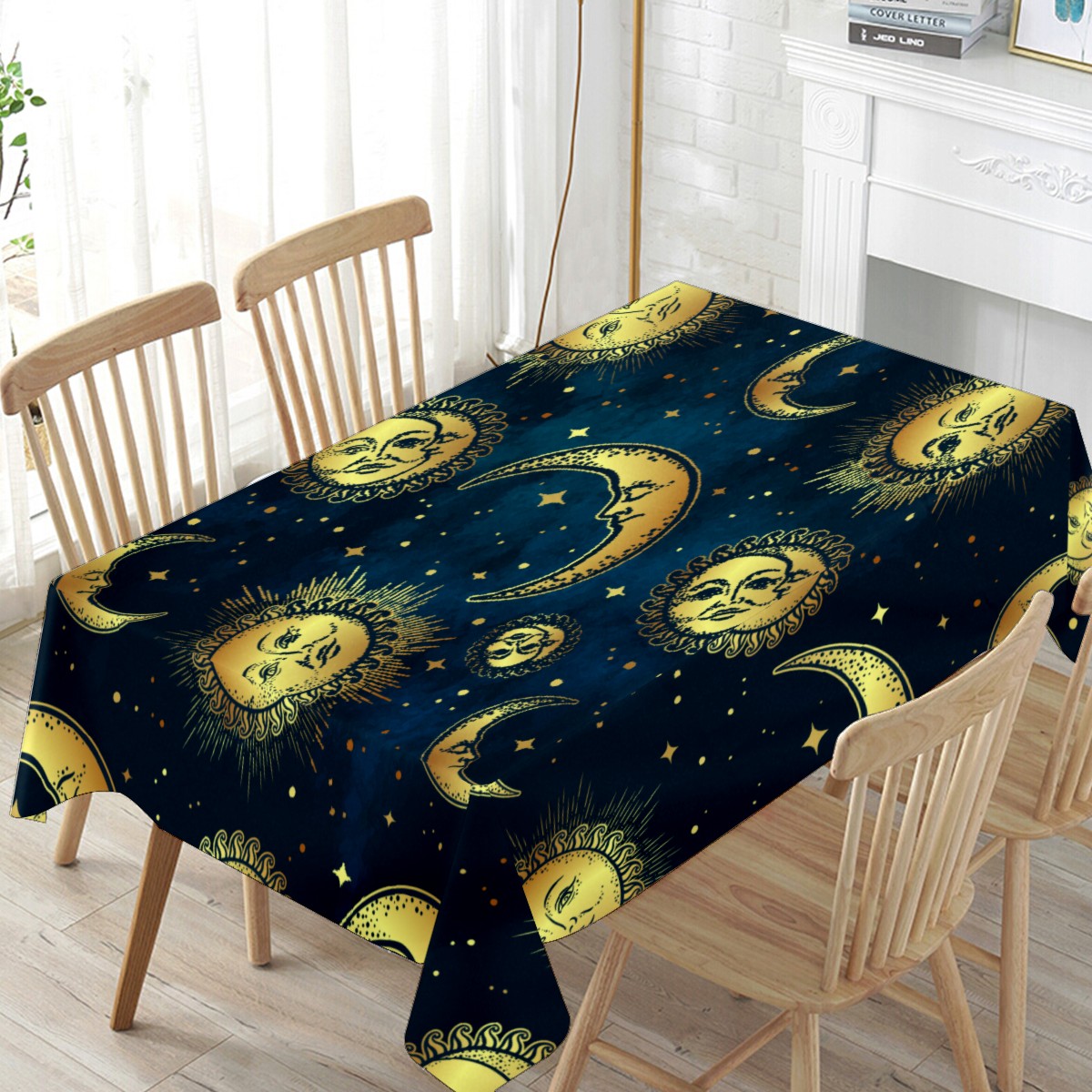 Rectangle Tablecloth Vintage Golden Gypsy Sun Moon Table Cloth 54x54in Table Cover for Kitchen Dining Table Party Home Decoration Washable Table Runner