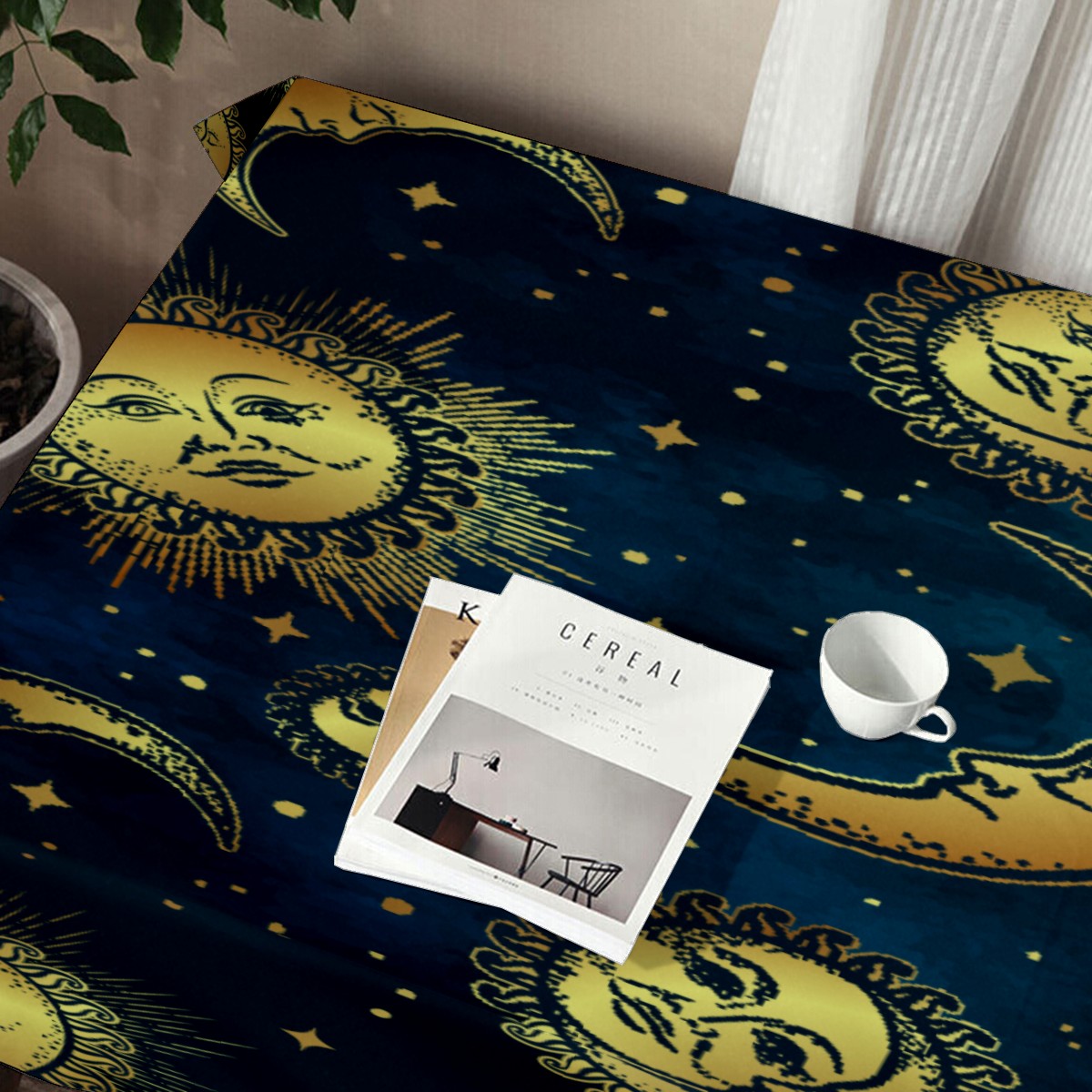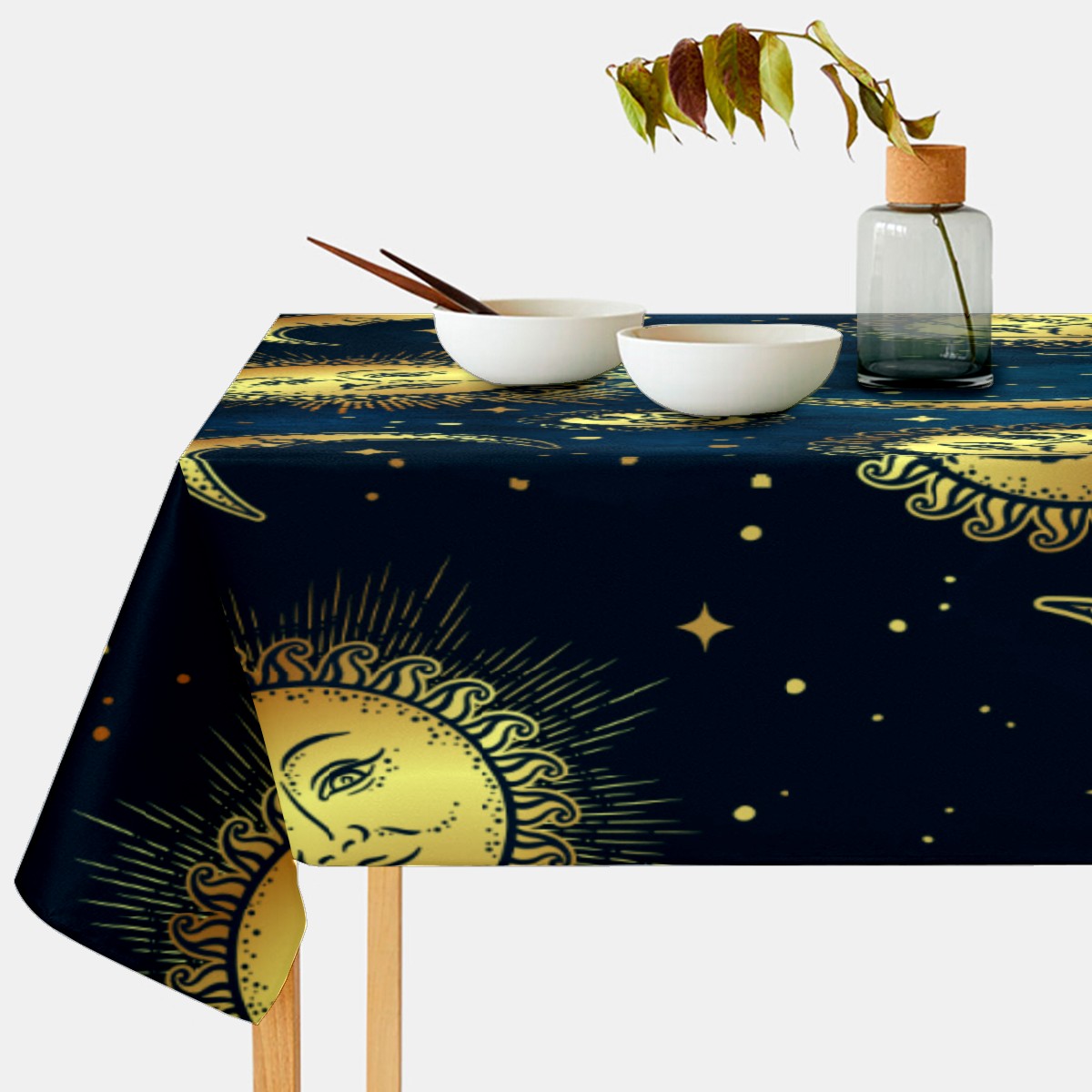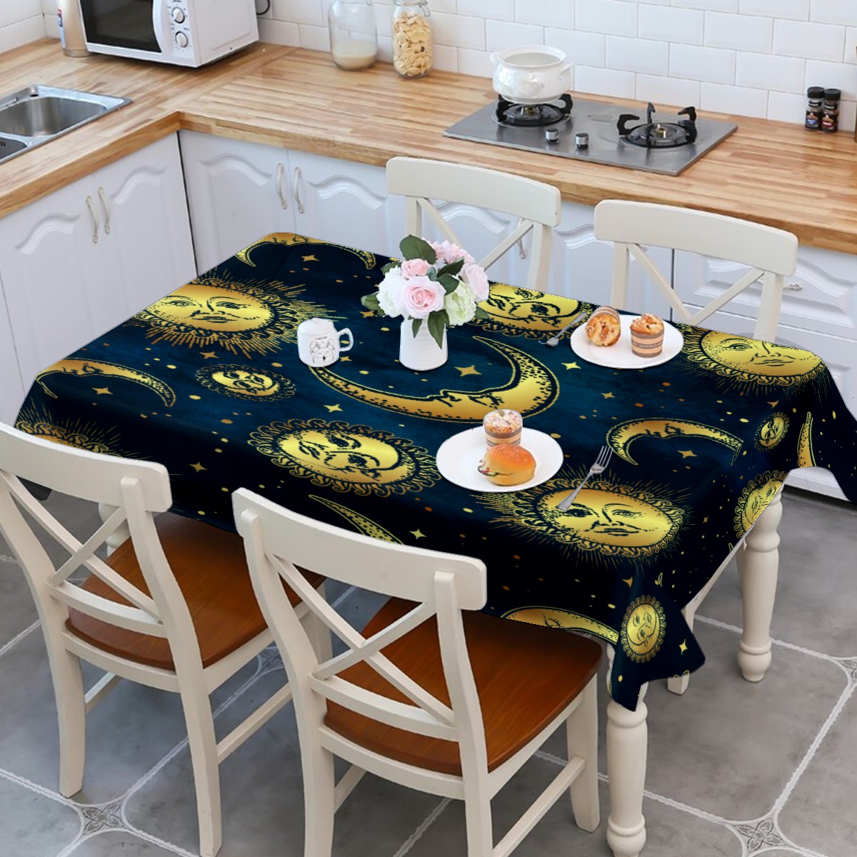 Rectangle Tablecloth Vintage Golden Gypsy Sun Moon Table Cloth 54x54in Table Cover for Kitchen Dining Table Party Home Decoration Washable Table Runner