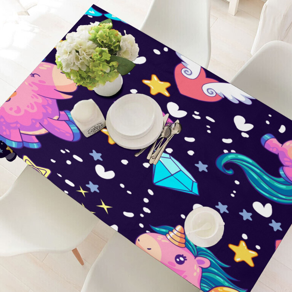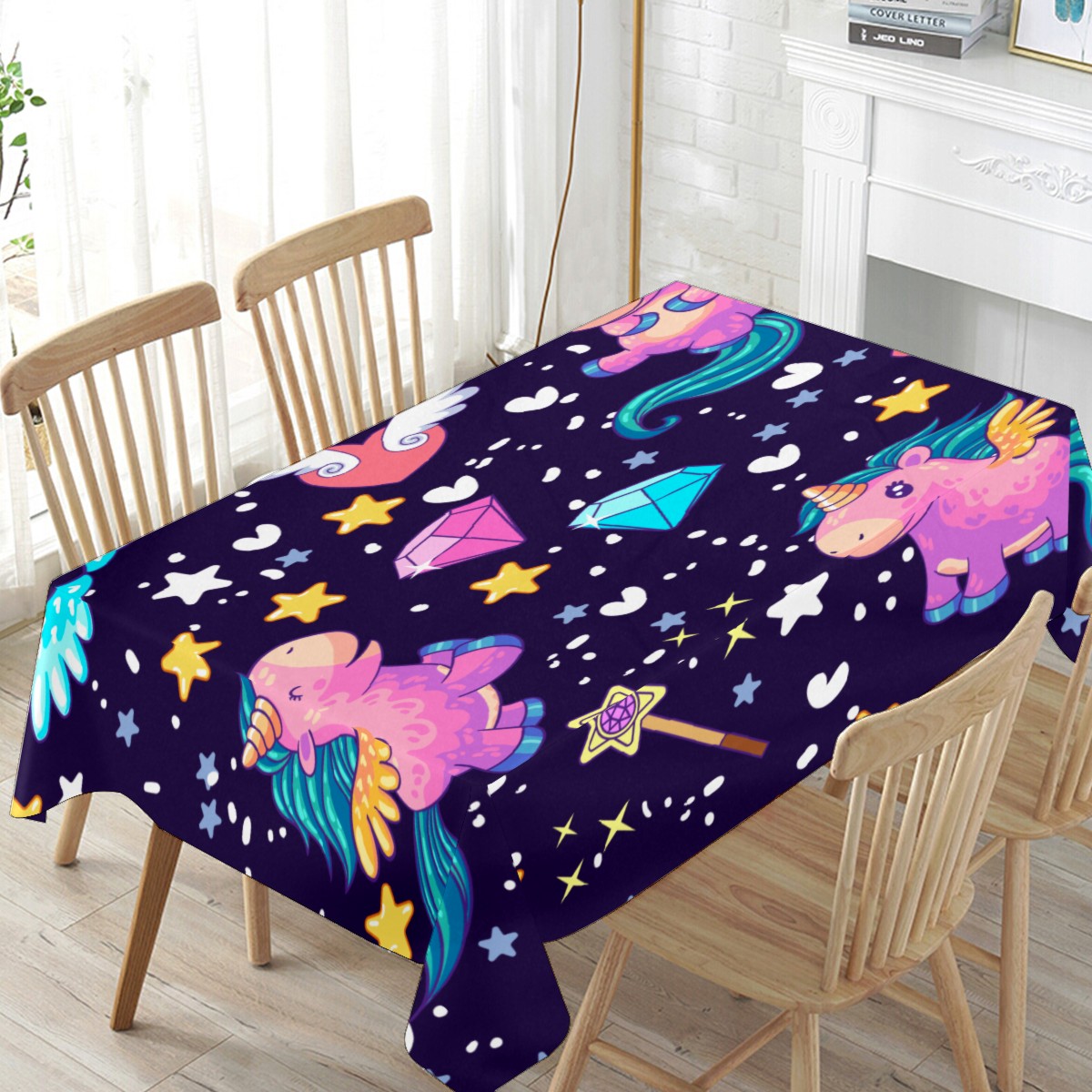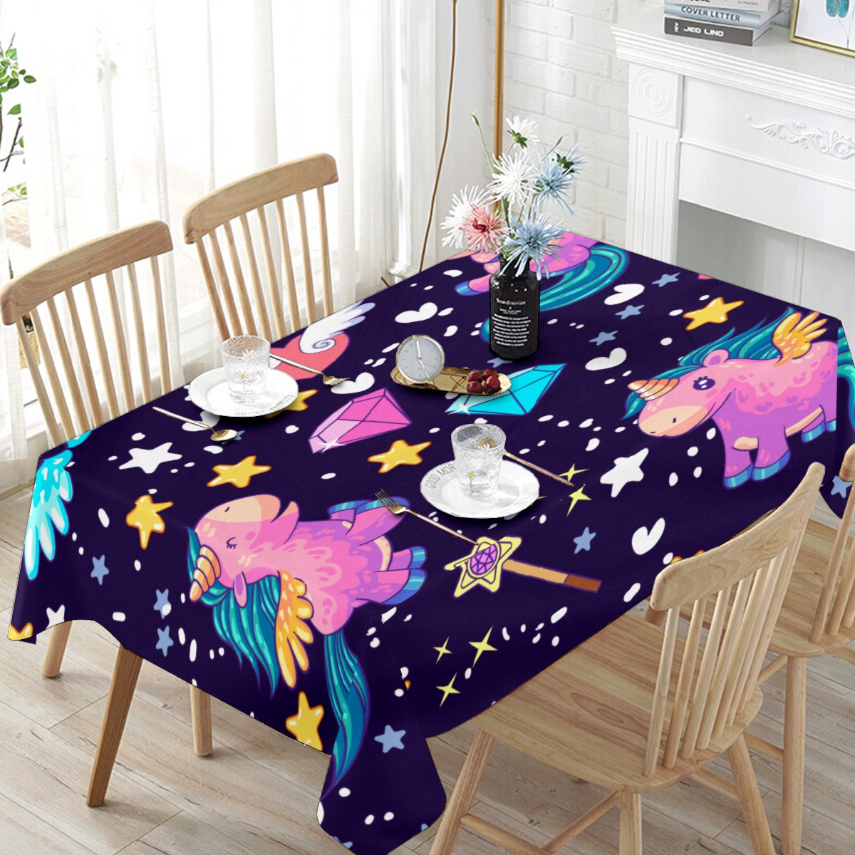 Rectangle Tablecloth Rainbow Unicorn Star Wing Diamond Table Cloth 54x54in Table Cover for Kitchen Dining Table Party Home Decoration Washable Table Runner