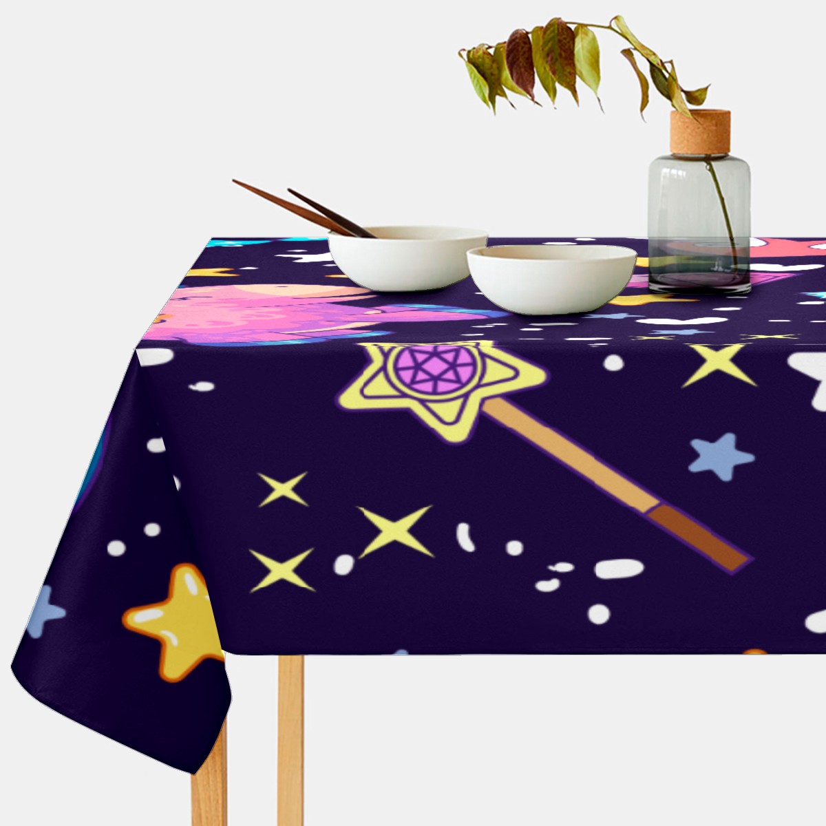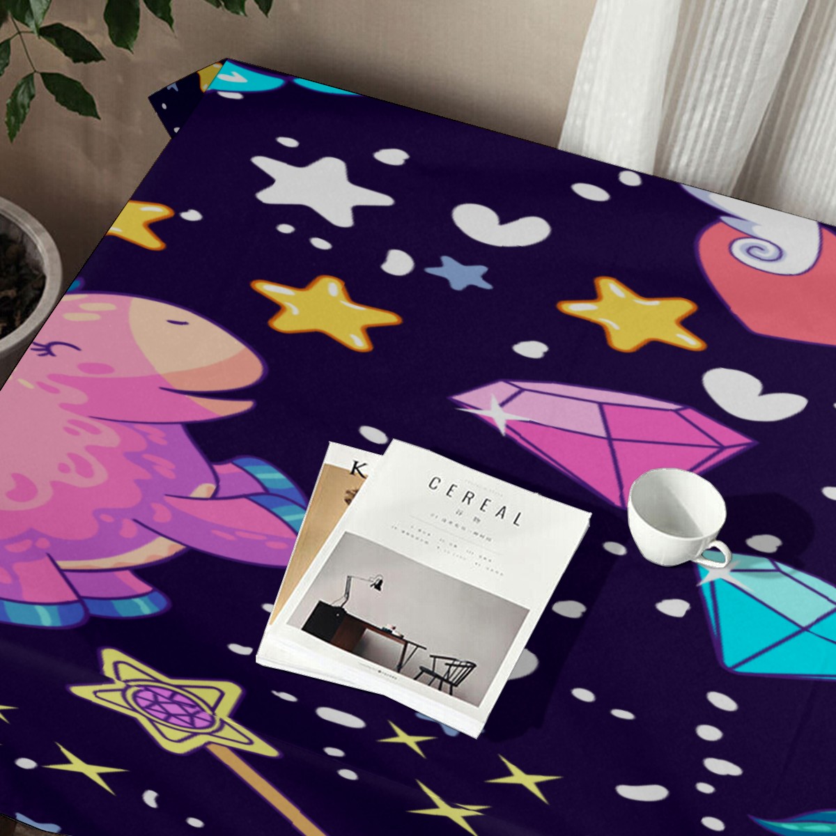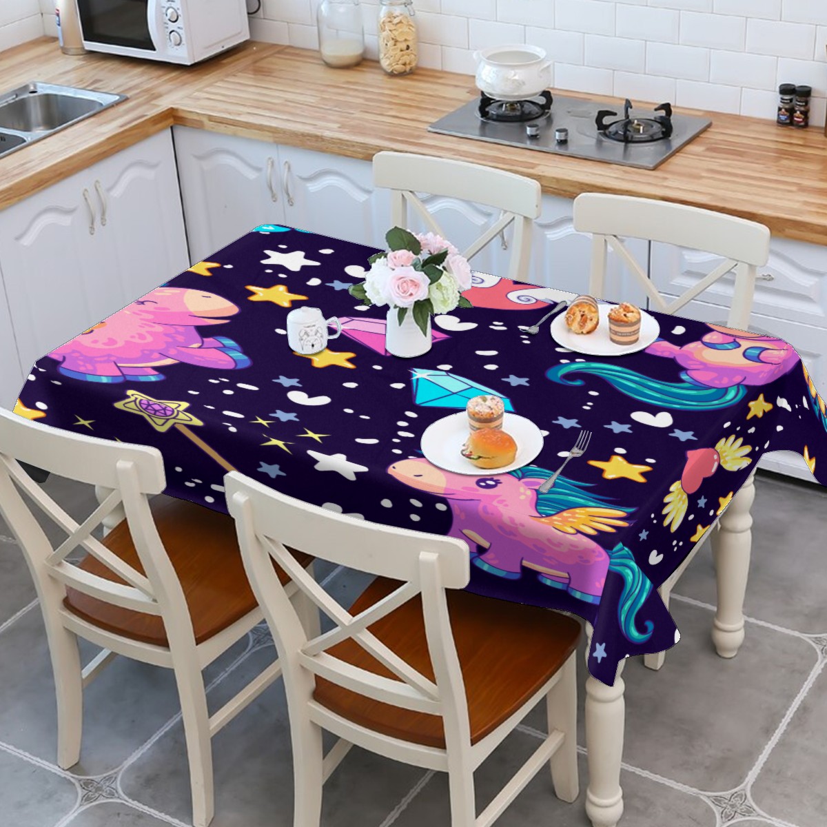 Rectangle Tablecloth Rainbow Unicorn Star Wing Diamond Table Cloth 54x54in Table Cover for Kitchen Dining Table Party Home Decoration Washable Table Runner