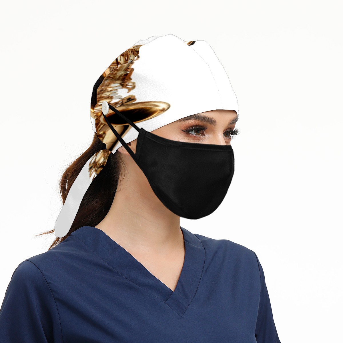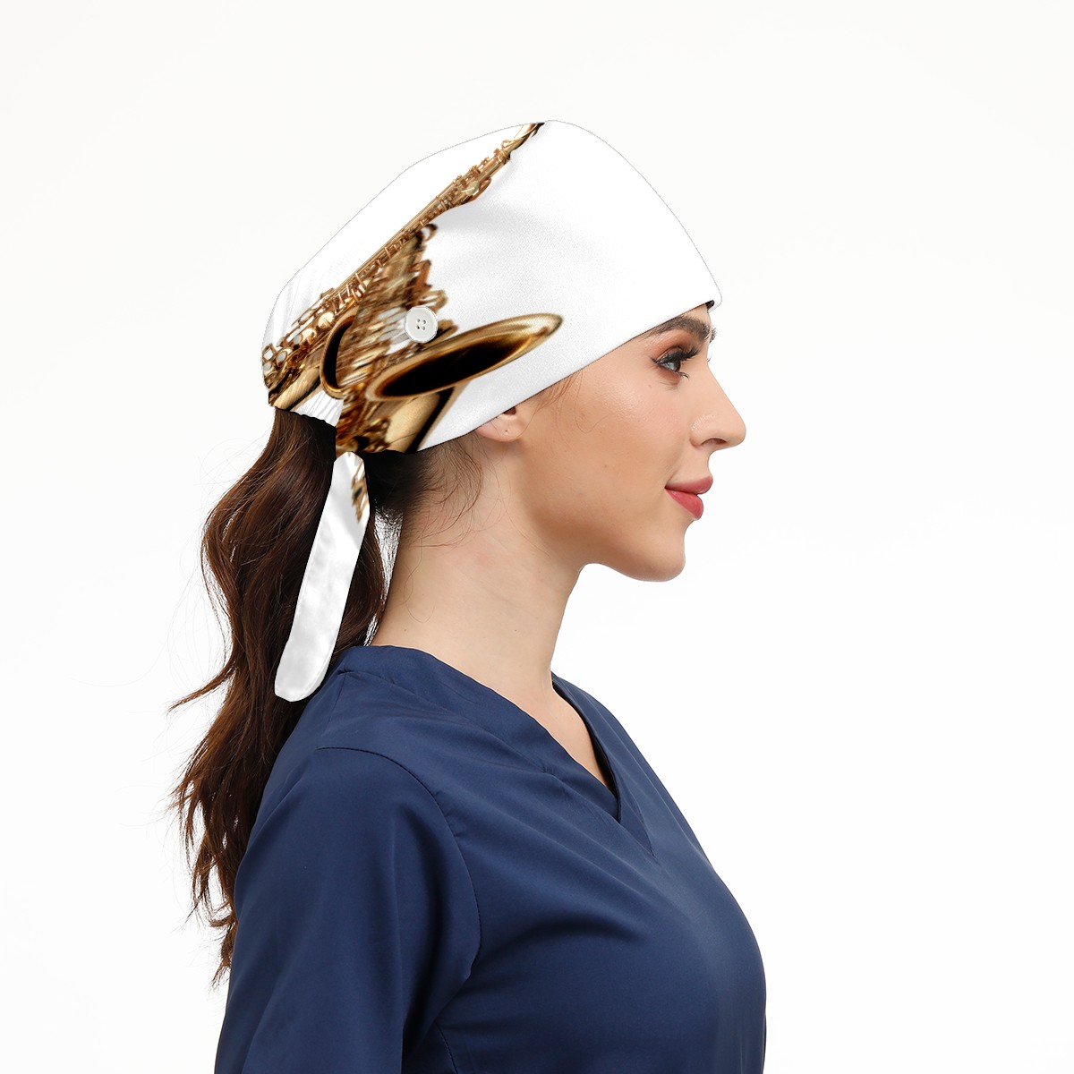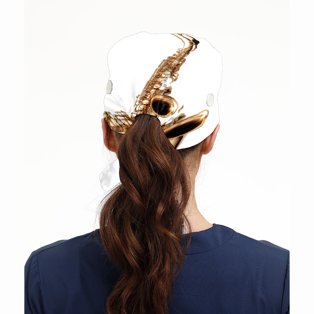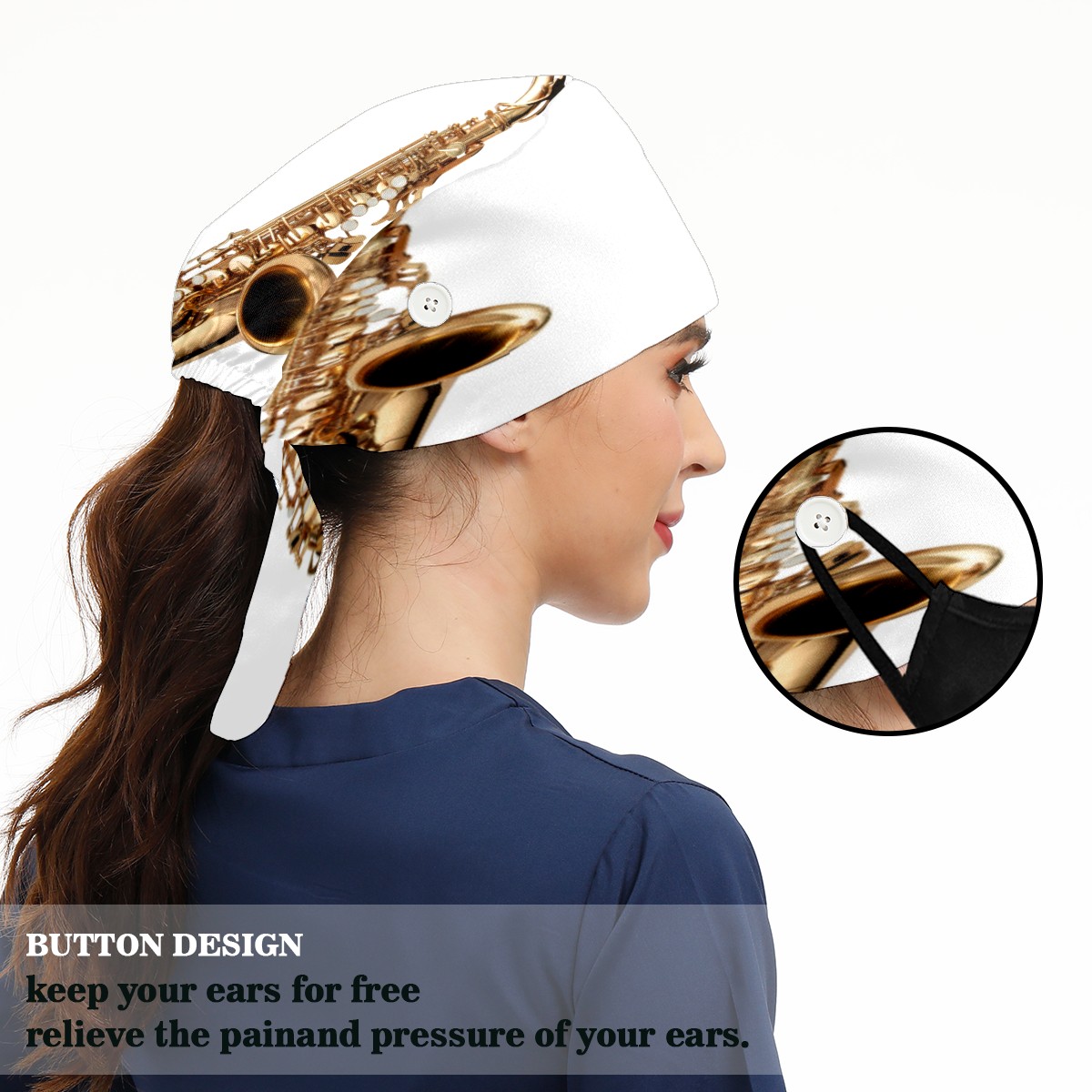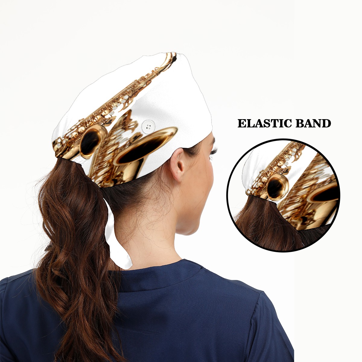 Golden Saxophone Working Cap Button and Sweatband Adjustable Elastic Head Cover Hair Tie Back Work Hats for Women Men