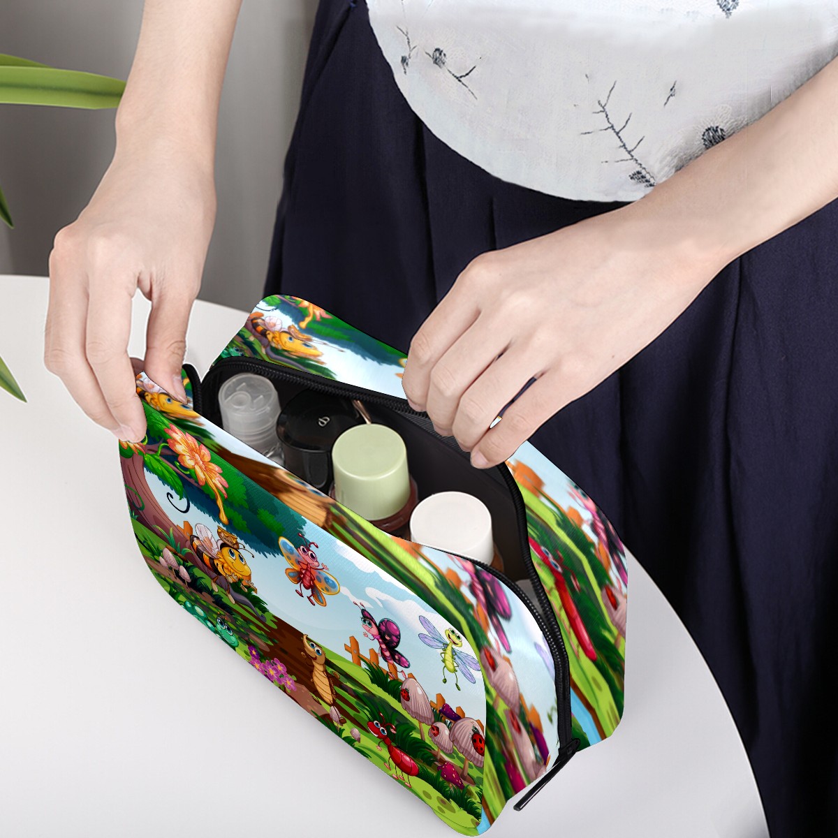 Cosmetic Bag for Women Girls Trave Makeup Bag Toiletry Case Pouch Accessories Organizer Cartoon Animal Insect Bee Butterfly Ladybird