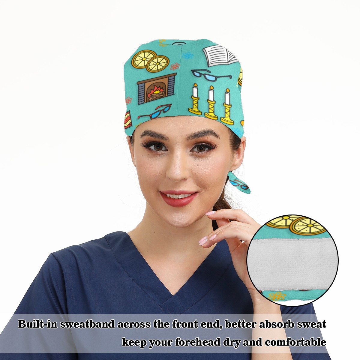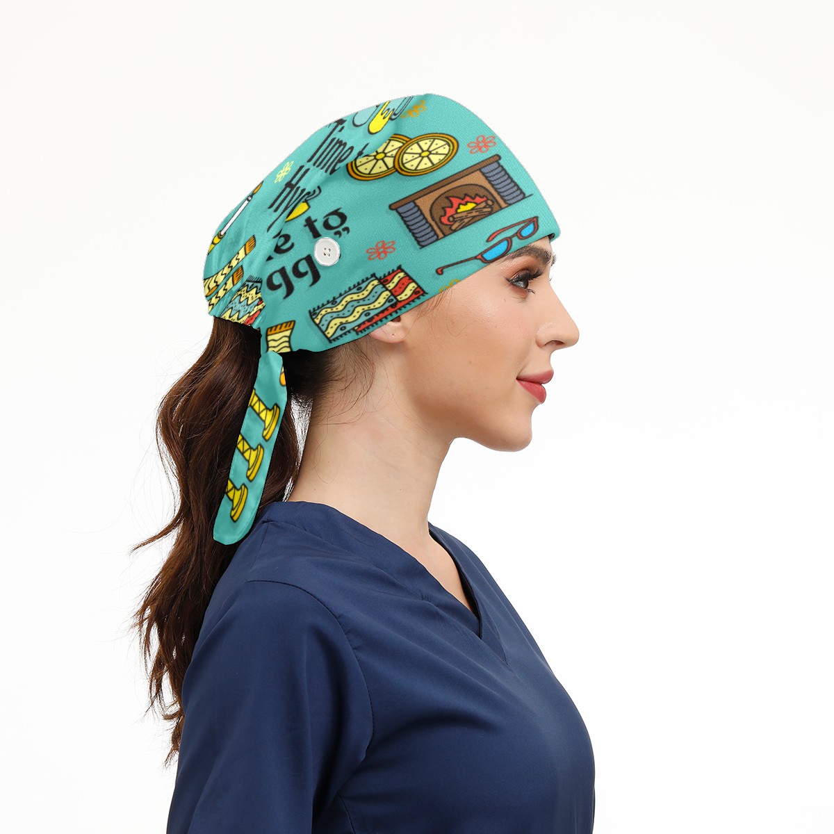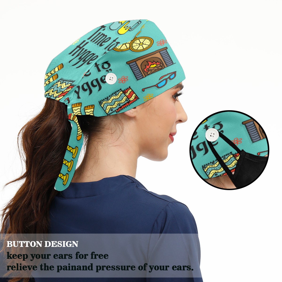 <p>Working cap with Sweatband and Button for Women Men</p><p>Material : 50% cotton+50% polyester</p><p>Size: One size fits most, suitable for both men and women.</p><p>Working Cap with Buttons Design:special design with buttons to protect ears for those who are wearing ma-sk. These new styles hats will allow you to put the straps around the buttons instead of your ears, make you feel more comfortable.</p><p>Sweat-absorbent towel cloth inside: Built-in 100% cotton sweatband, keep the forehead clean after long time working.</p><p>Widely occasion: Widely used in beauty spa, house cleaning, cooking, sleeping, or for cos-play party.</p><p>Lovely pattern: lovely 3D printed pattern, it's perfect for gift to you family and friends.</p>