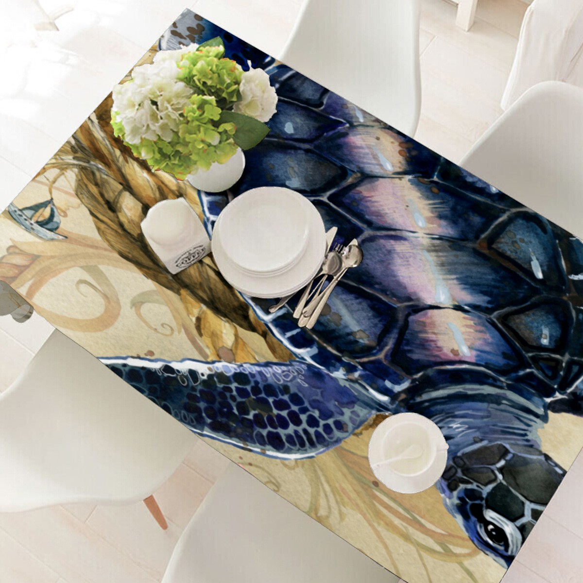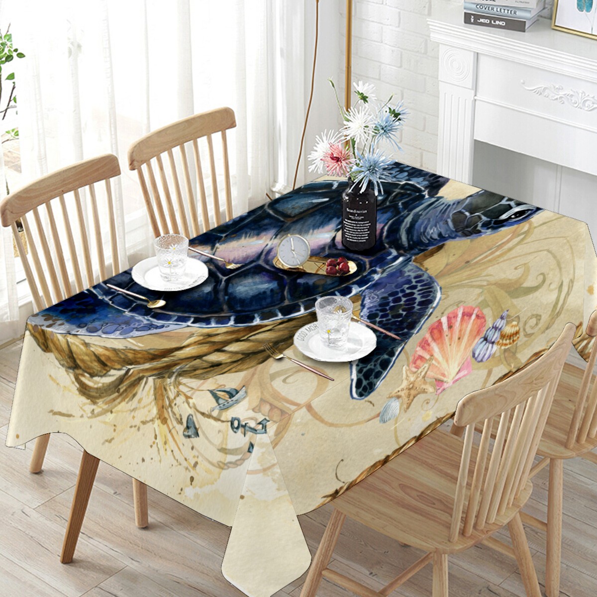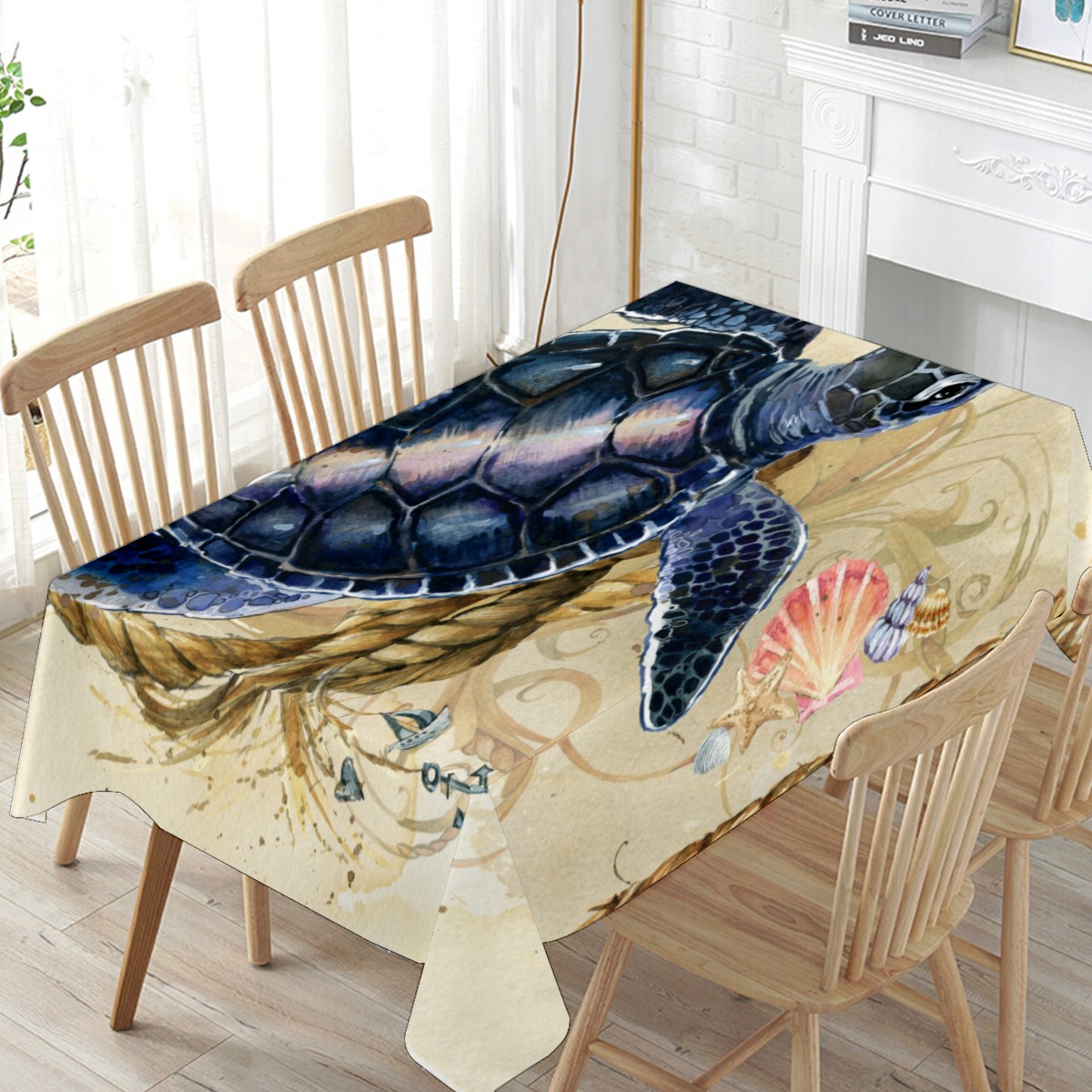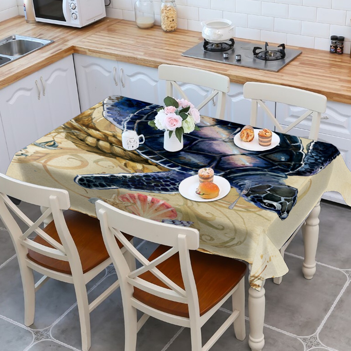 Rectangle Tablecloth Turtle Beach Summer Nautical Table Cloth 54x54in Table Cover for Kitchen Dining Table Party Home Decoration Washable Table Runner