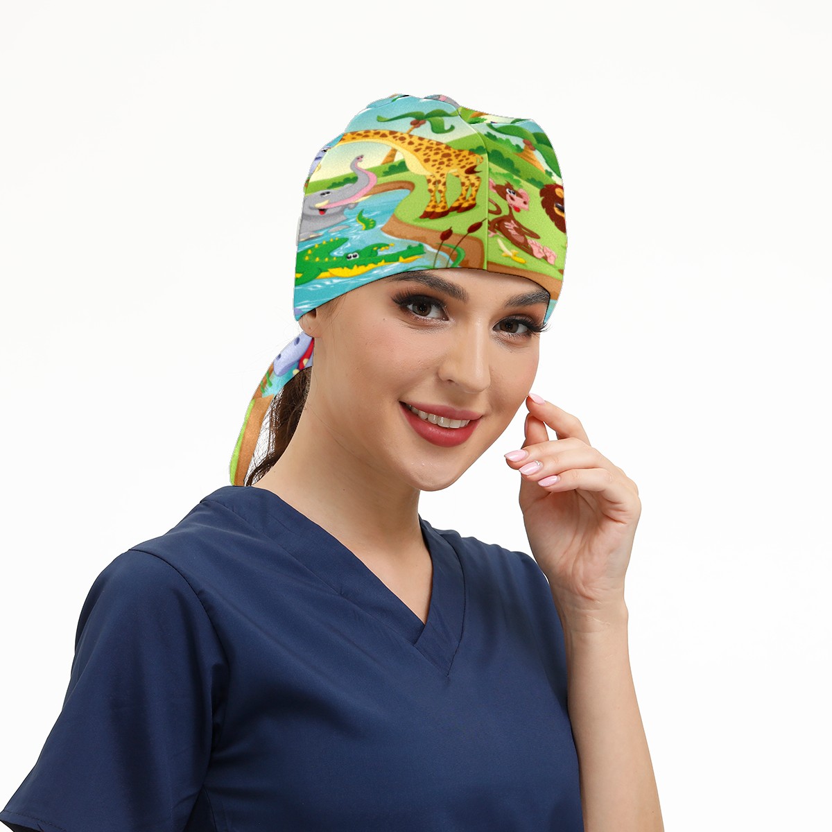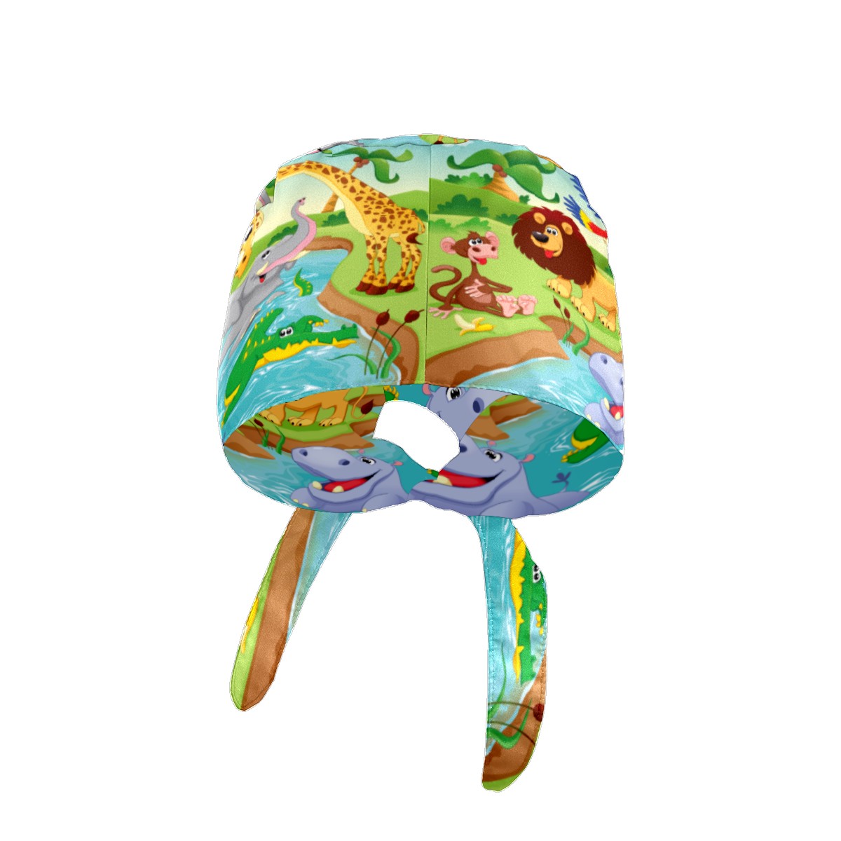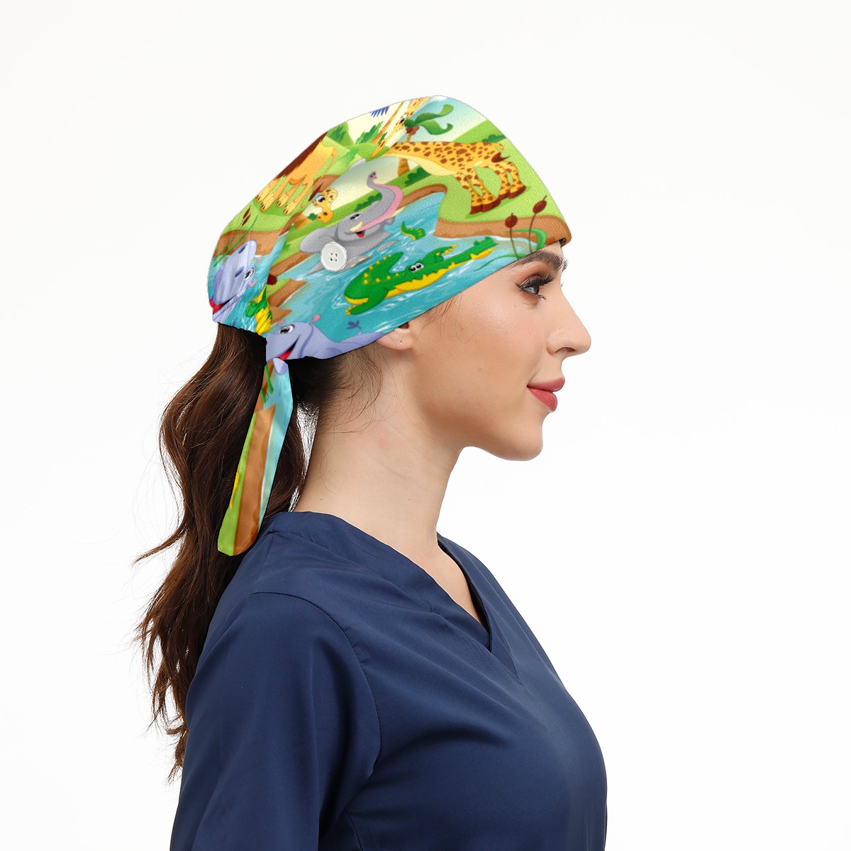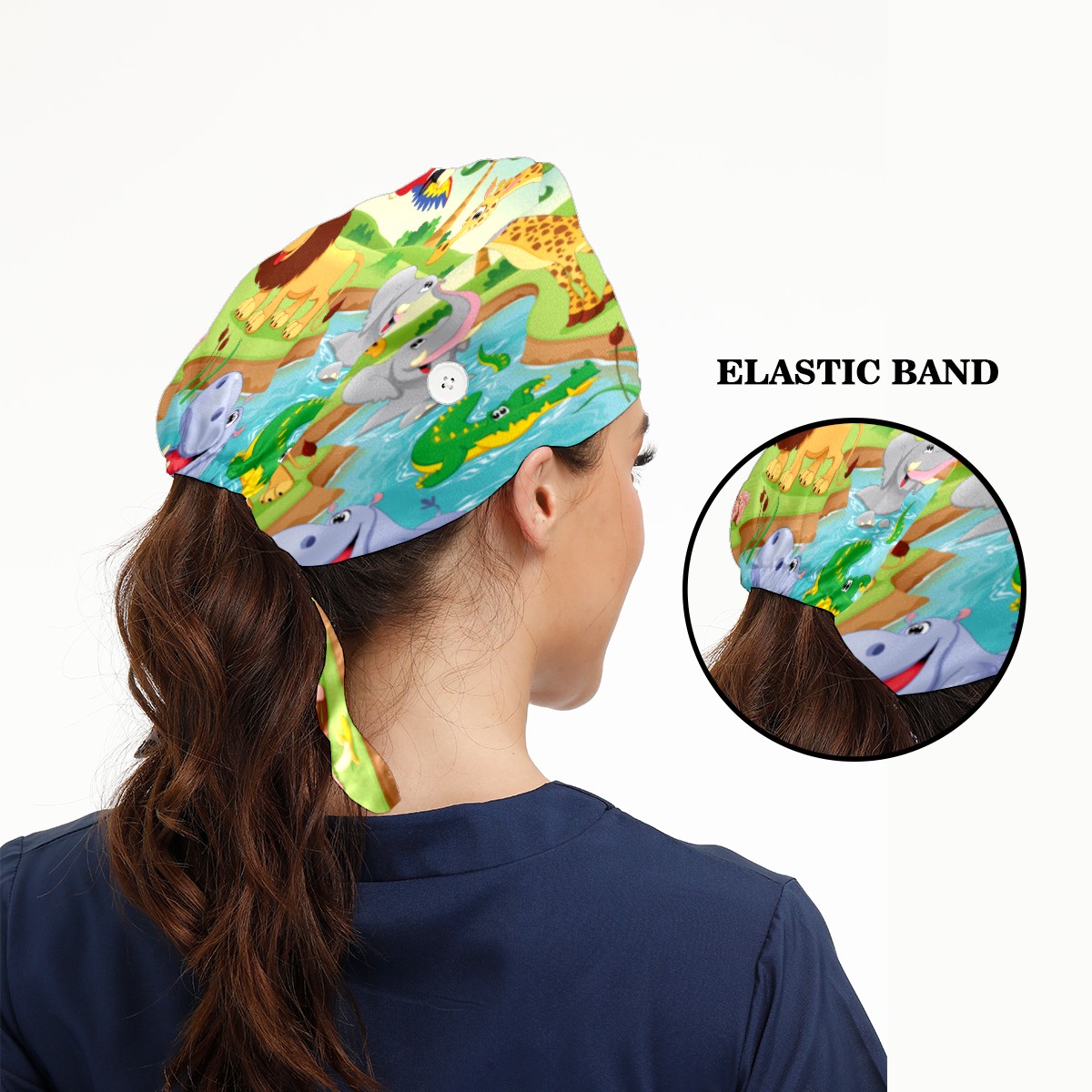 Giraffe Hippo Crocodile Lion Working Cap Button and Sweatband Adjustable Elastic Head Cover Hair Tie Back Work Hats for Women Men