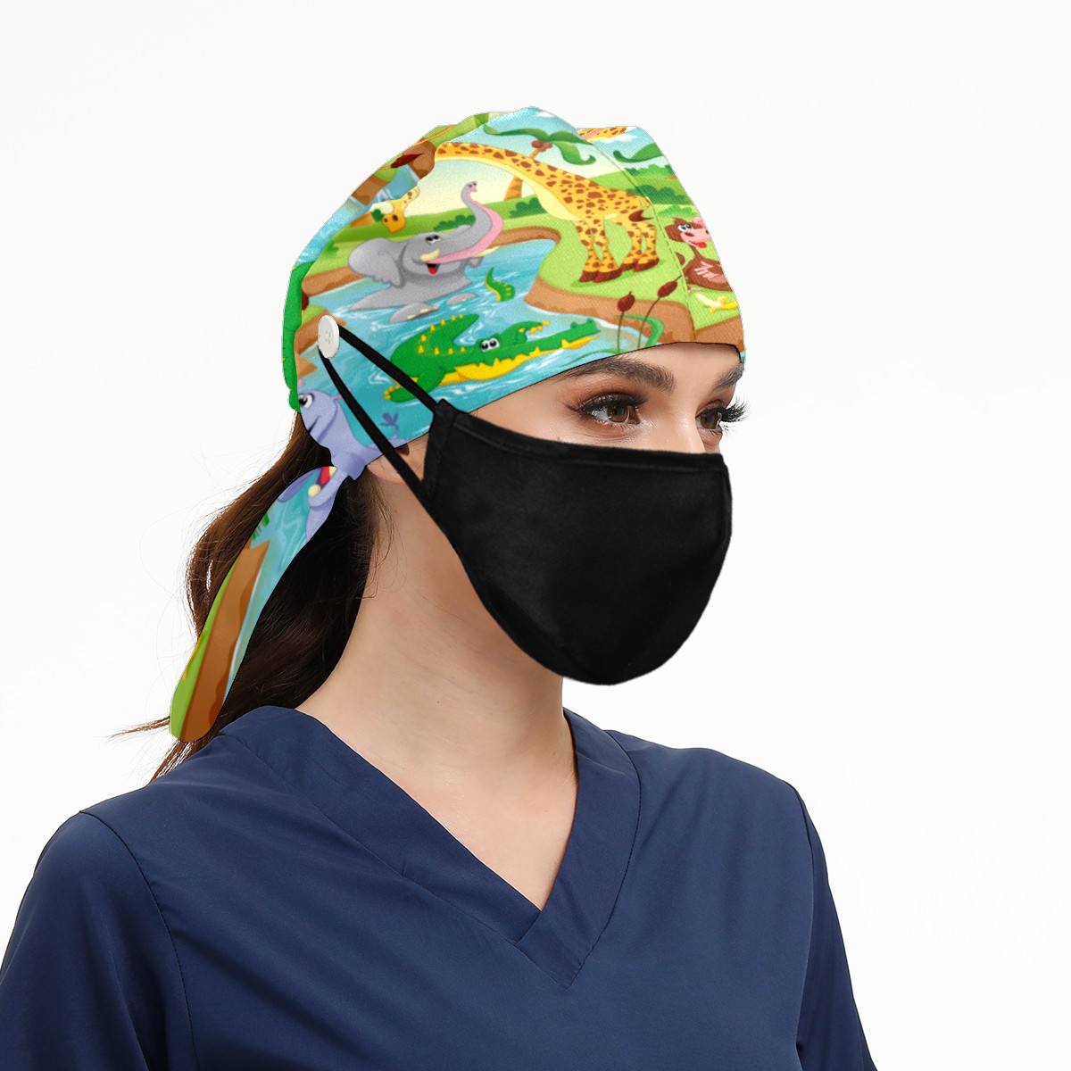 <p>Working cap with Sweatband and Button for Women Men</p><p>Material&nbsp;: 50% cotton+50% polyester</p><p>Size:&nbsp;One size fits most,&nbsp;suitable for both men and women.</p><p>Working Cap with Buttons Design:special&nbsp;design with buttons to protect ears for those who are wearing ma-sk. These new styles hats will allow you to put the straps around the buttons instead of your ears, make you feel more comfortable.</p><p>Sweat-absorbent towel cloth inside: Built-in&nbsp;100% cotton sweatband, keep the forehead clean after long time working.</p><p>Widely occasion: Widely used in beauty spa, house cleaning, cooking, sleeping, or for cos-play&nbsp;party.</p><p>Lovely pattern: lovely&nbsp;3D printed&nbsp;pattern,&nbsp;it's perfect for gift to you family&nbsp;and friends.</p>