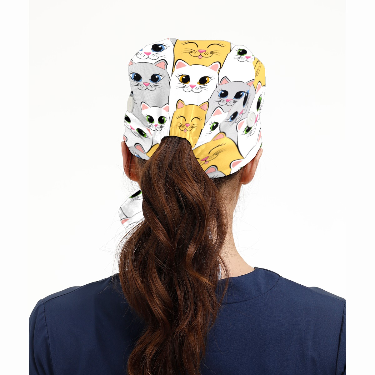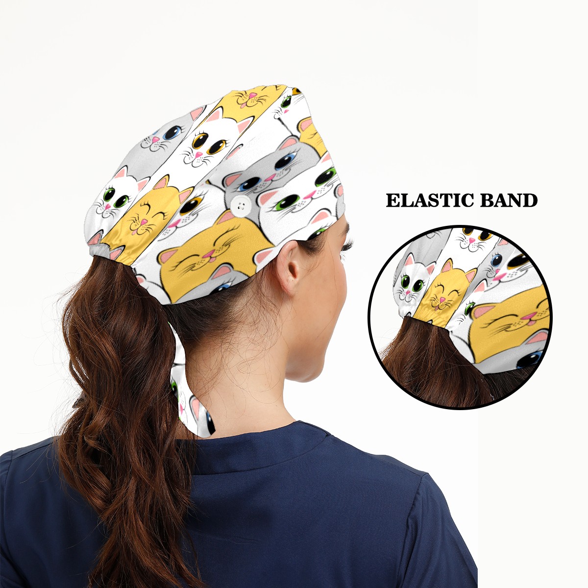 Cute Funny Cats Kitty Working Cap Button and Sweatband Adjustable Elastic Head Cover Hair Tie Back Work Hats for Women Men