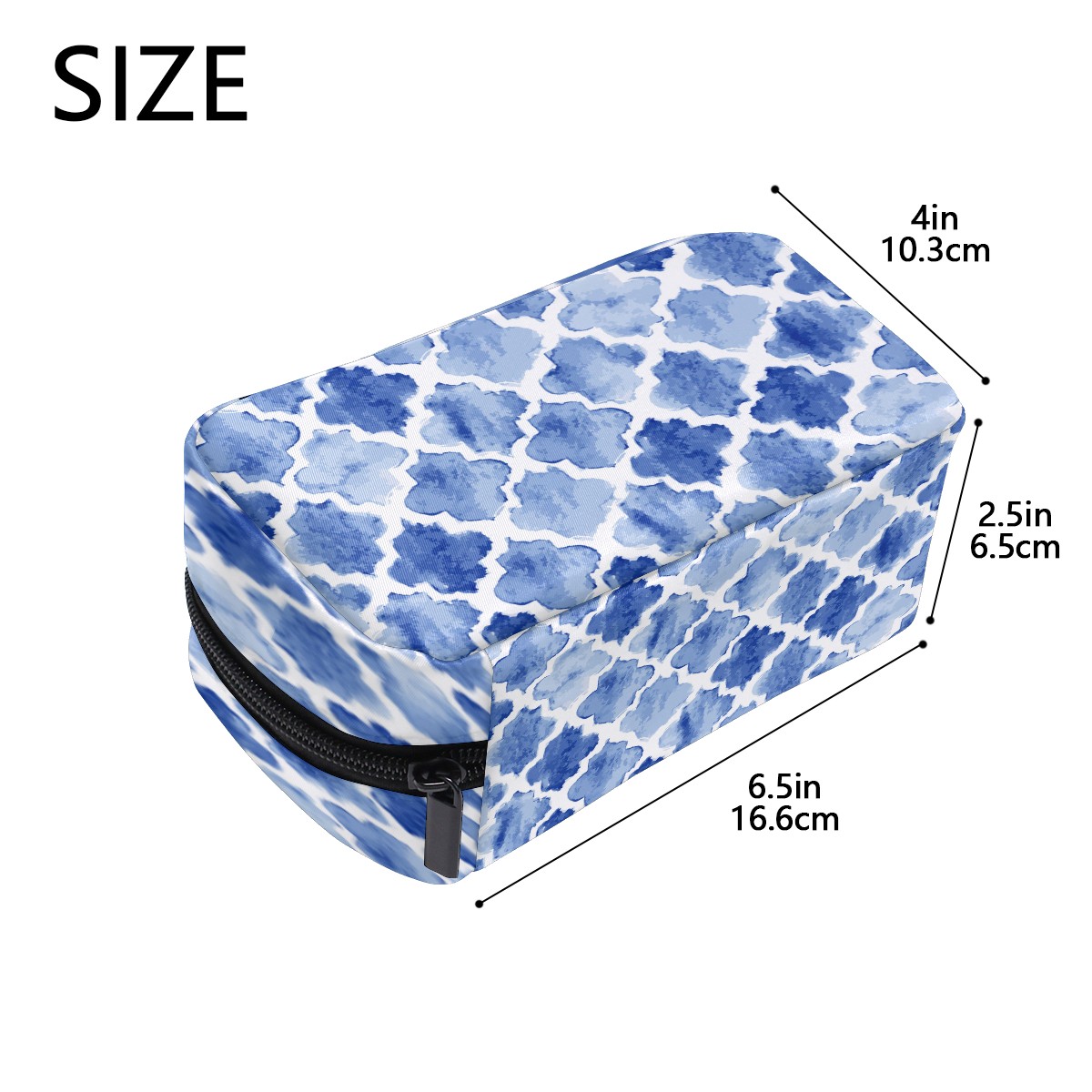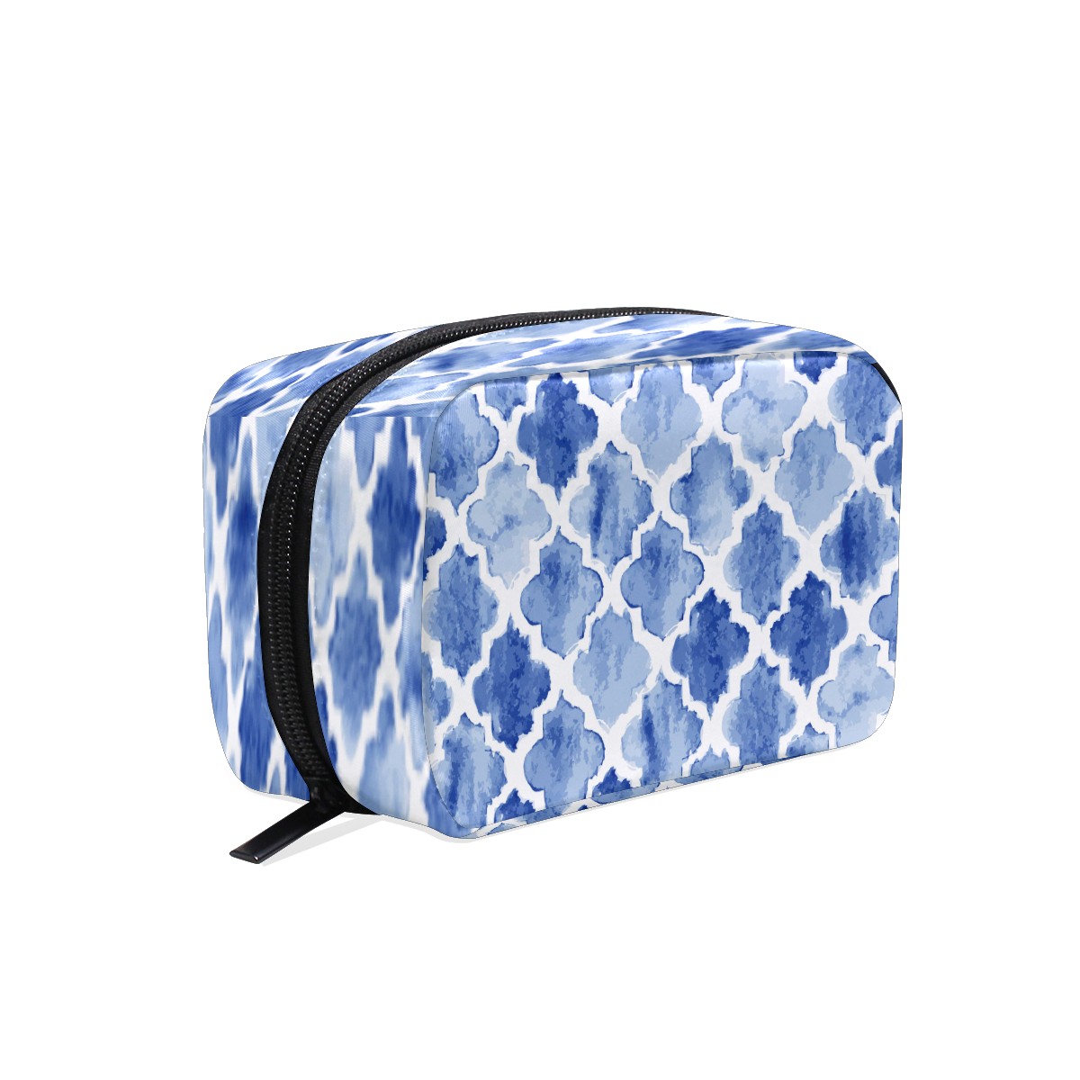 Cosmetic Bag for Women Girls Trave Makeup Bag Toiletry Case Pouch Accessories Organizer Blue Watercolor Moroccan Pattern