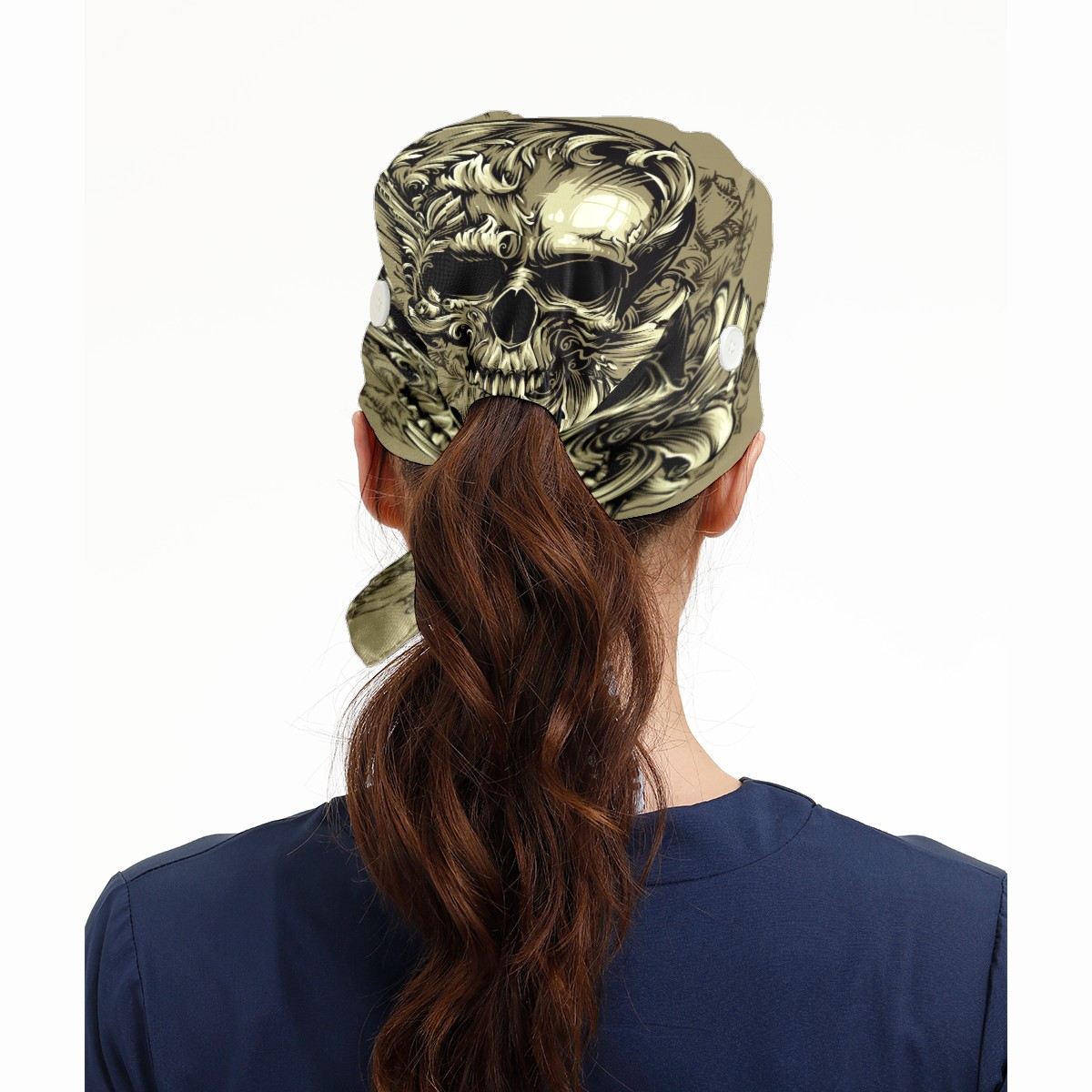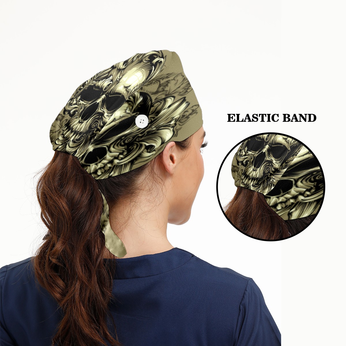 Vintage Punk Skull Head Working Cap Button and Sweatband Adjustable Elastic Head Cover Hair Tie Back Work Hats for Women Men
