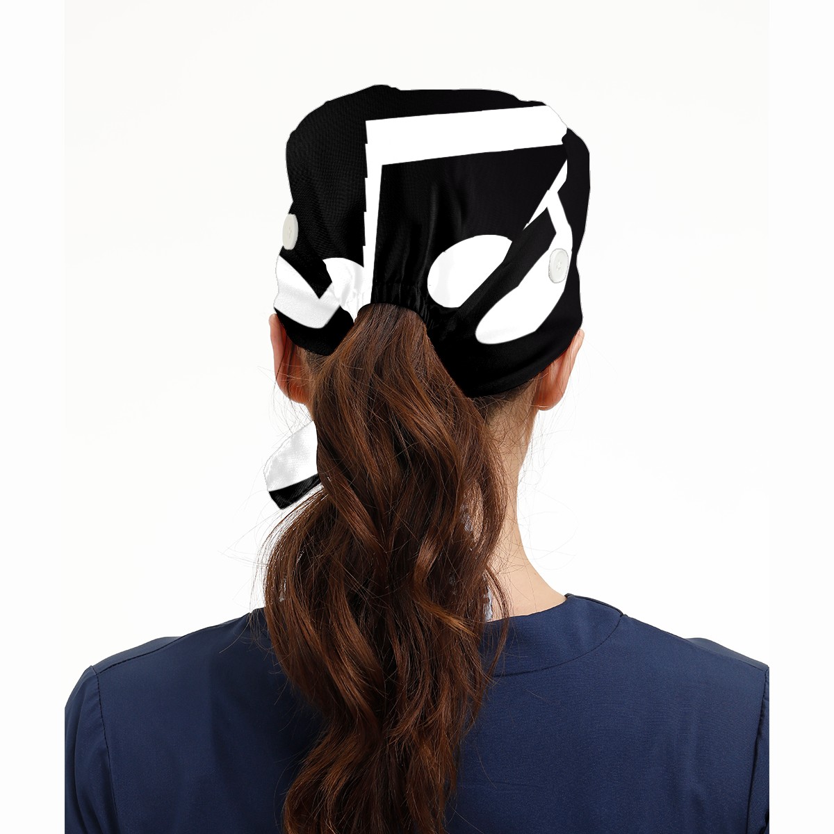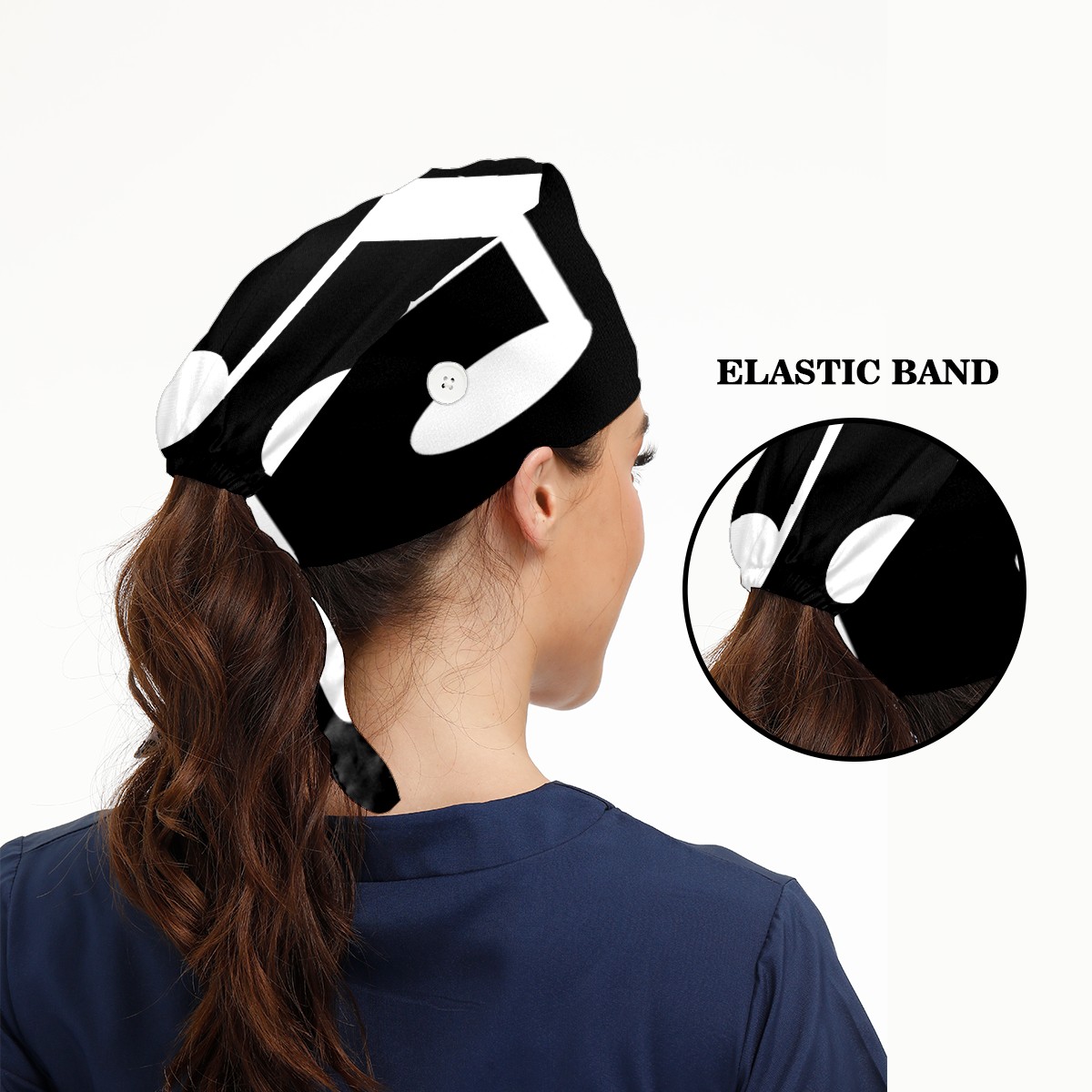 A Big Music Note On Black Background Working Cap Button and Sweatband Adjustable Elastic Head Cover Hair Tie Back Work Hats for Women Men