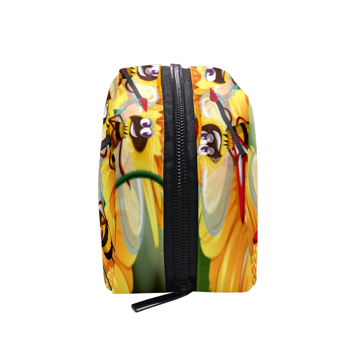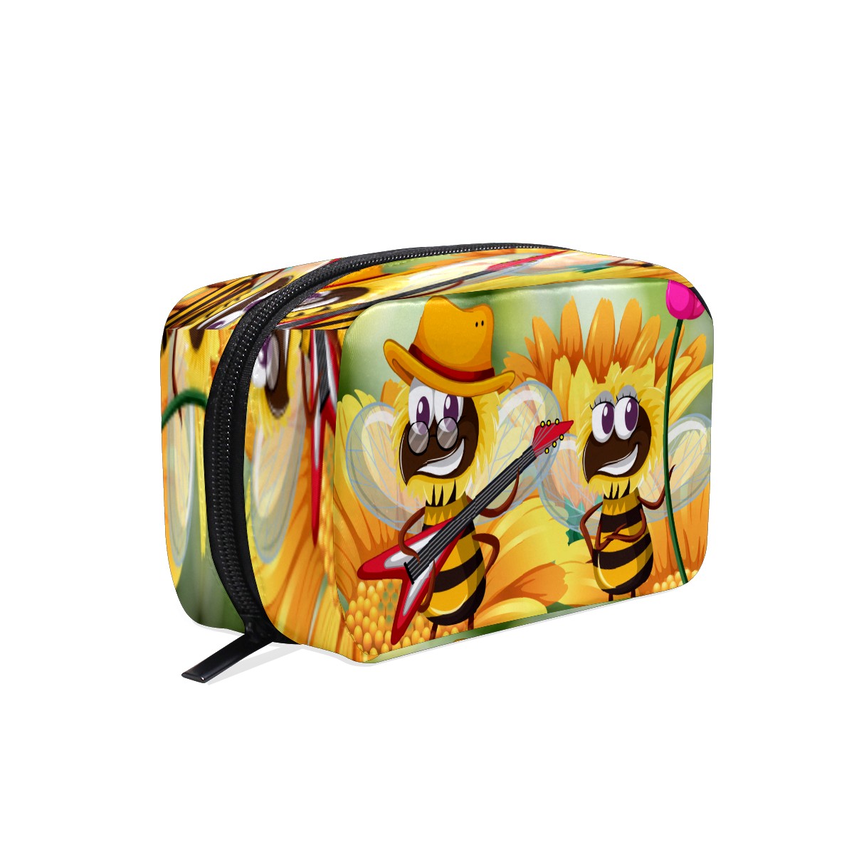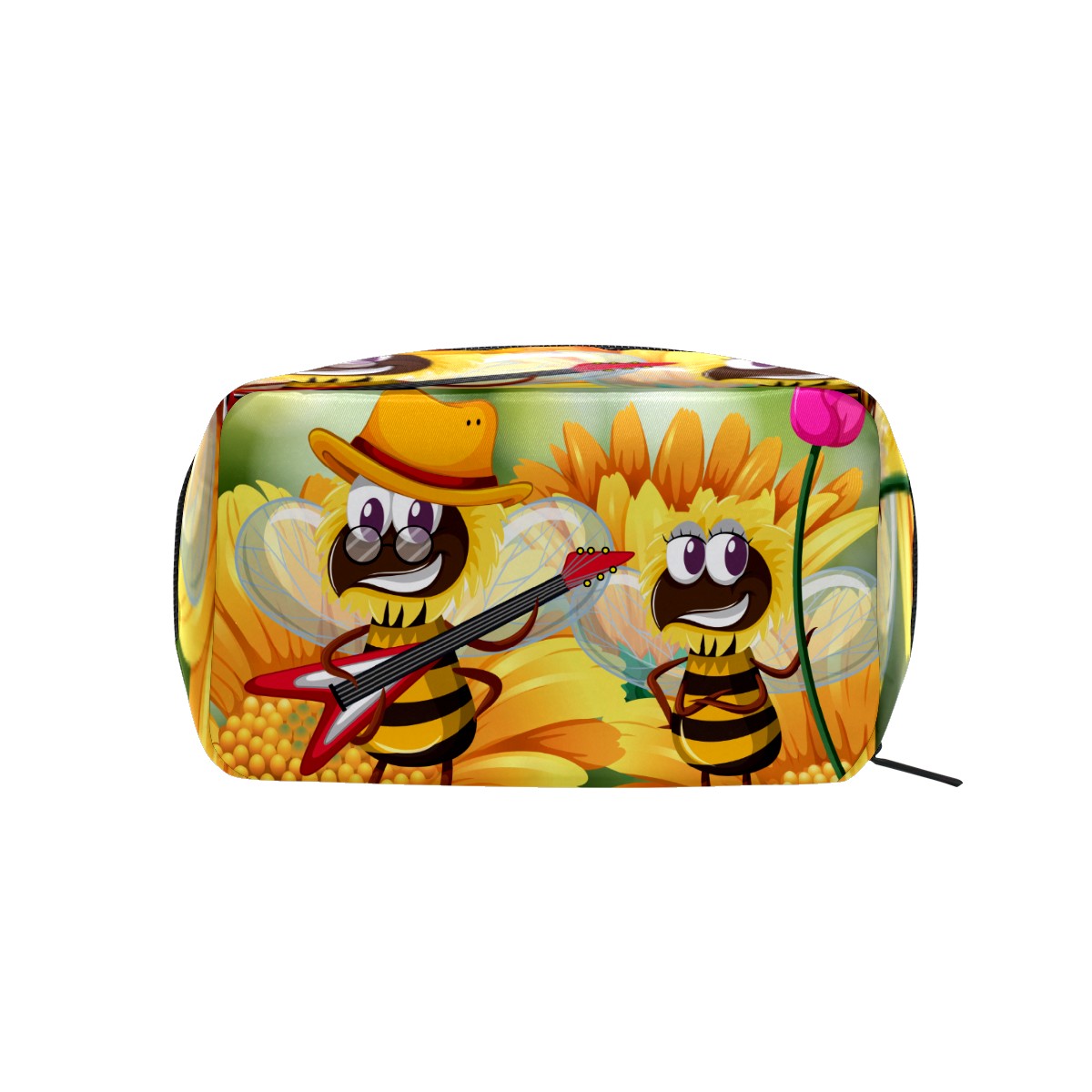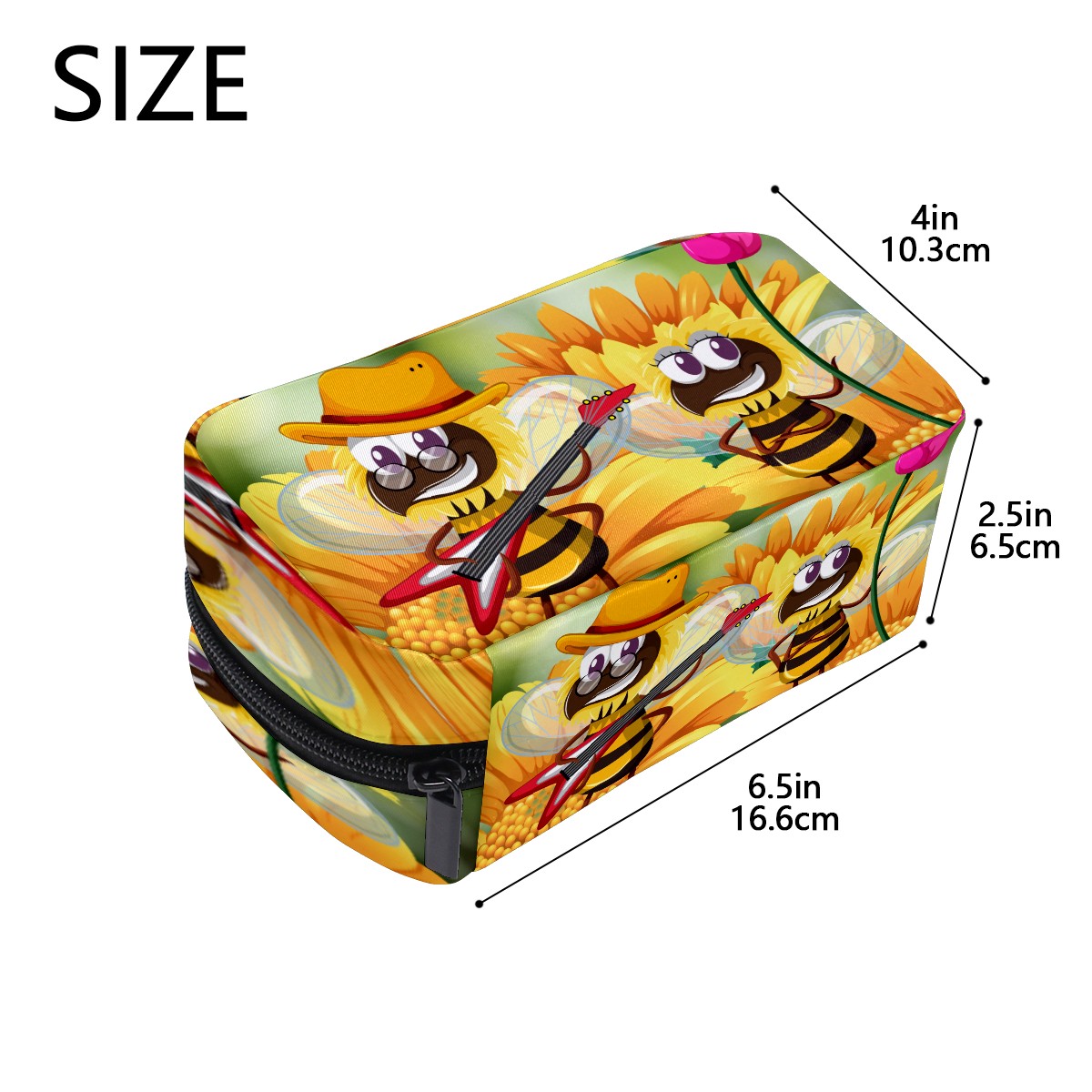 Cosmetic Bag for Women Girls Trave Makeup Bag Toiletry Case Pouch Accessories Organizer Bee Playing Guitar On Flower