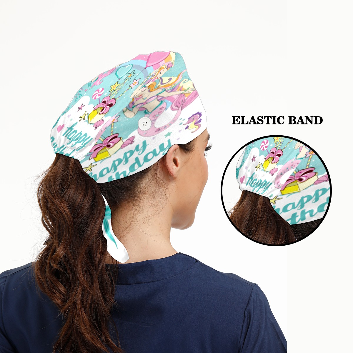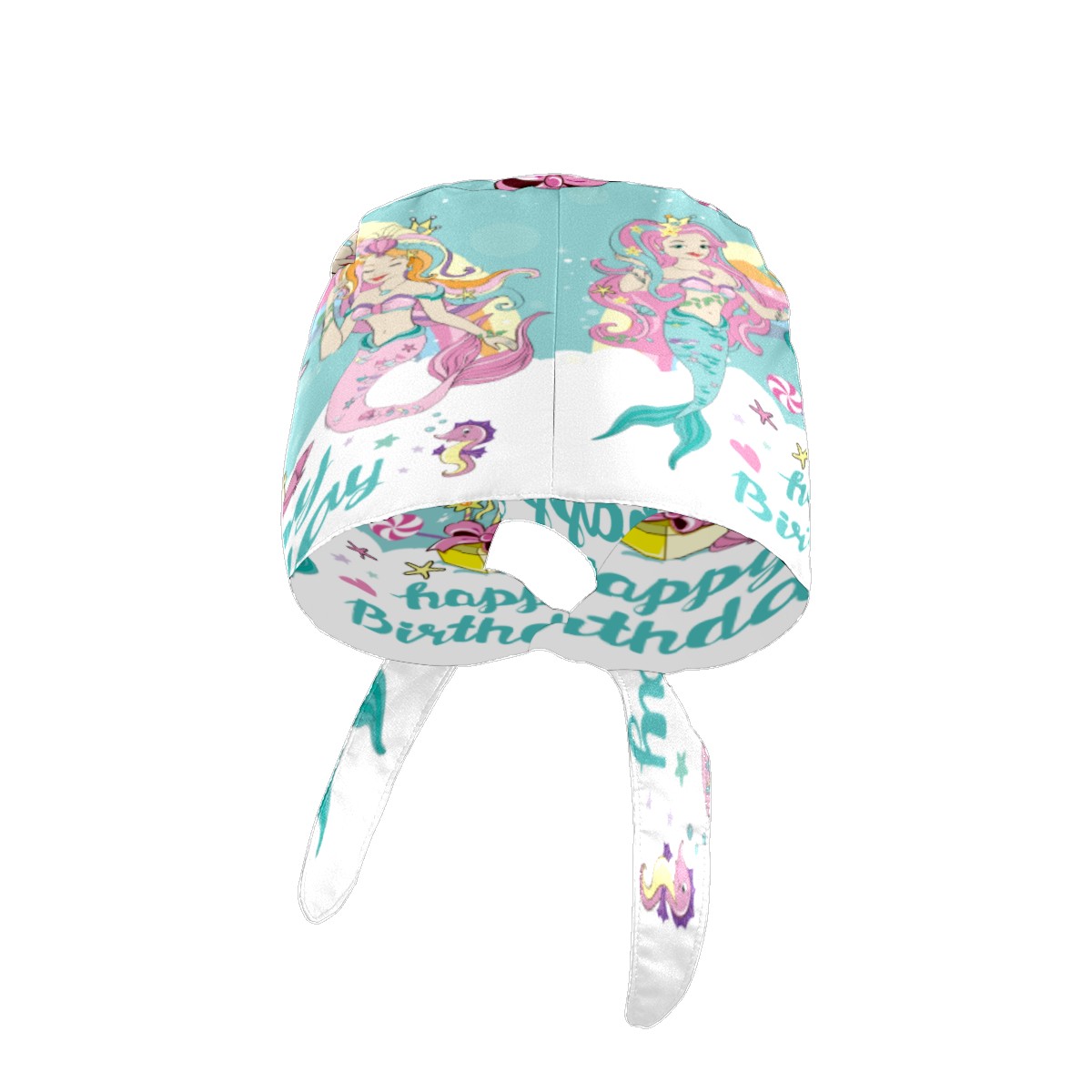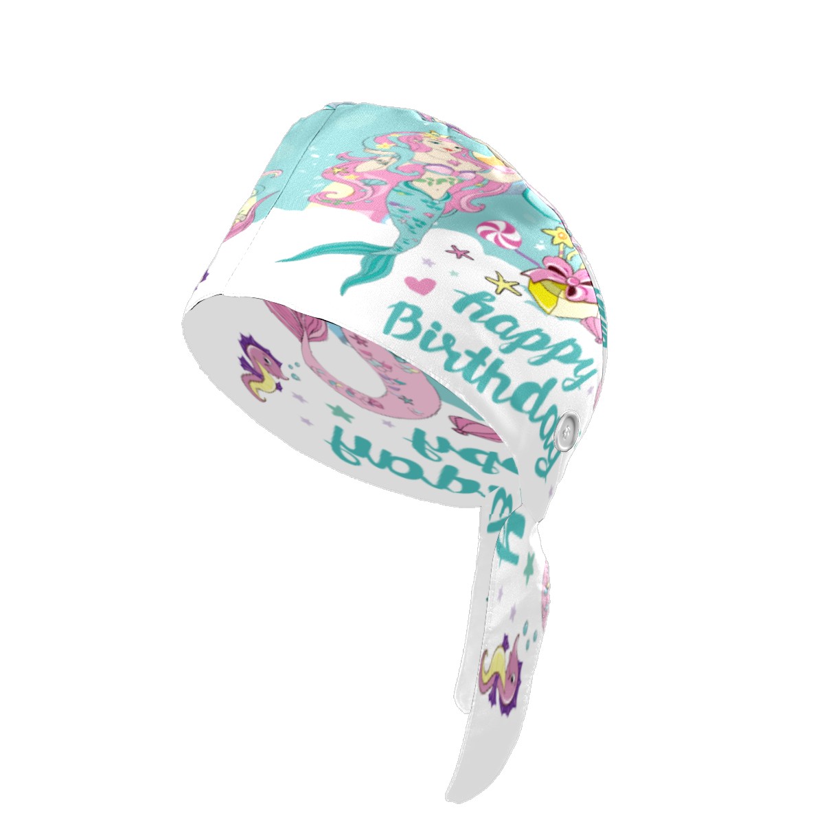 Happy Birthday Mermaid Balloon Working Cap Button and Sweatband Adjustable Elastic Head Cover Hair Tie Back Work Hats for Women Men