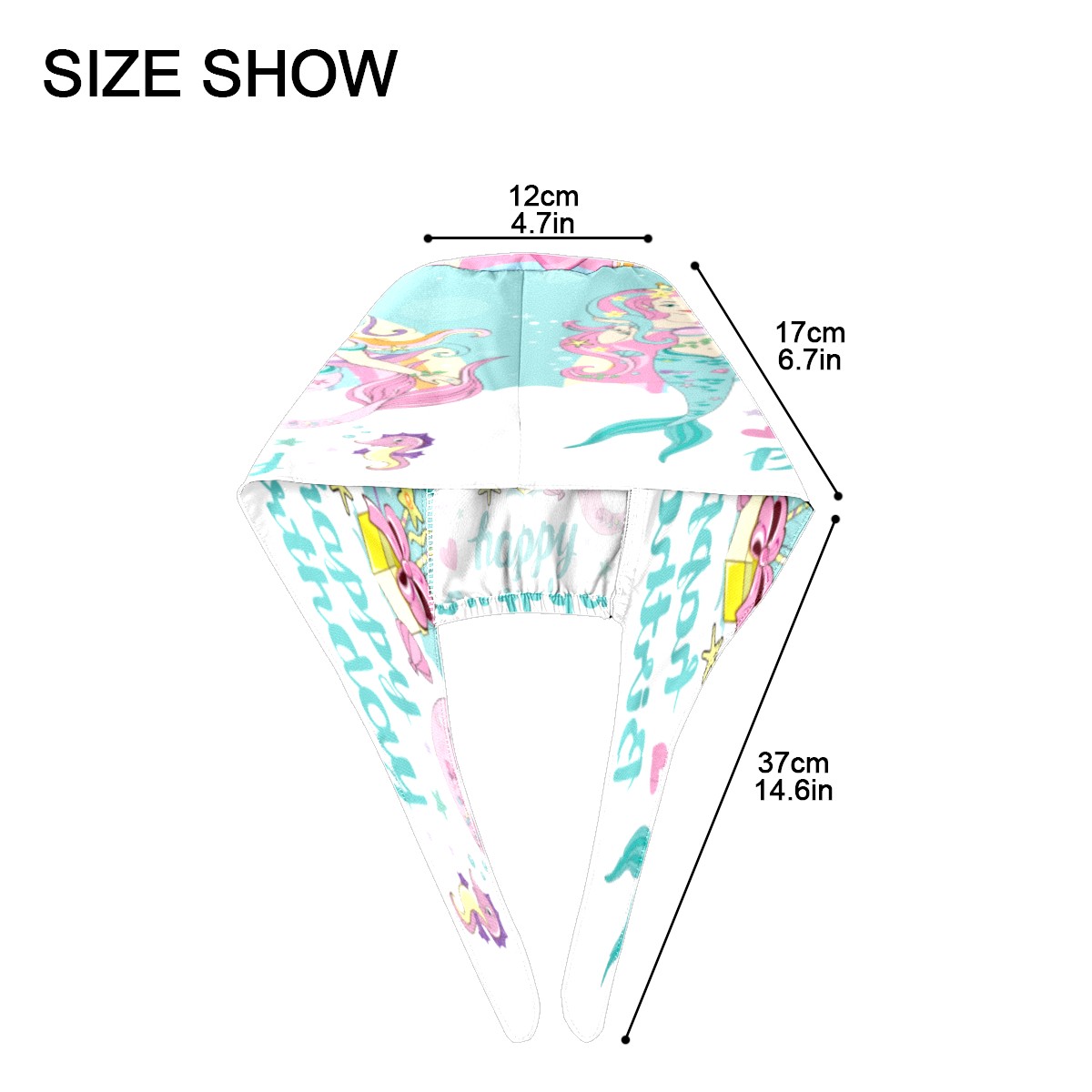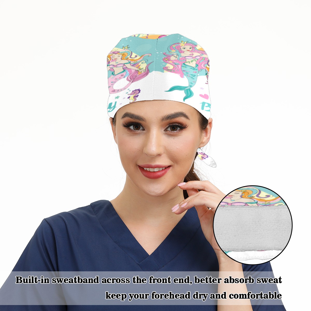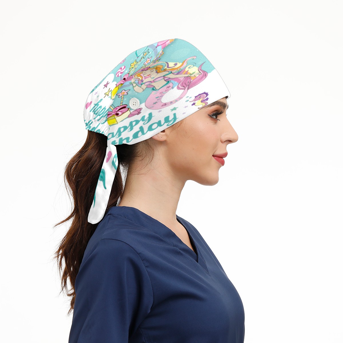 Happy Birthday Mermaid Balloon Working Cap Button and Sweatband Adjustable Elastic Head Cover Hair Tie Back Work Hats for Women Men