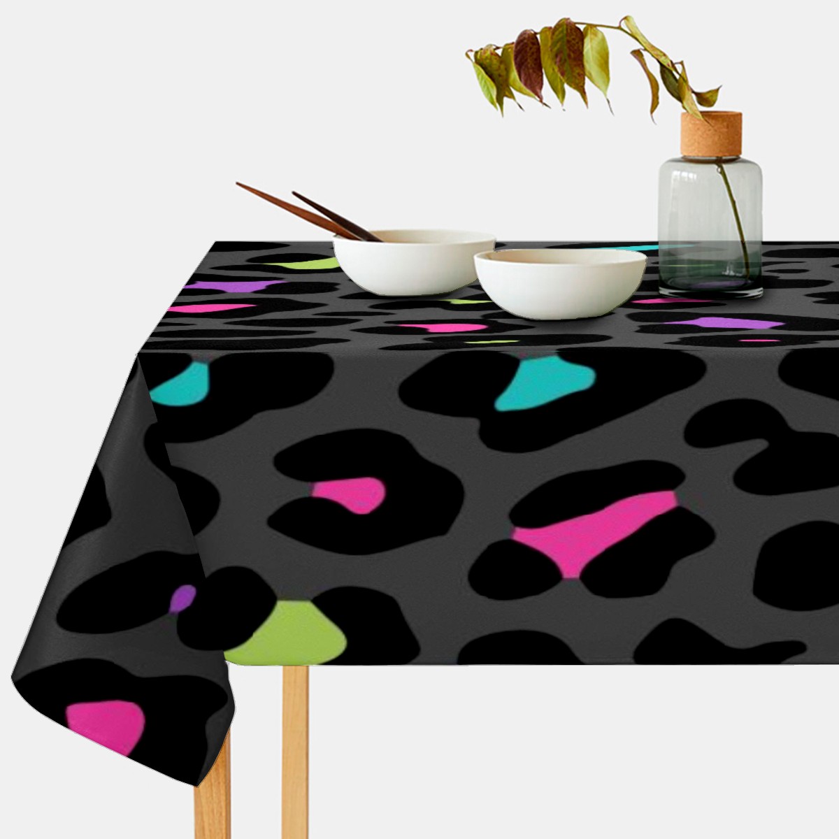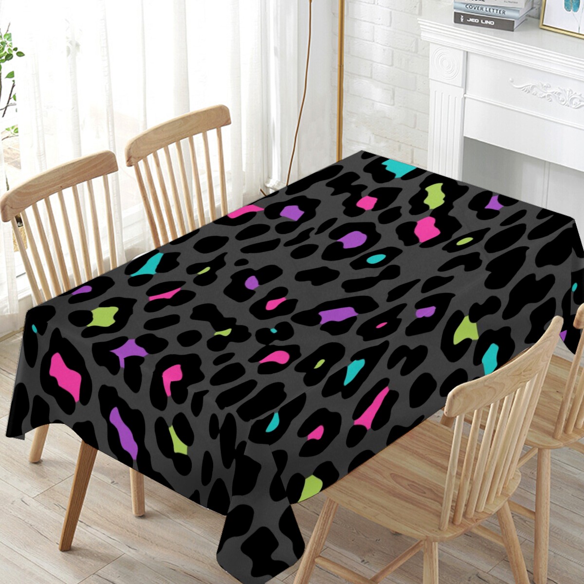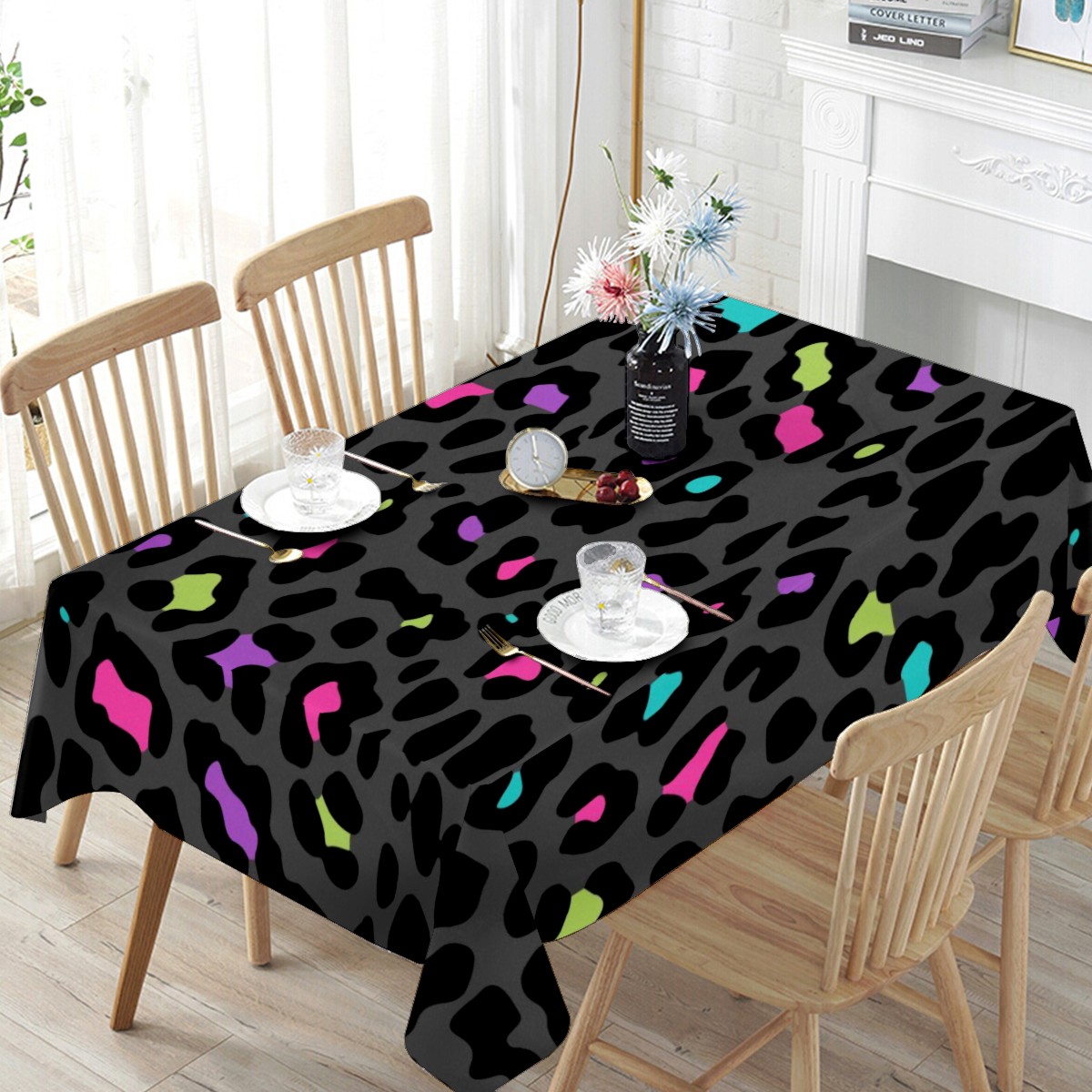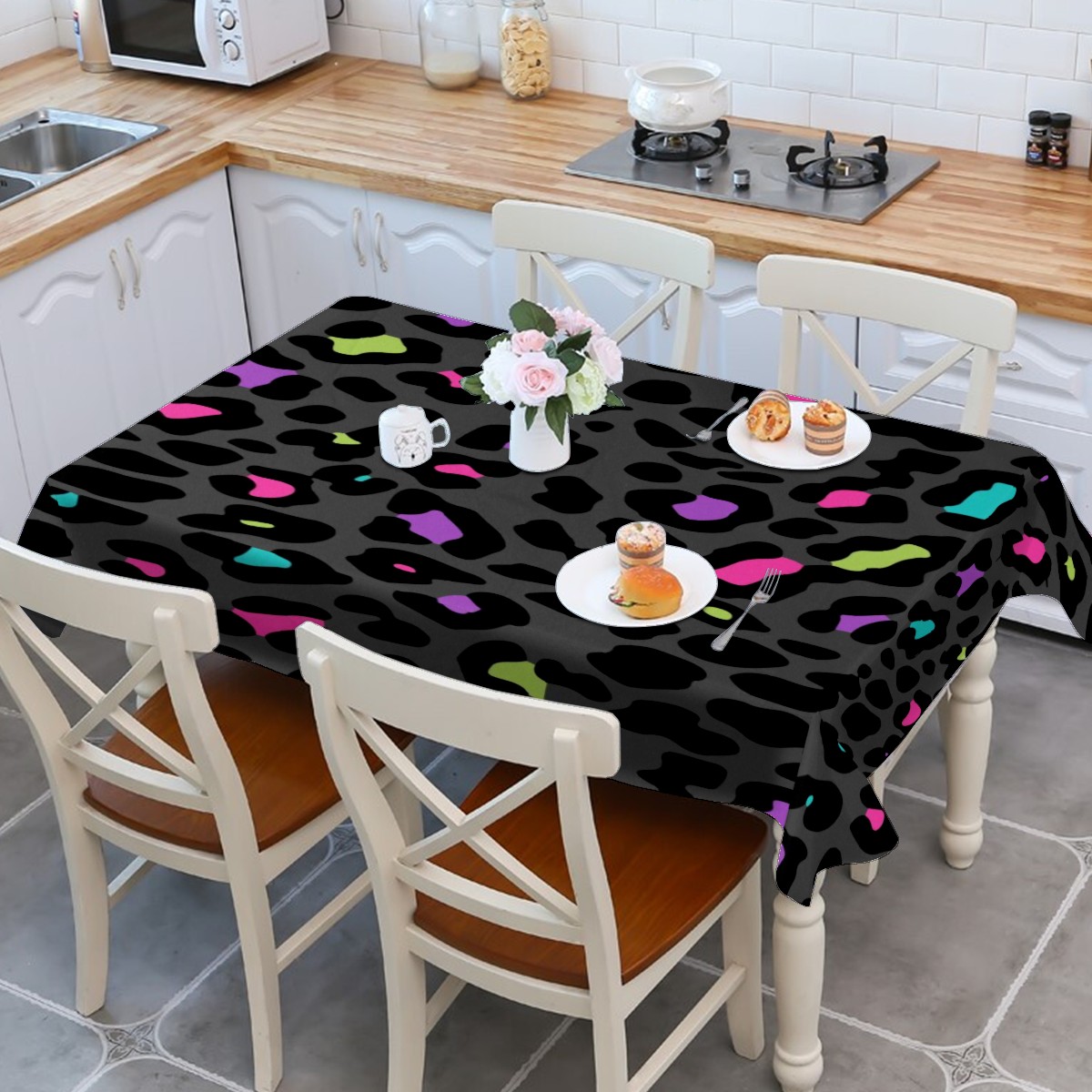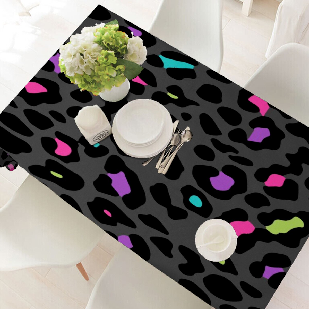 Rectangle Tablecloth Rave Leopard Disco Animal Colorful Table Cloth 54x54in Table Cover for Kitchen Dining Table Party Home Decoration Washable Table Runner