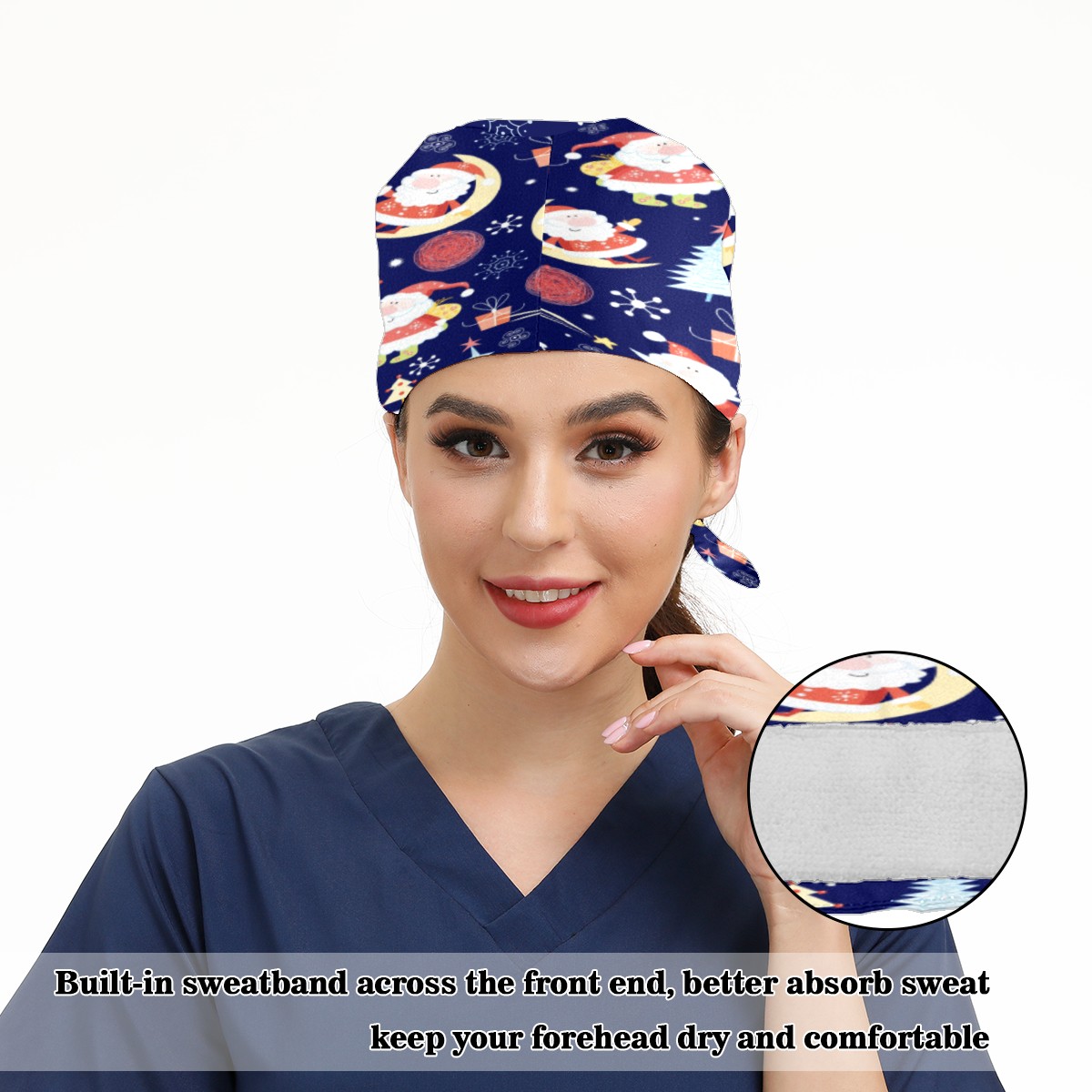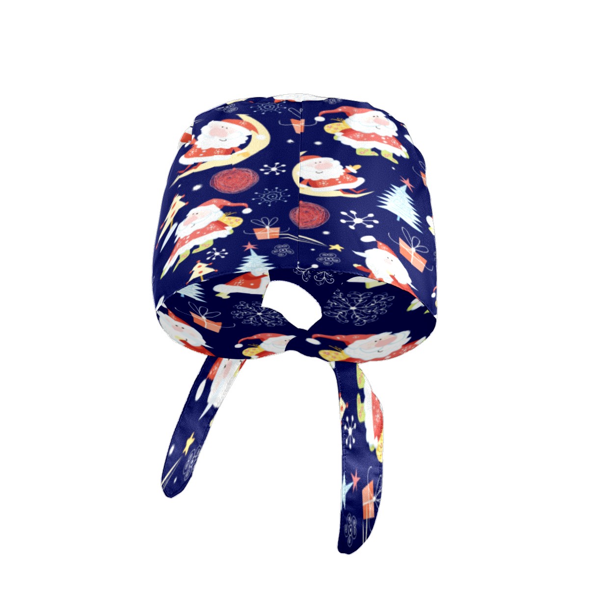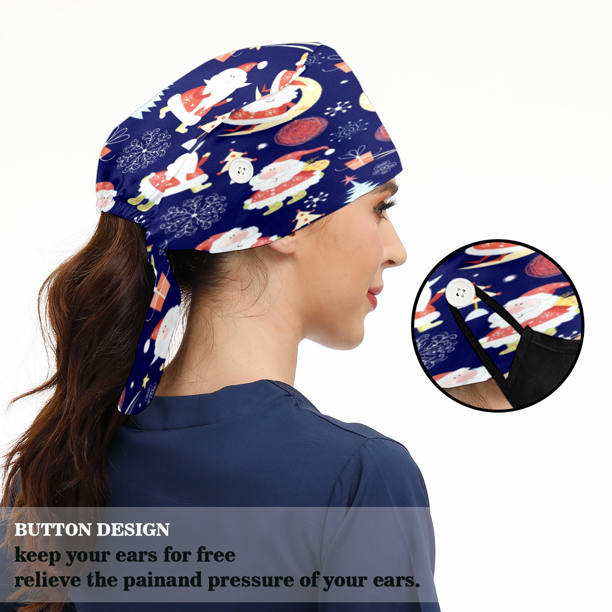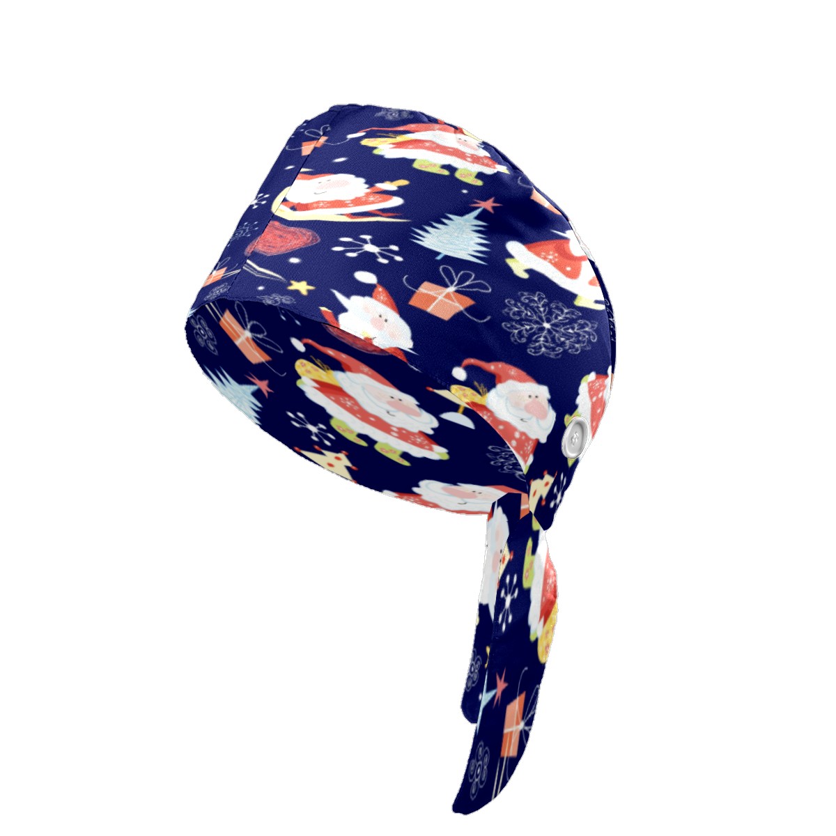 Dark Blue Christmas Santa Claus Working Cap Button and Sweatband Adjustable Elastic Head Cover Hair Tie Back Work Hats for Women Men