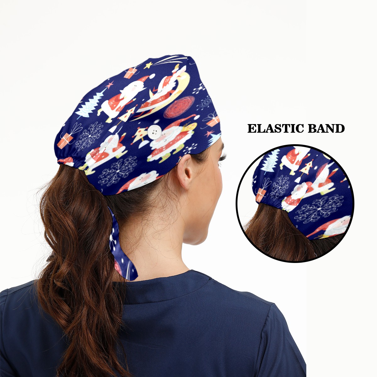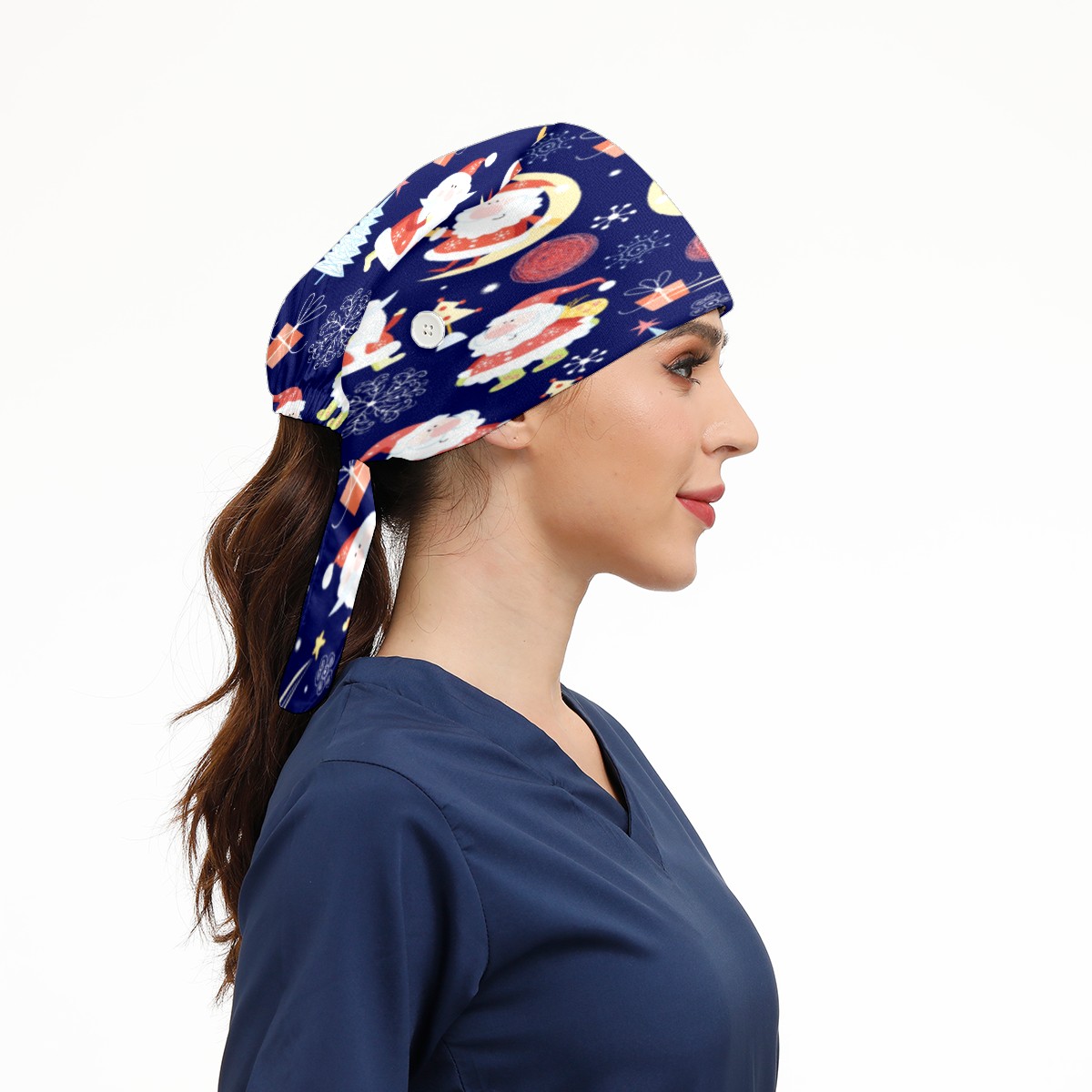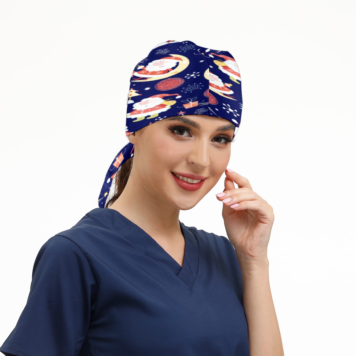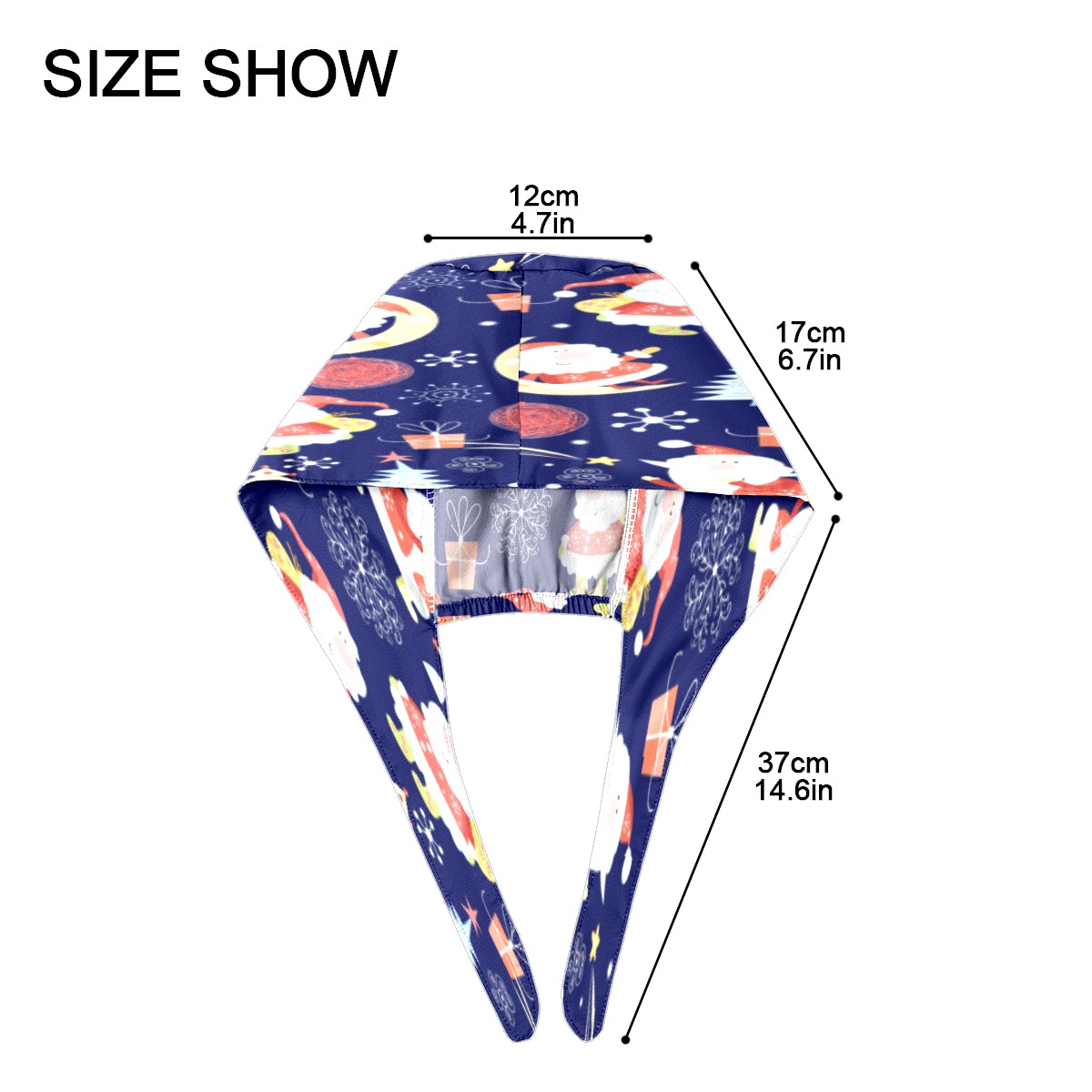 Dark Blue Christmas Santa Claus Working Cap Button and Sweatband Adjustable Elastic Head Cover Hair Tie Back Work Hats for Women Men