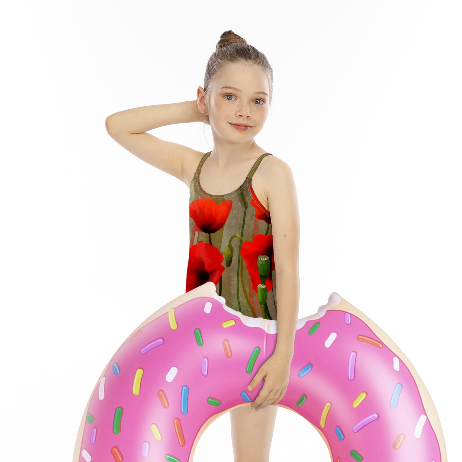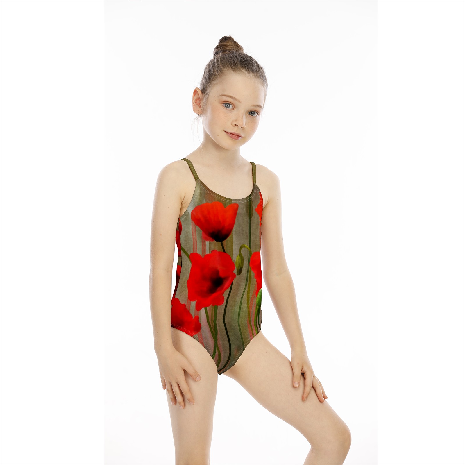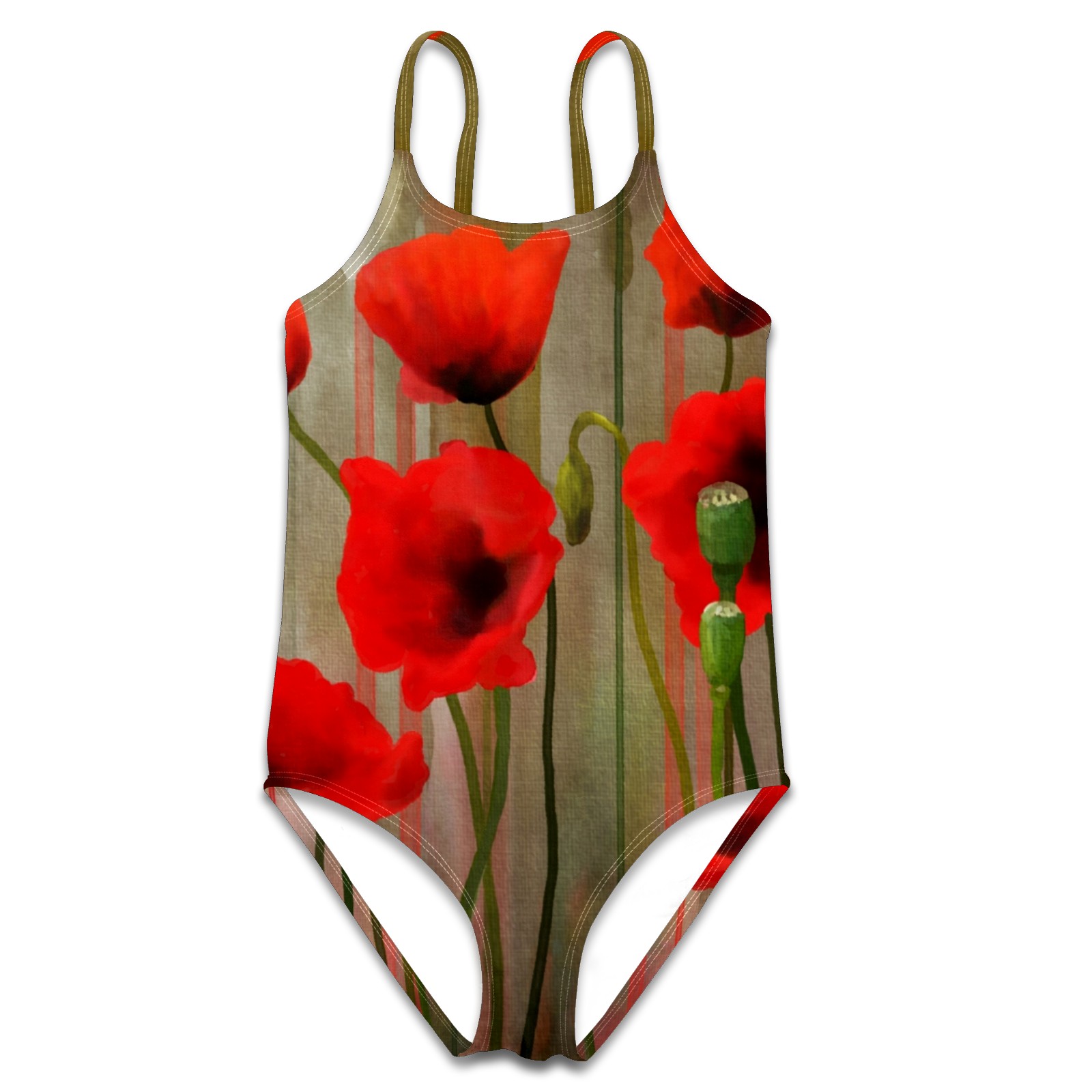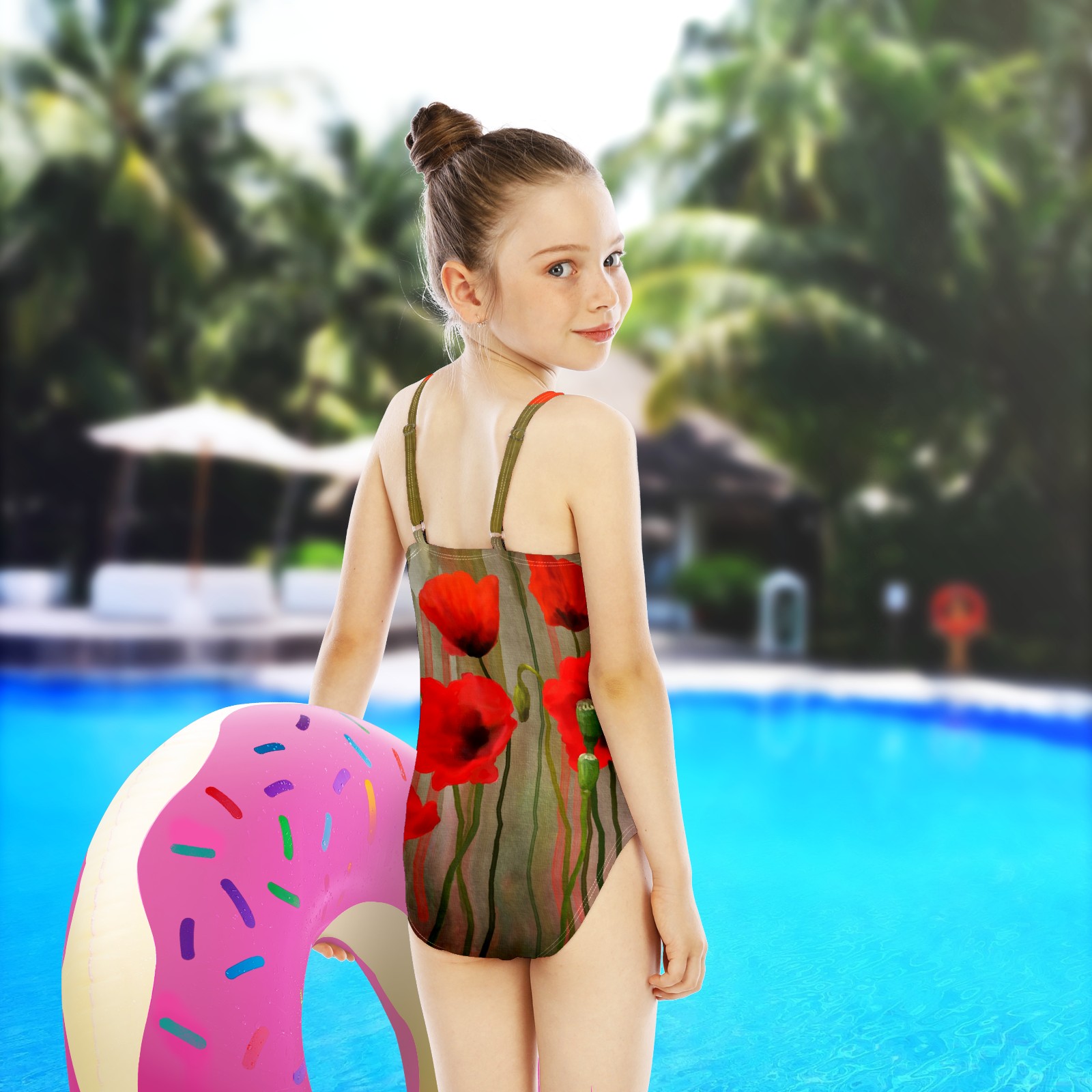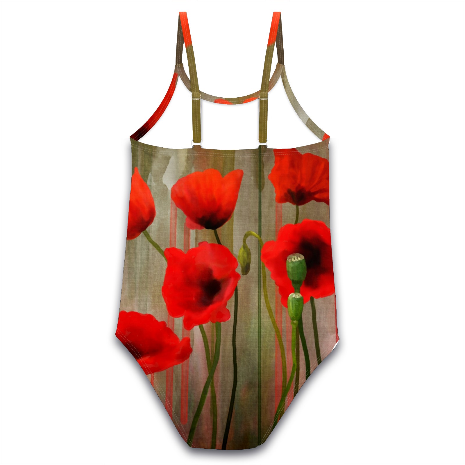 Girls Swimsuits One-Piece Red Poppy Flower Beach Swimwear Summer Bathing Suit