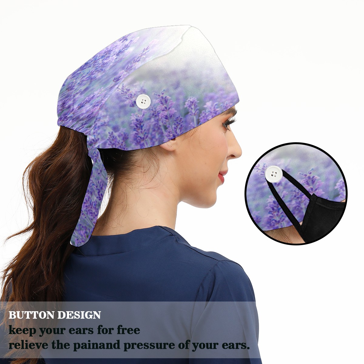 <p>Working cap with Sweatband and Button for Women Men</p><p>Material&nbsp;: 50% cotton+50% polyester</p><p>Size:&nbsp;One size fits most,&nbsp;suitable for both men and women.</p><p>Working Cap with Buttons Design:special&nbsp;design with buttons to protect ears for those who are wearing ma-sk. These new styles hats will allow you to put the straps around the buttons instead of your ears, make you feel more comfortable.</p><p>Sweat-absorbent towel cloth inside: Built-in&nbsp;100% cotton sweatband, keep the forehead clean after long time working.</p><p>Widely occasion: Widely used in beauty spa, house cleaning, cooking, sleeping, or for cos-play&nbsp;party.</p><p>Lovely pattern: lovely&nbsp;3D printed&nbsp;pattern,&nbsp;it's perfect for gift to you family&nbsp;and friends.</p>